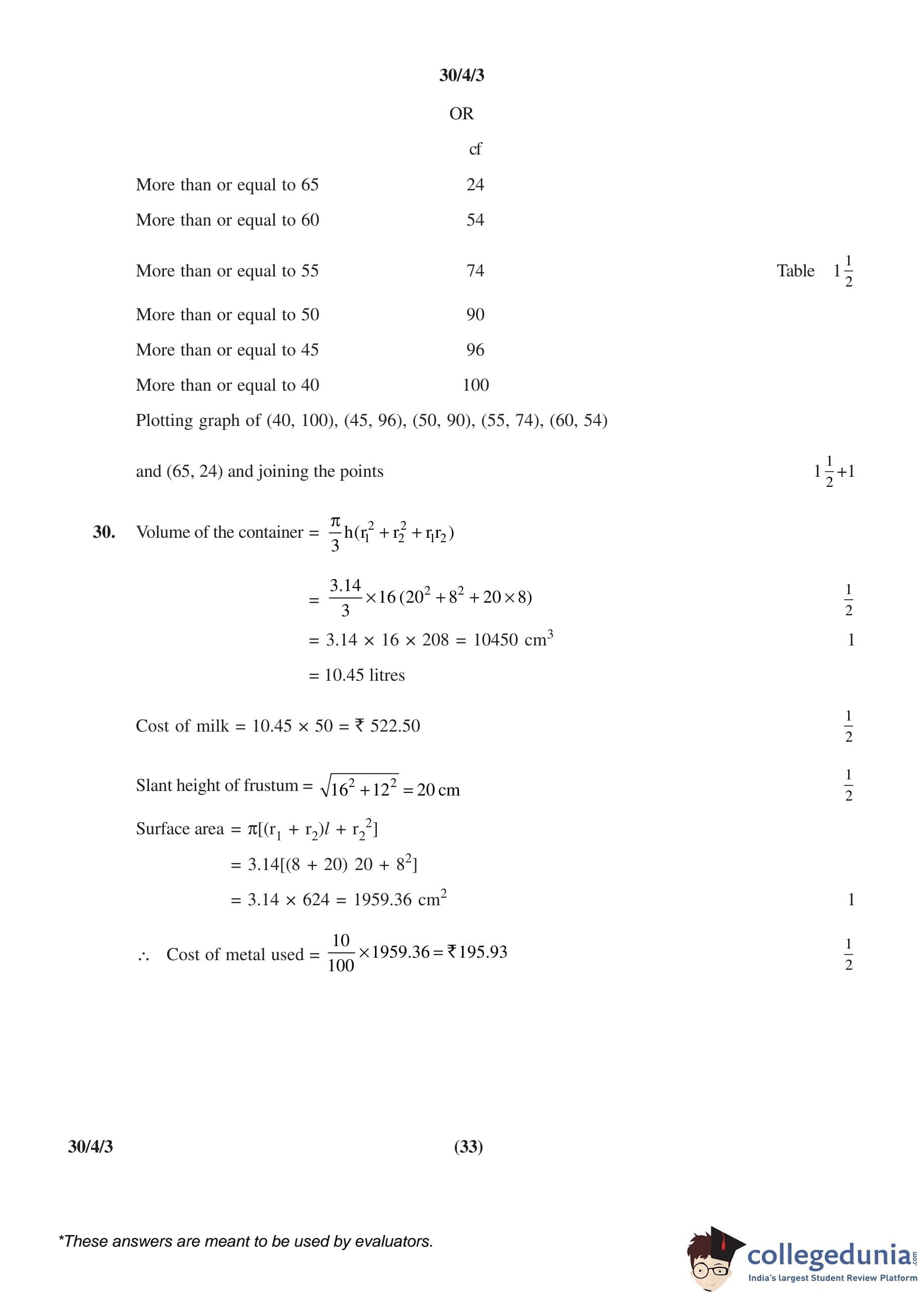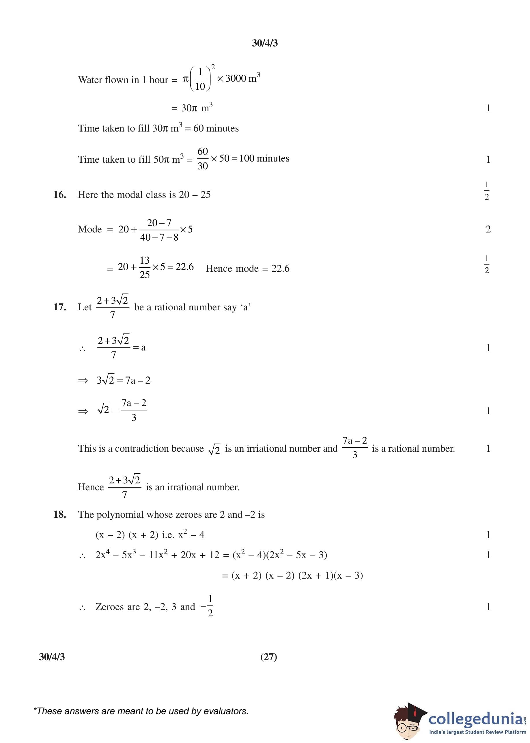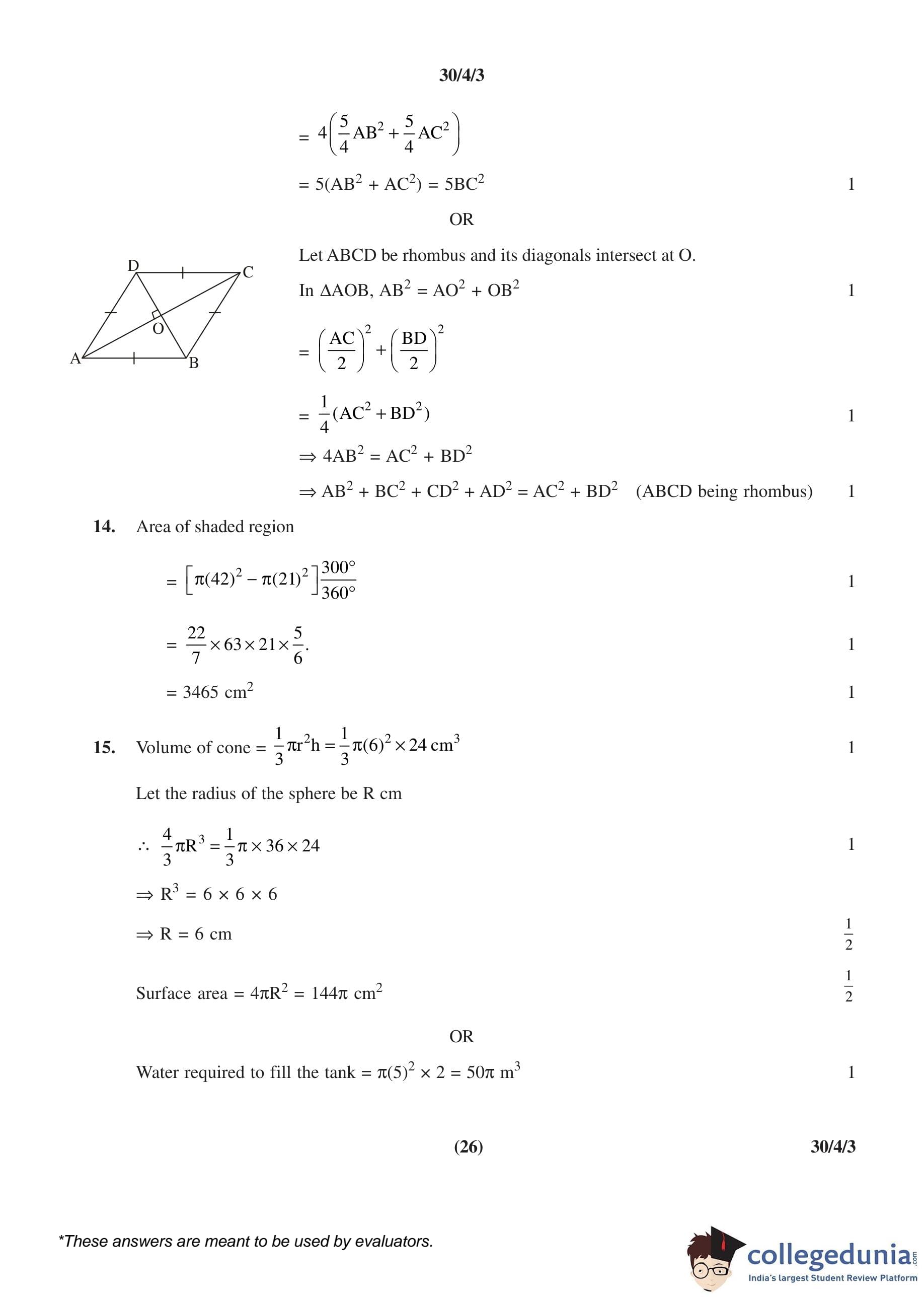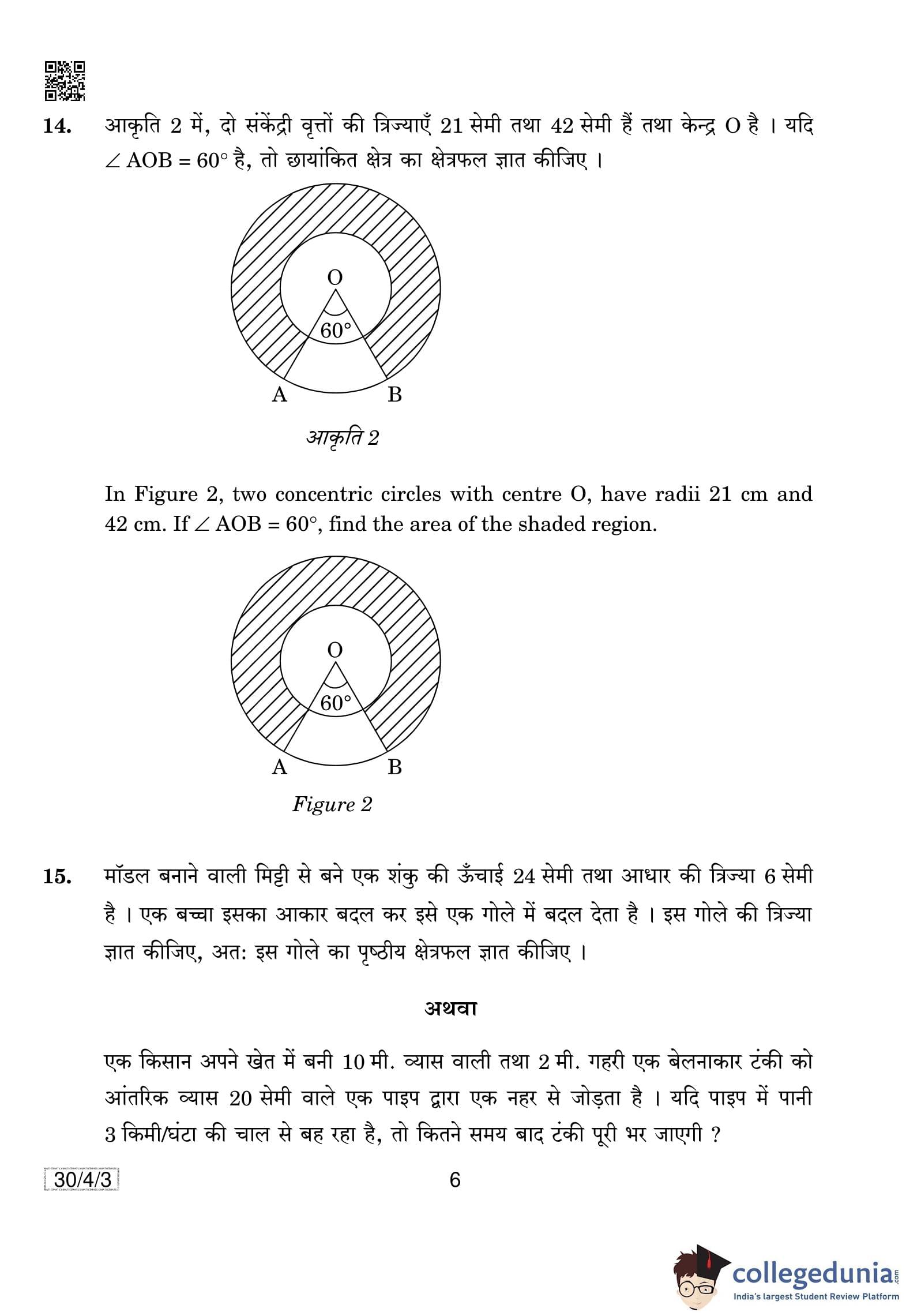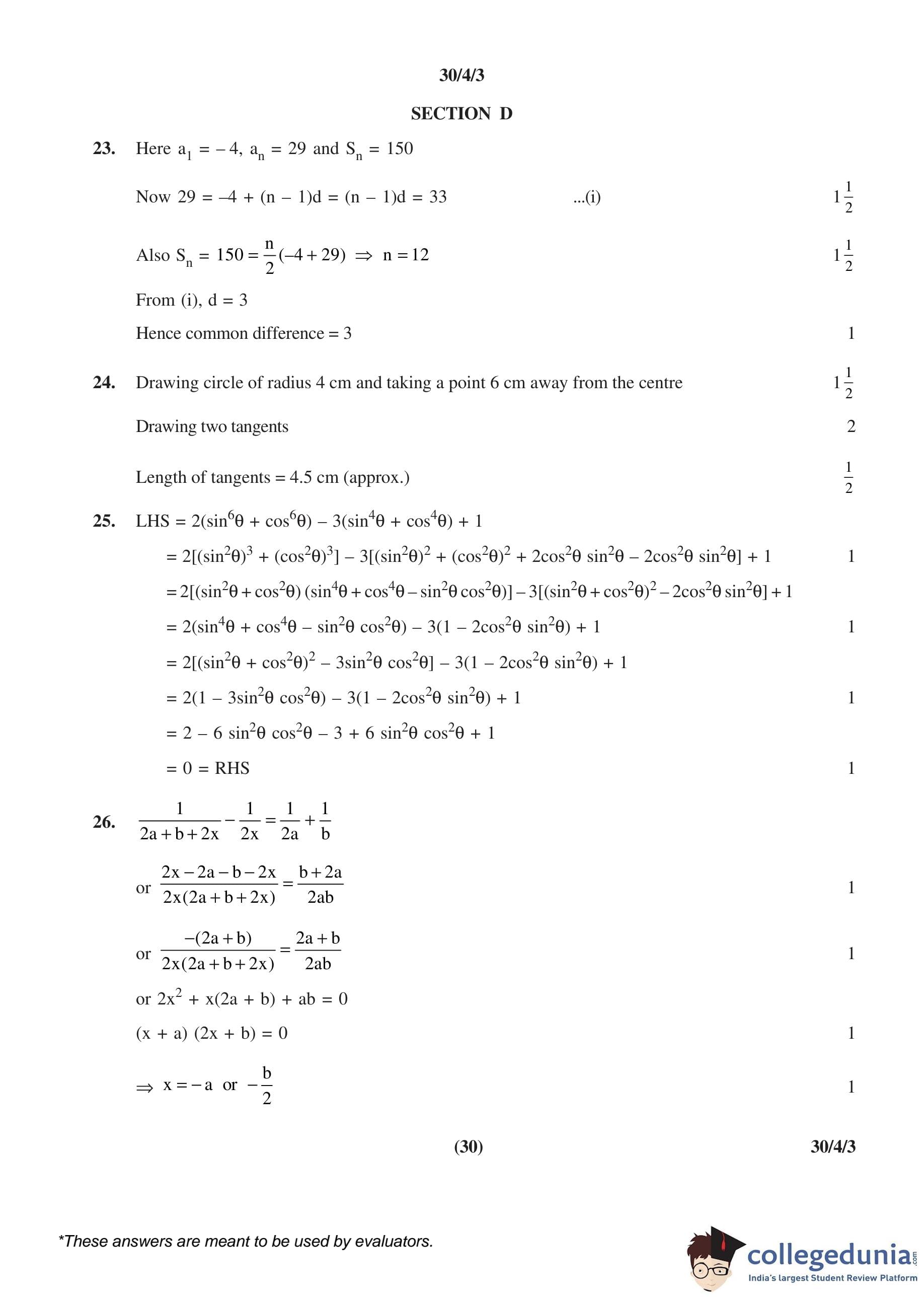 CBSE Class 10 Mathematics Question Paper 2019 with Answer Key Set 3 - 30/4/3 is available for download. The exam was conducted by the Central Board of Secondary Education on March 7, 2019 in the Morning Session 10:30 AM to 1:30 PM. The medium of paper was English and Hindi. The question paper comprised a total of 30 questions divided among 4 sections.