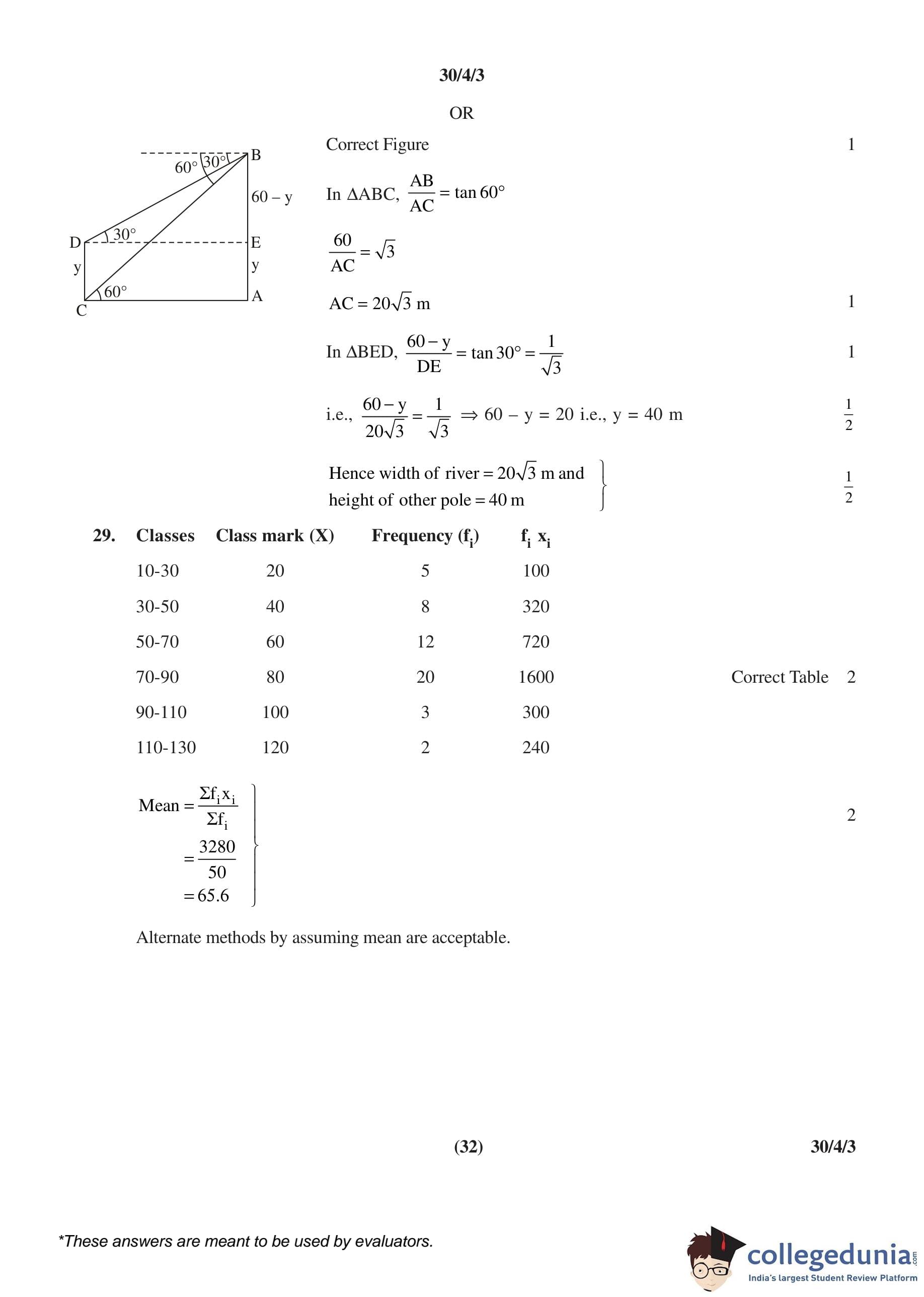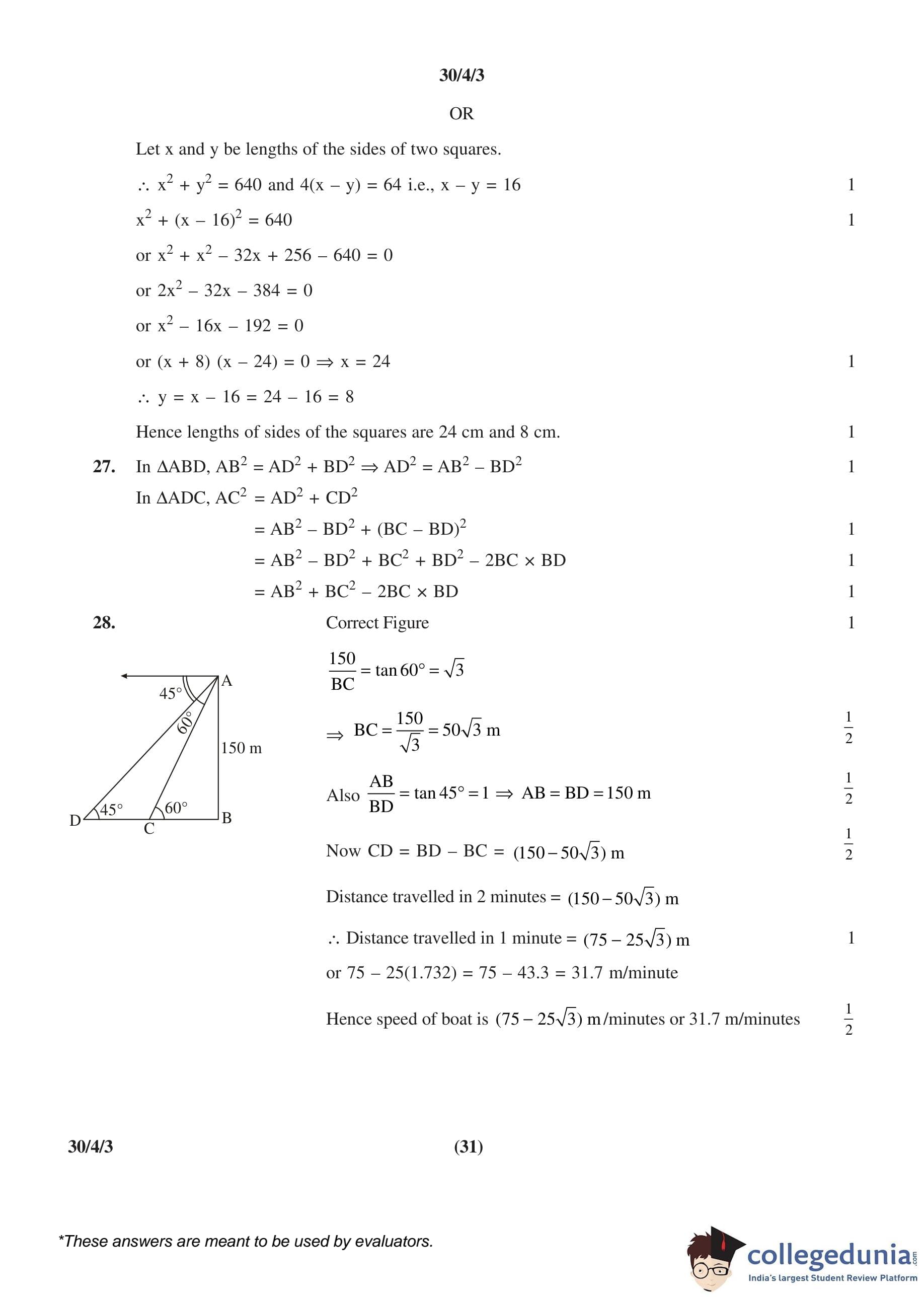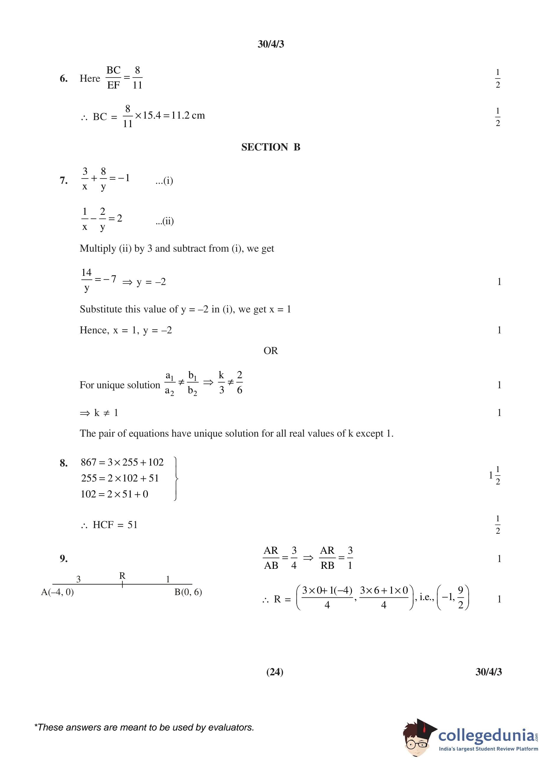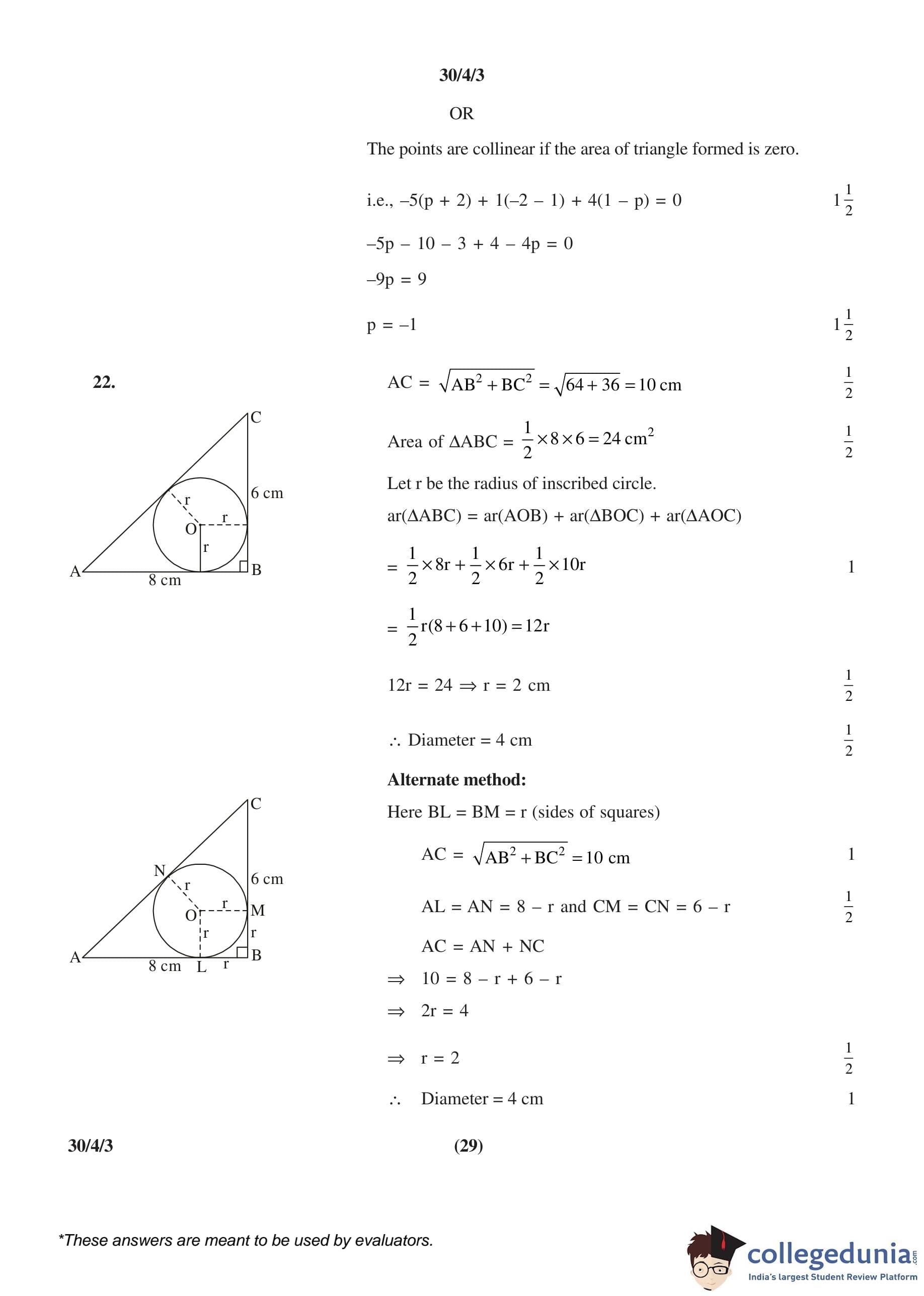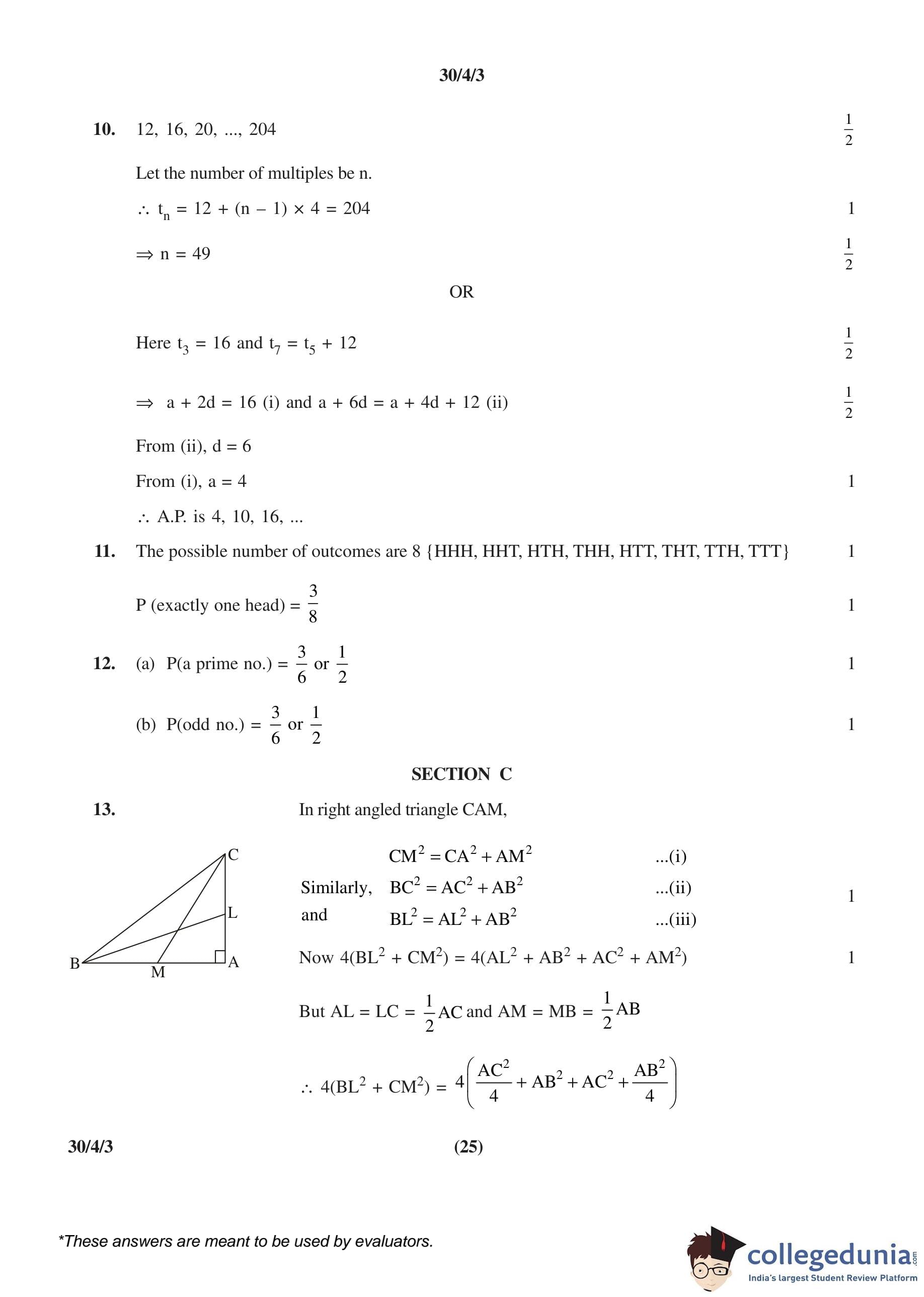 CBSE Class 10 Mathematics Set 3 - 30/4/3 Question Paper 2019 with Answer Key (March 7)