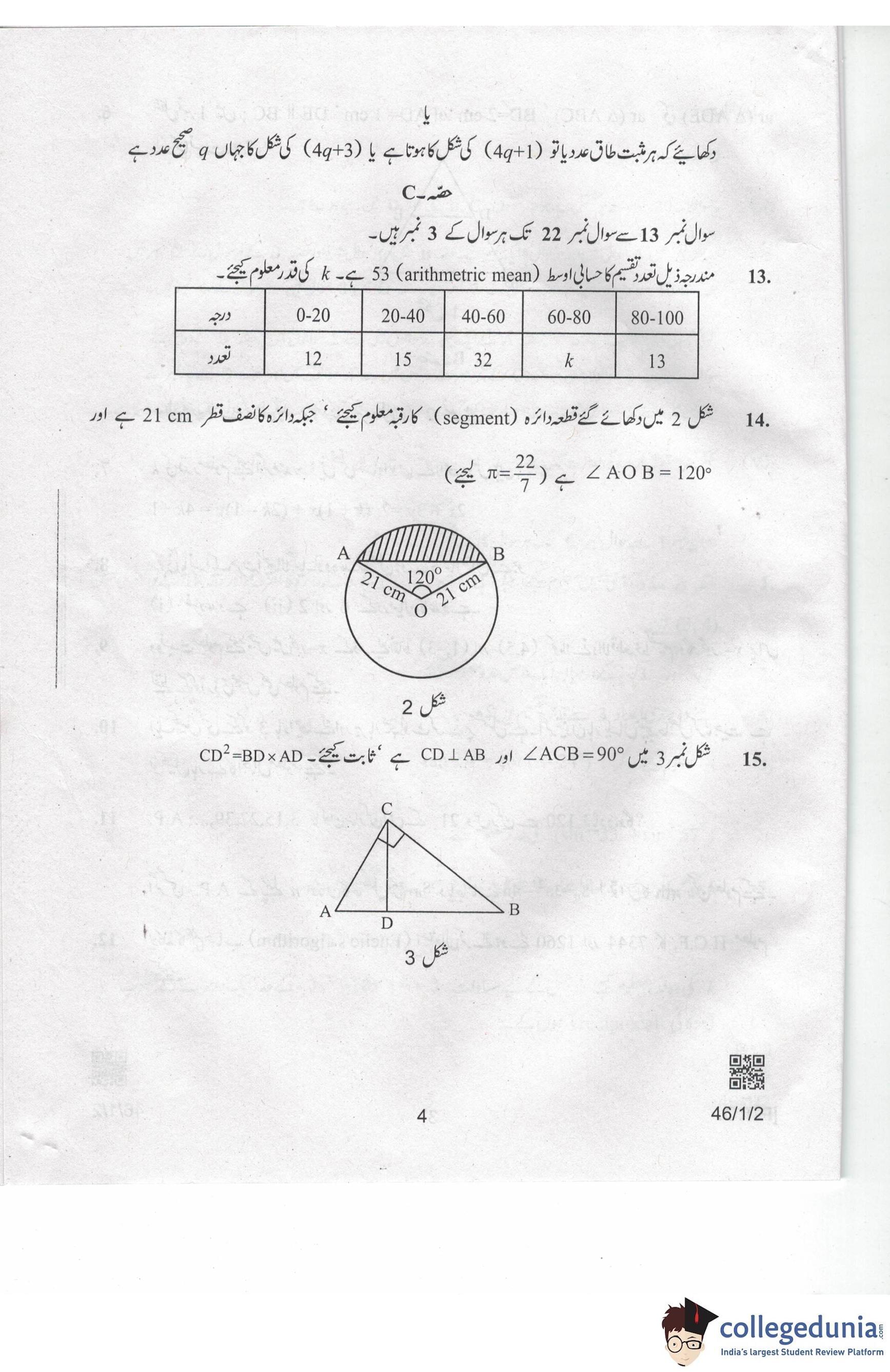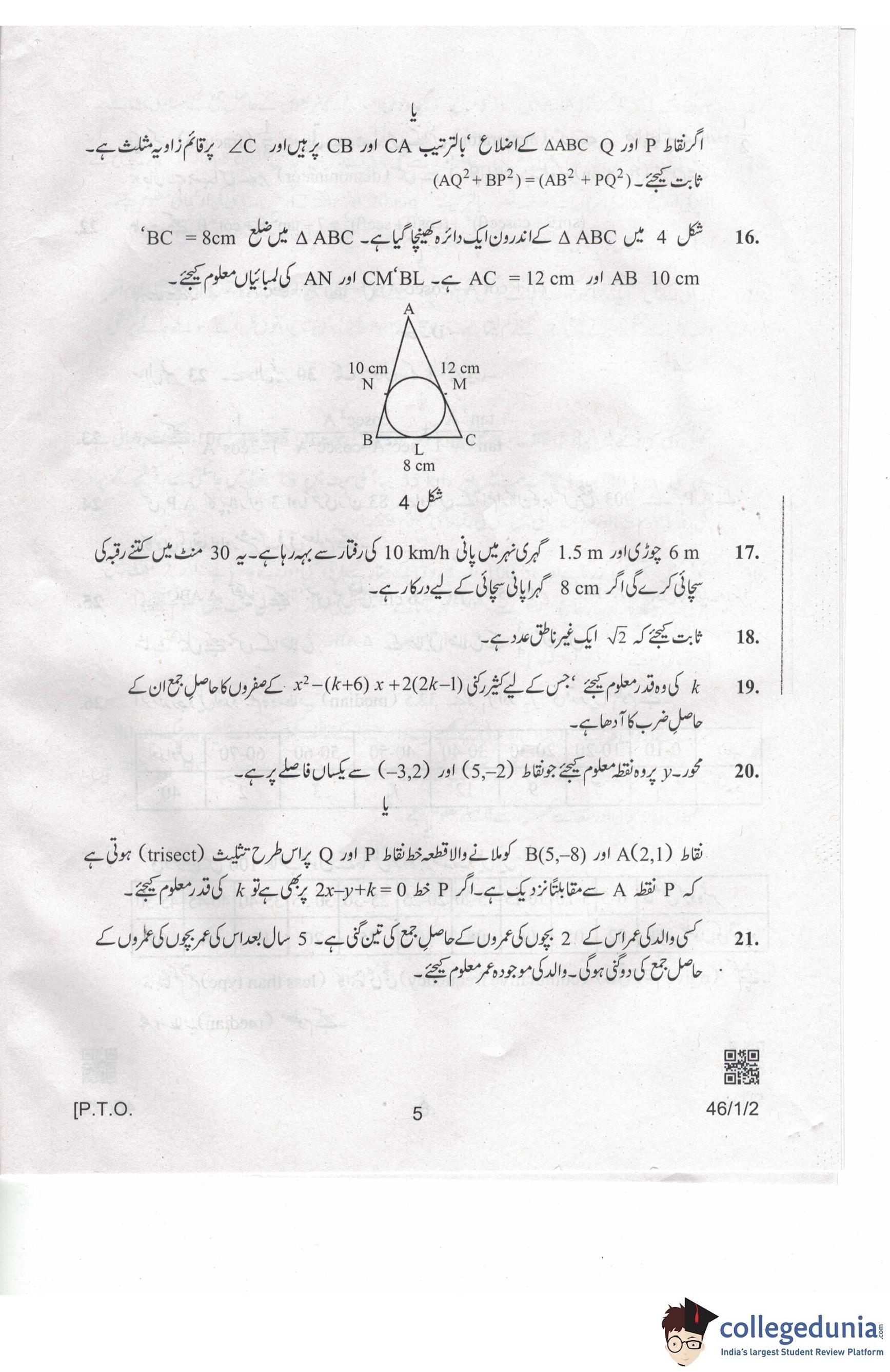 CBSE Class 10 Mathematics Urdu Set 2 - 46/1/2 Question Paper 2019 with Answer Key (March 7)