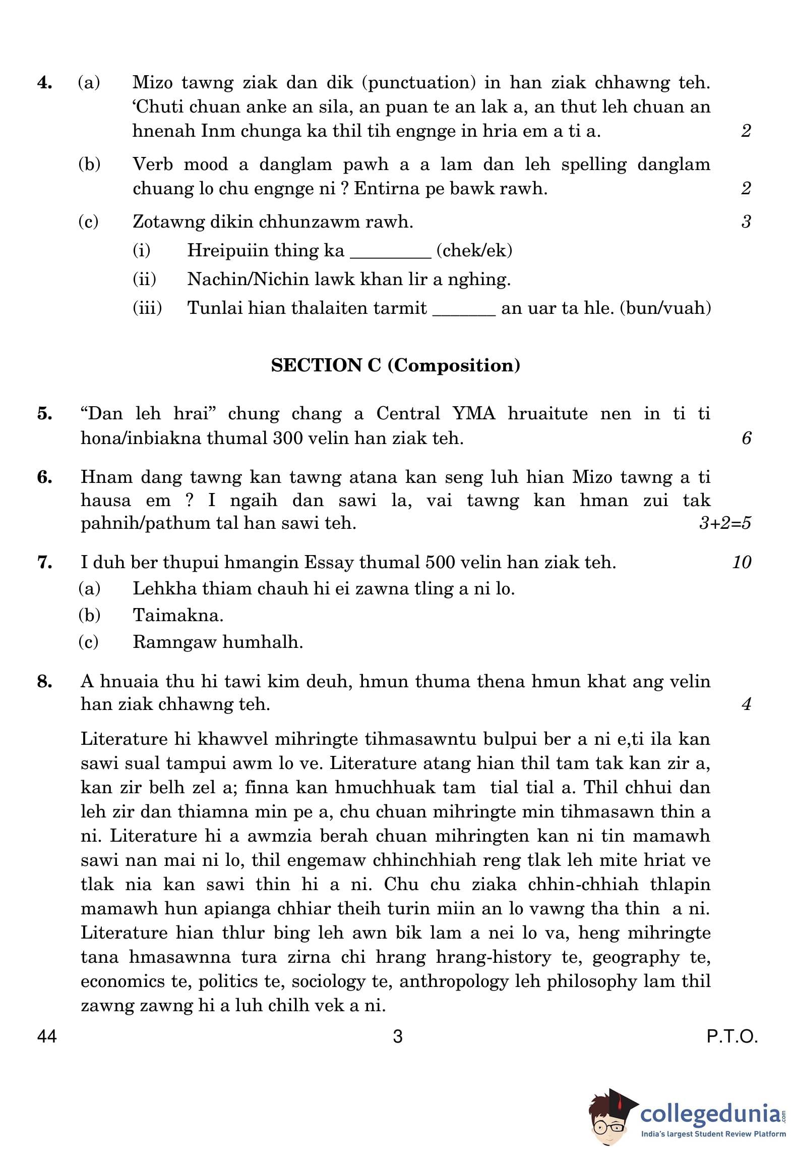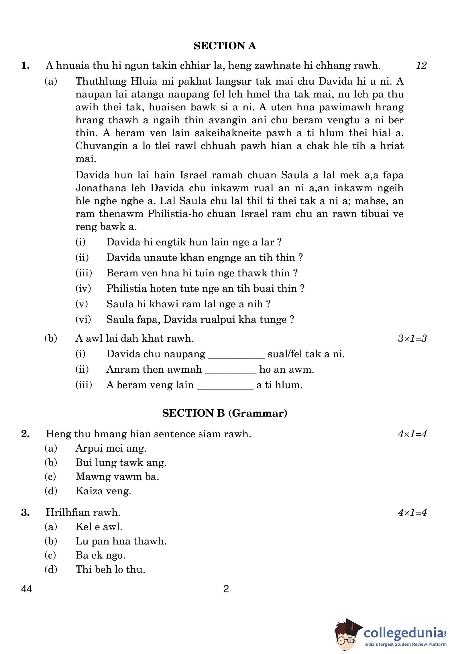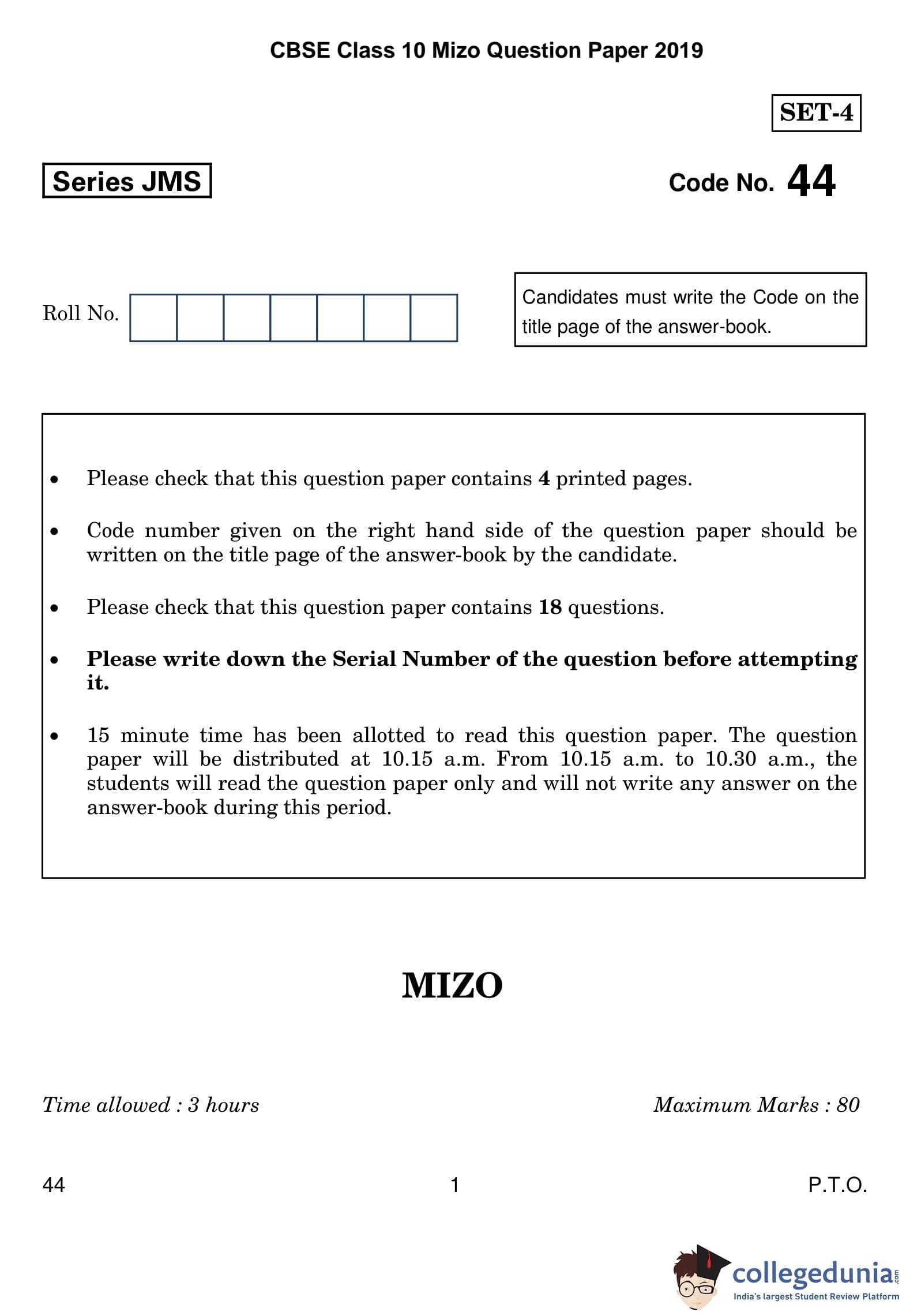 CBSE Class 10 Mizo Question Paper 2019 with Answer Key (March 5)