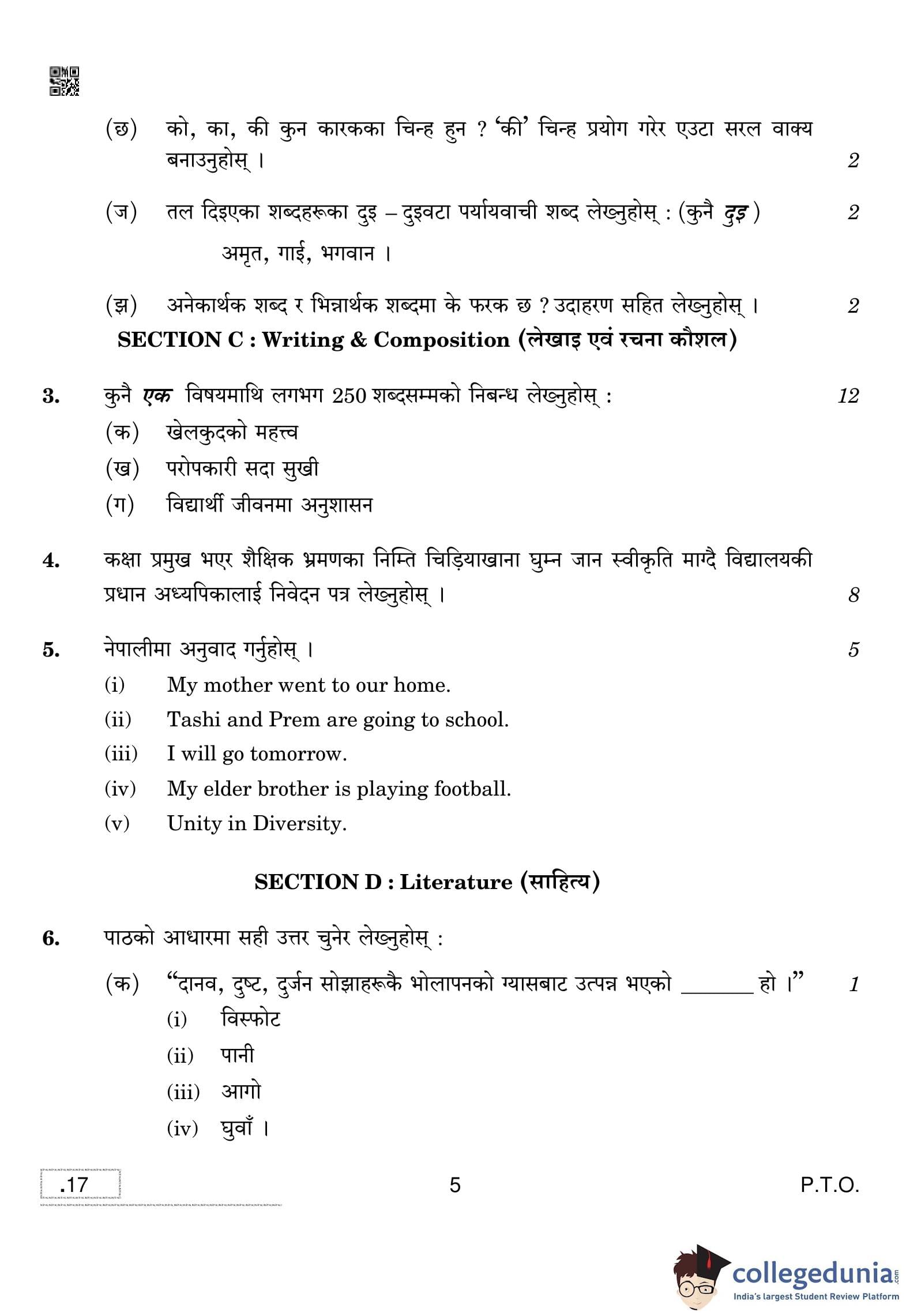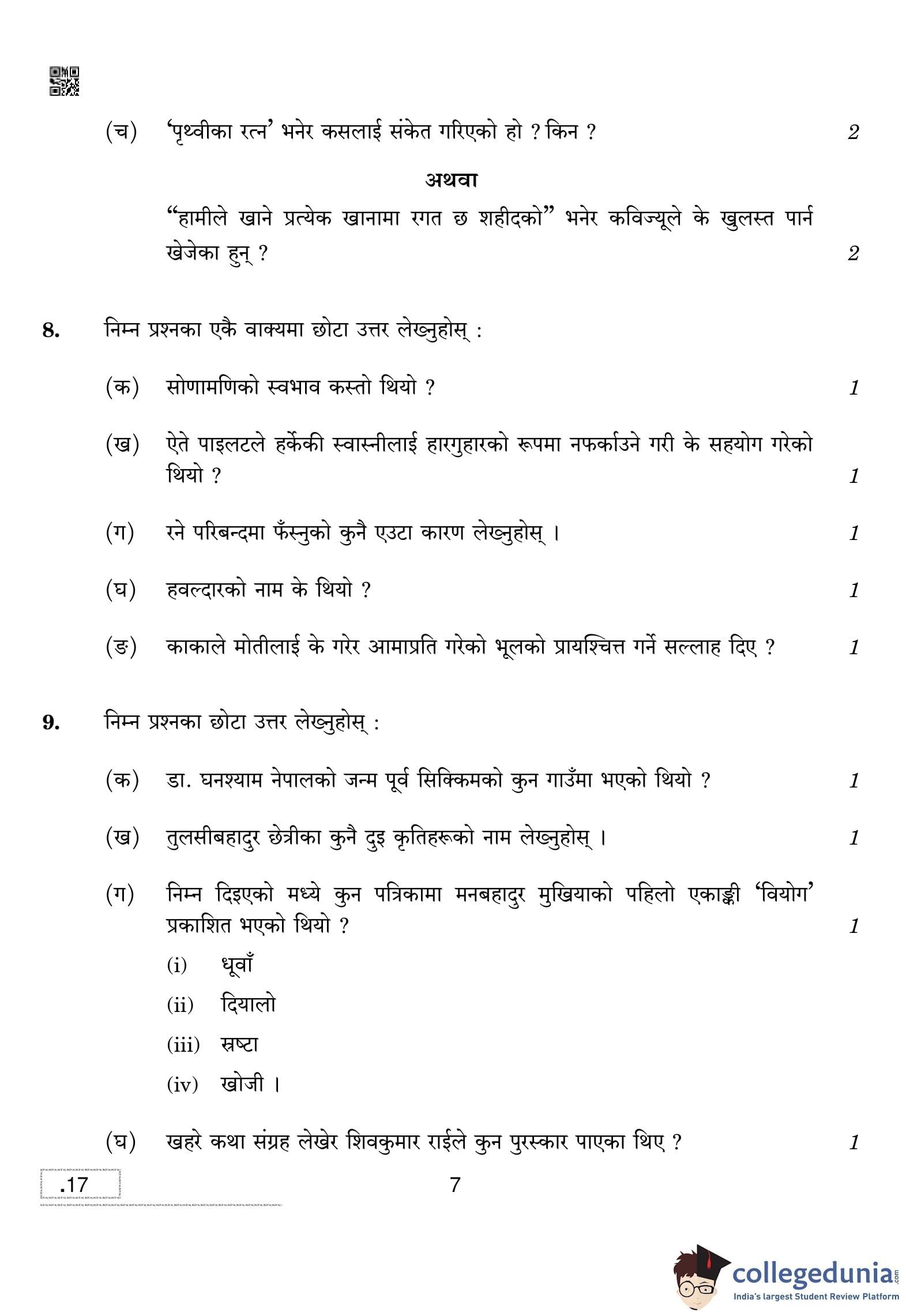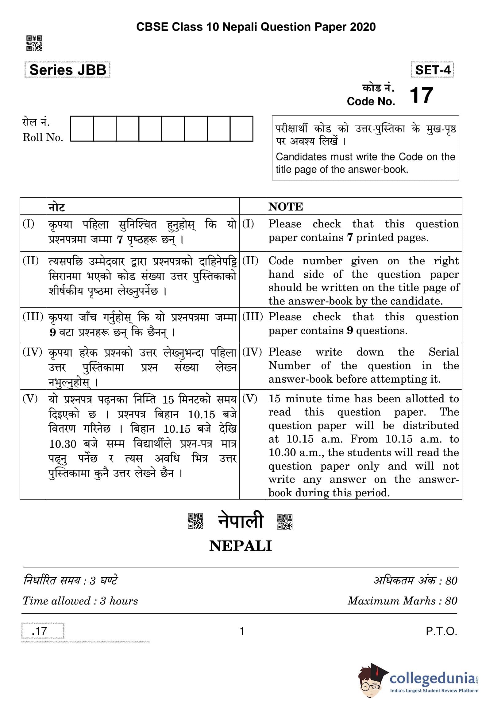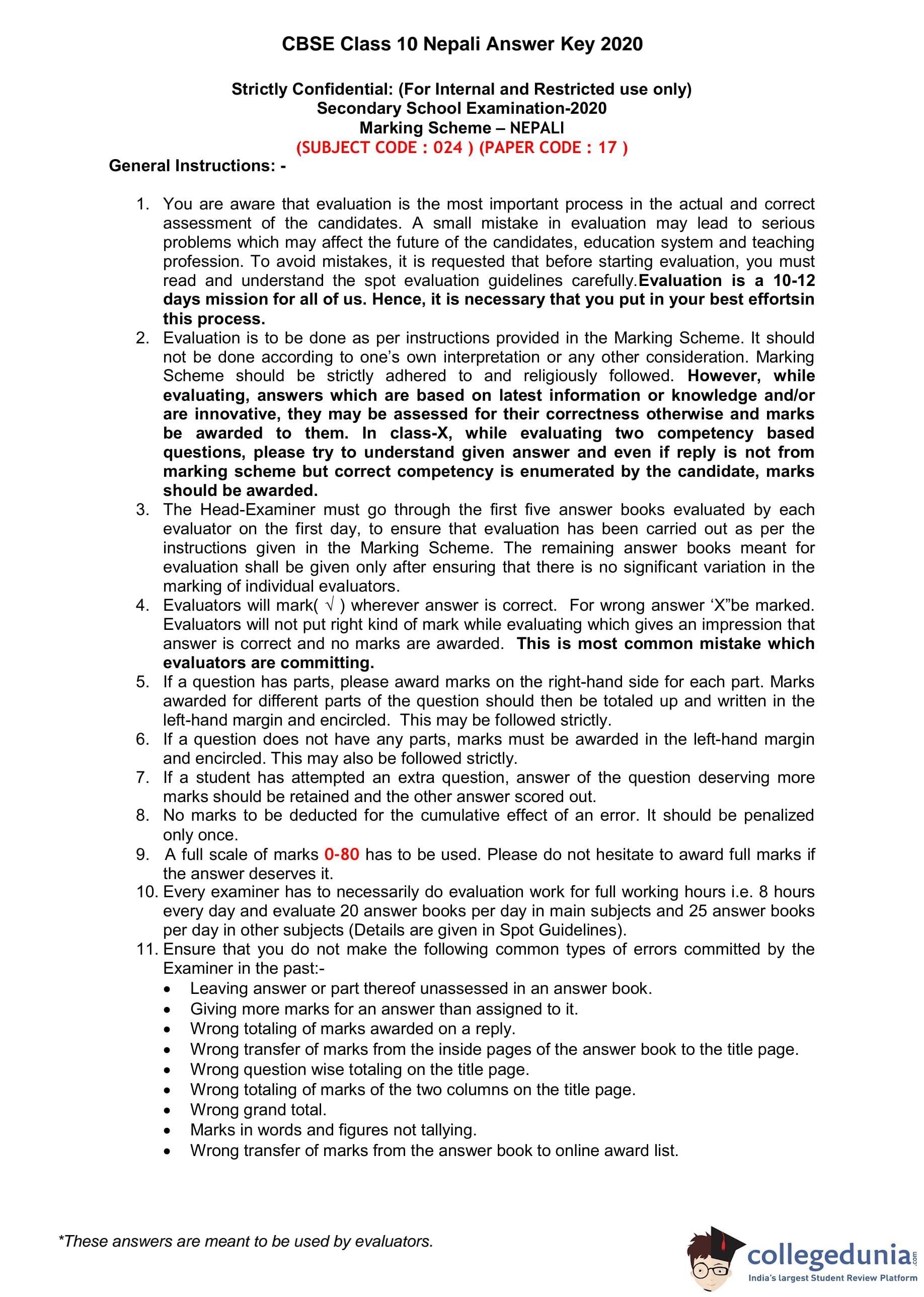 | CBSE Class 10 Nepali Question Paper 2020 PDF | CBSE Class 10 Nepali Answer Key 2020 PDF | Detailed Solutions |
