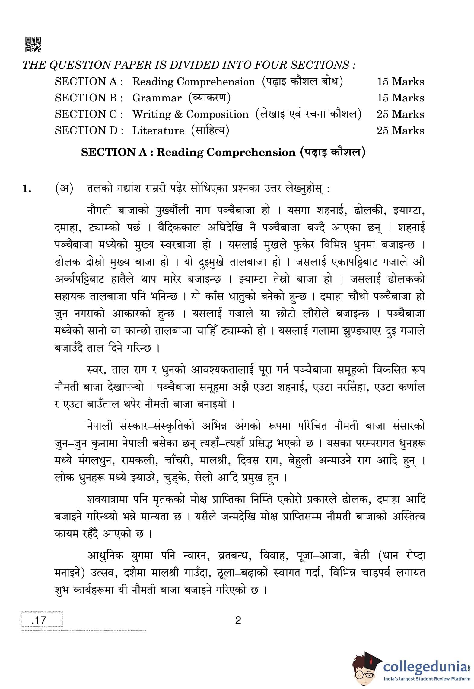 CBSE Class 10 Nepali Question Paper 2020 with Answer Key (February 24)