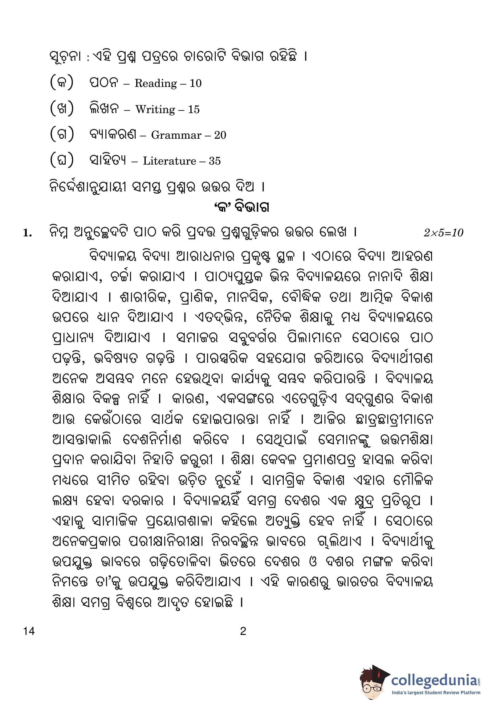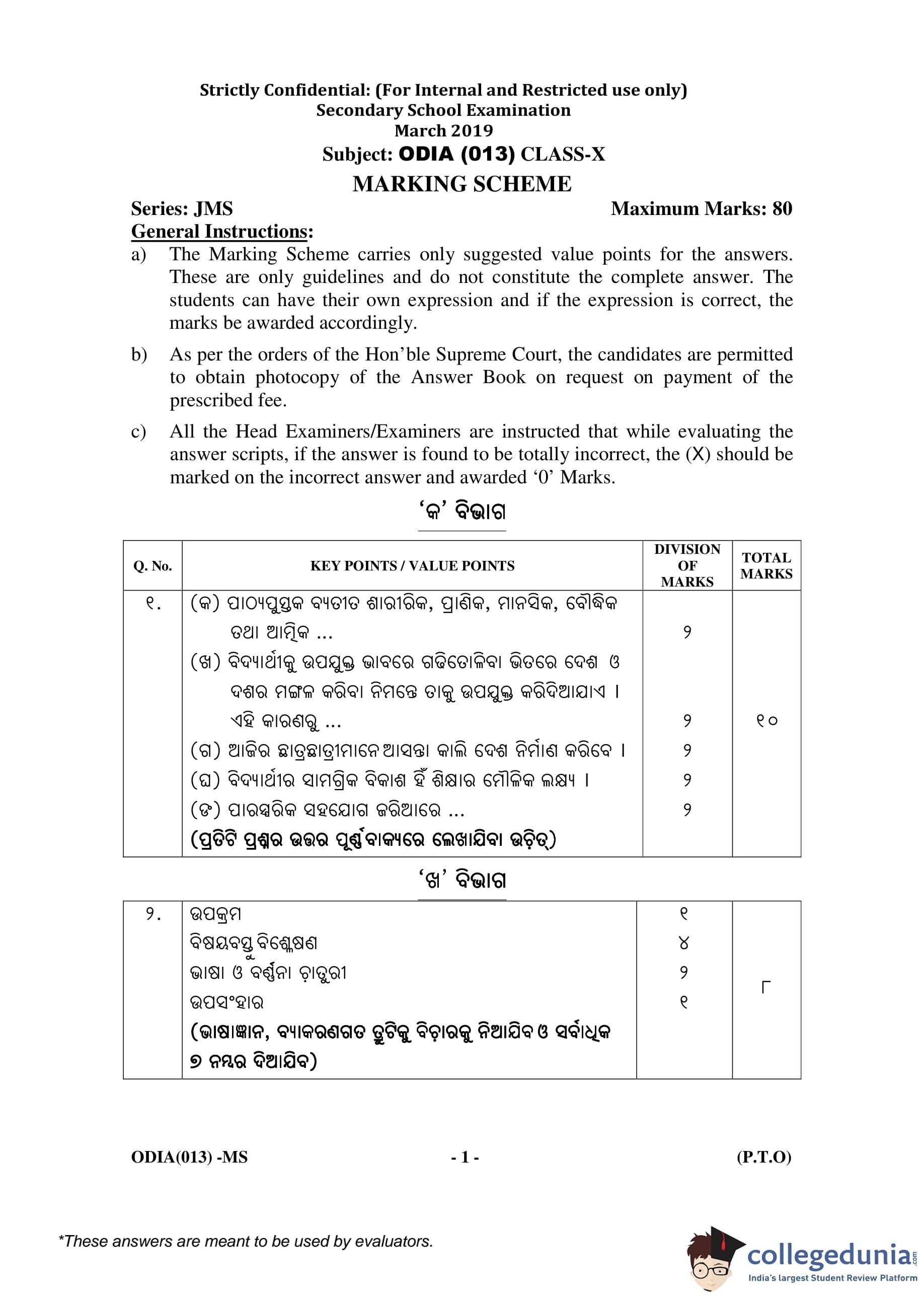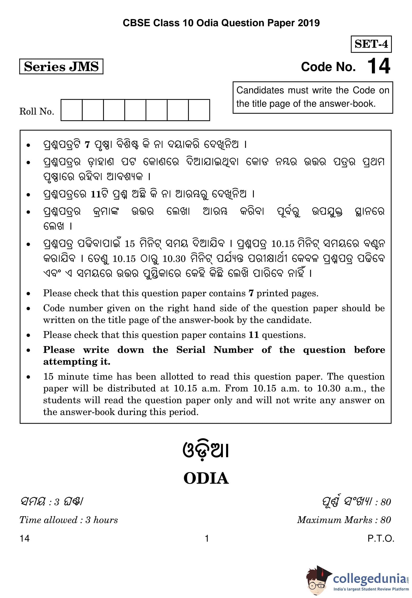 | CBSE Class 10 Odia Question Paper 2019 PDF | CBSE Class 10 Odia Answer Key 2019 PDF | Detailed Solutions |