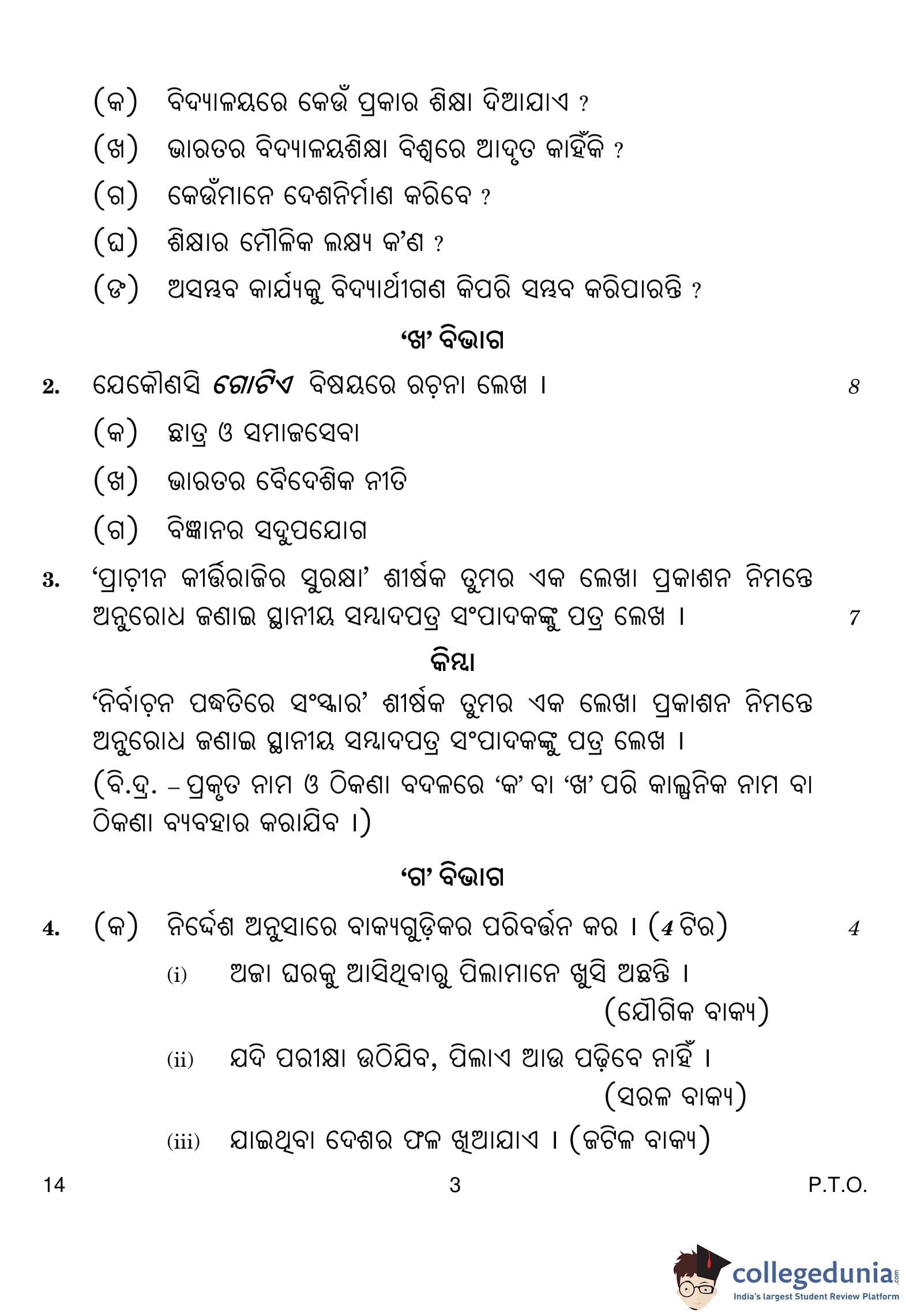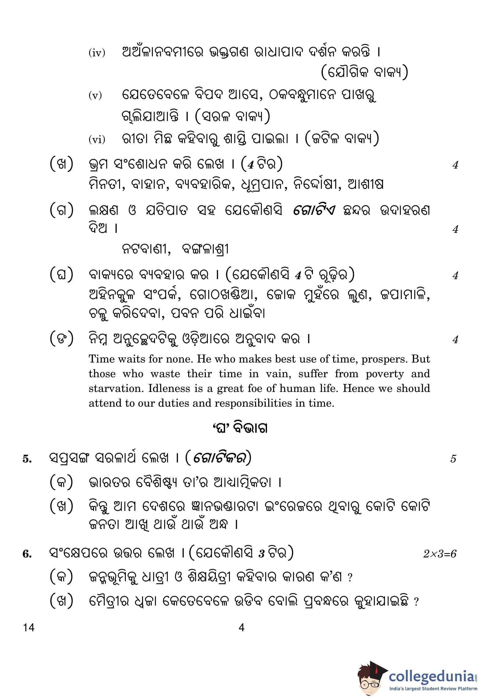 CBSE Class 10 Odia Question Paper 2019 with Answer Key Set 4 is available for download. The exam was conducted by the Central Board of Secondary Education on March 5, 2019 in the Morning Session 10:30 AM to 1:30 PM. The medium of paper was Odia. The question paper comprised a total of 11 questions.