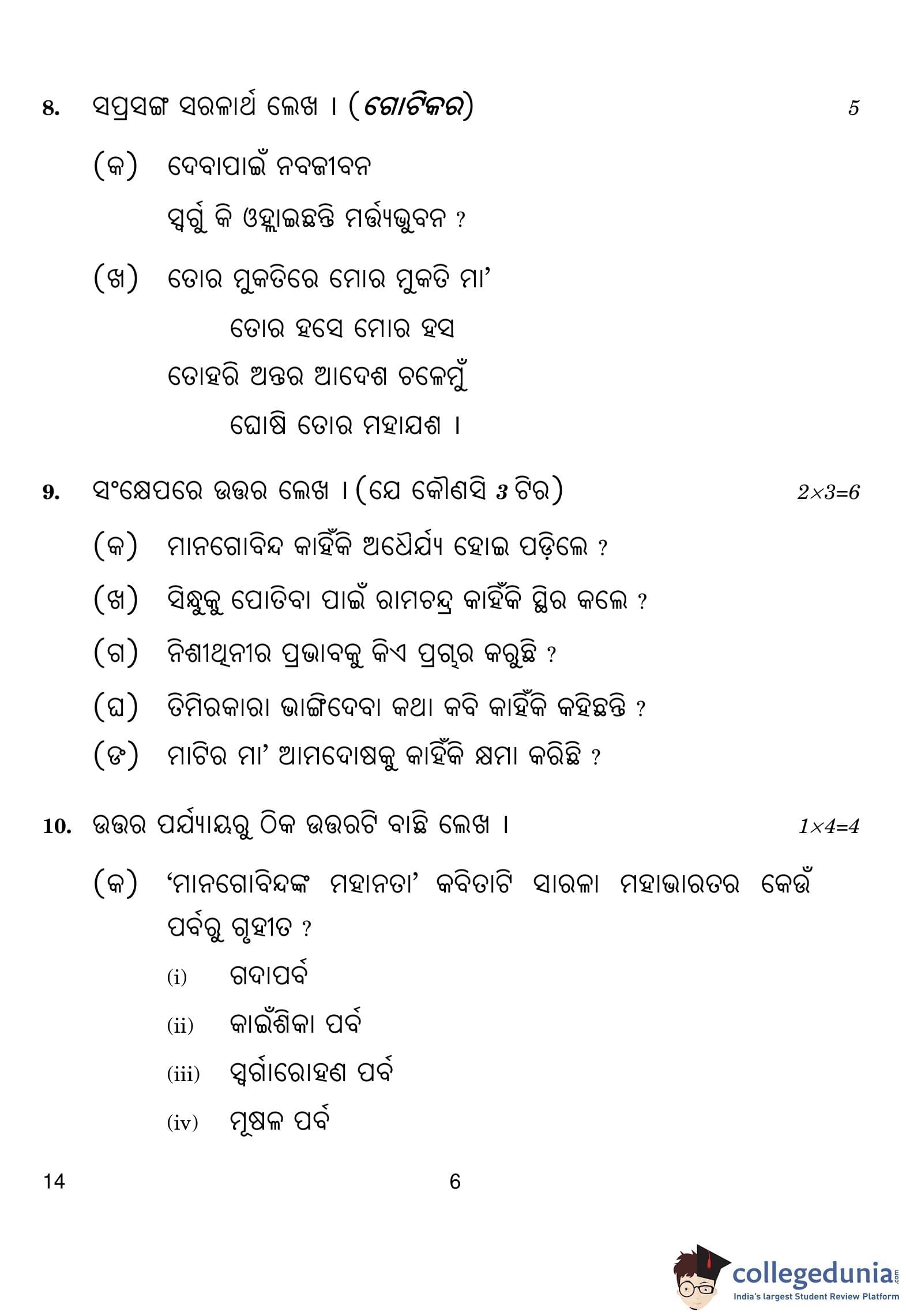 CBSE Class 10 Odia Question Paper 2019 with Answer Key (March 5)