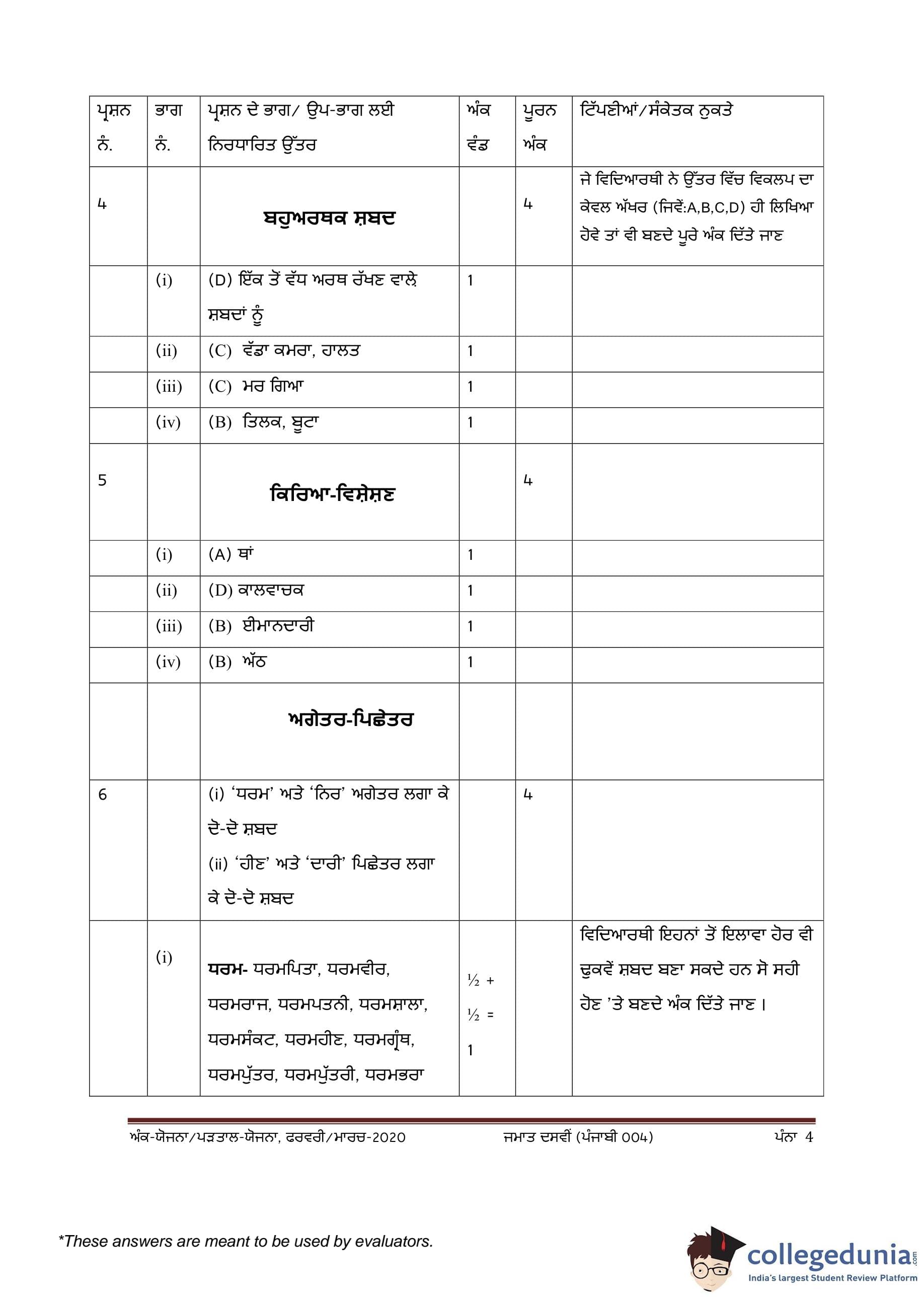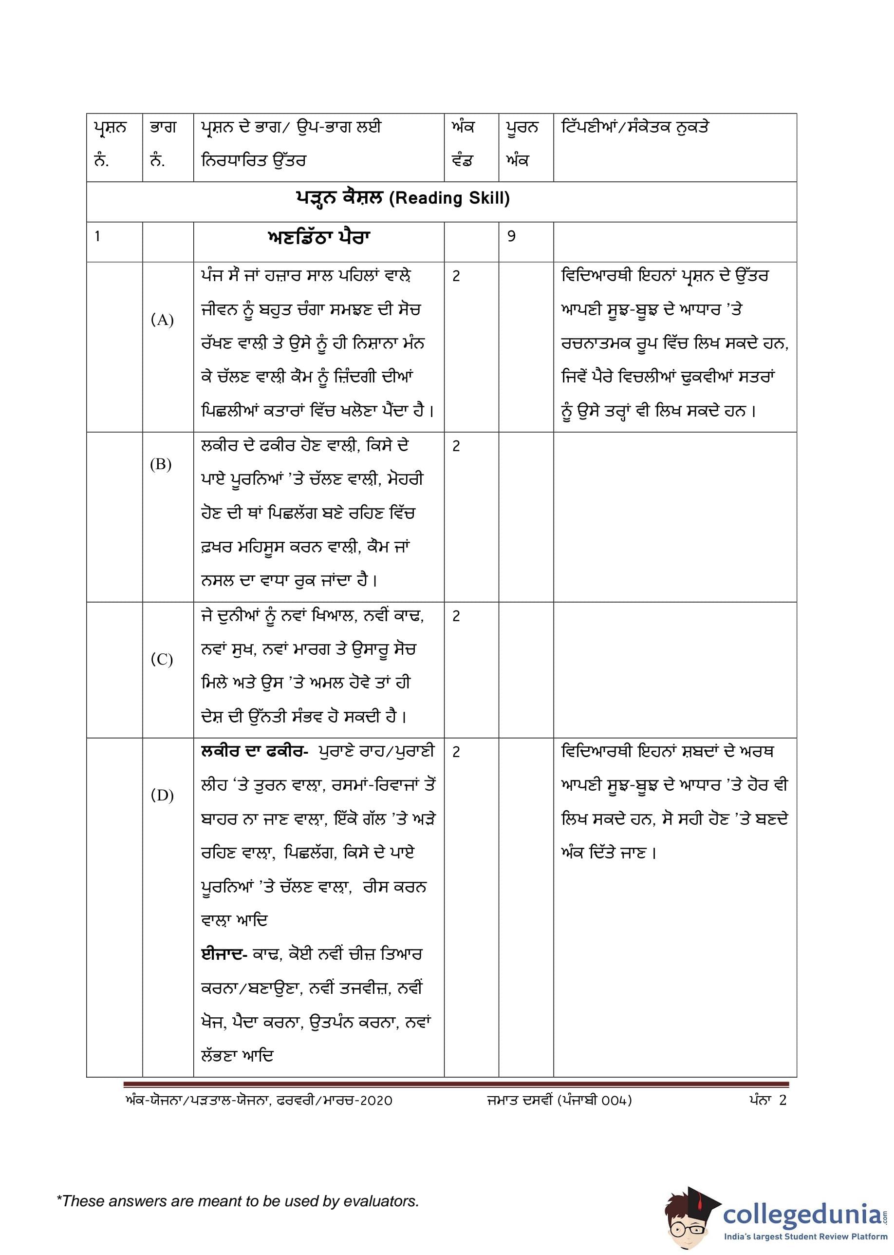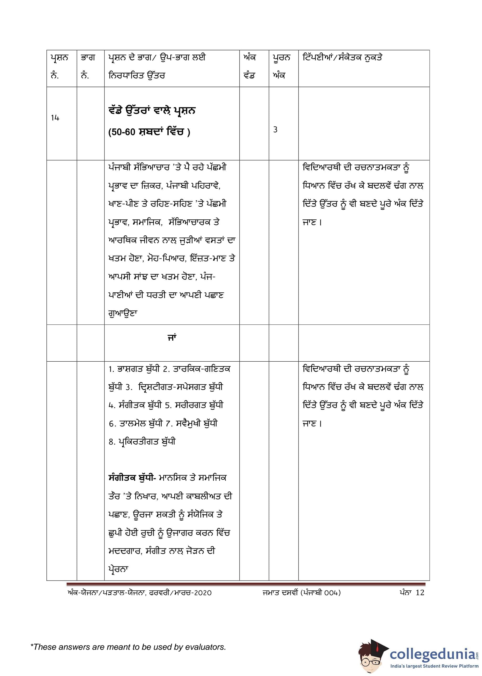 CBSE Class 10 Punjabi Question Paper 2020 with Answer Key (February 24)