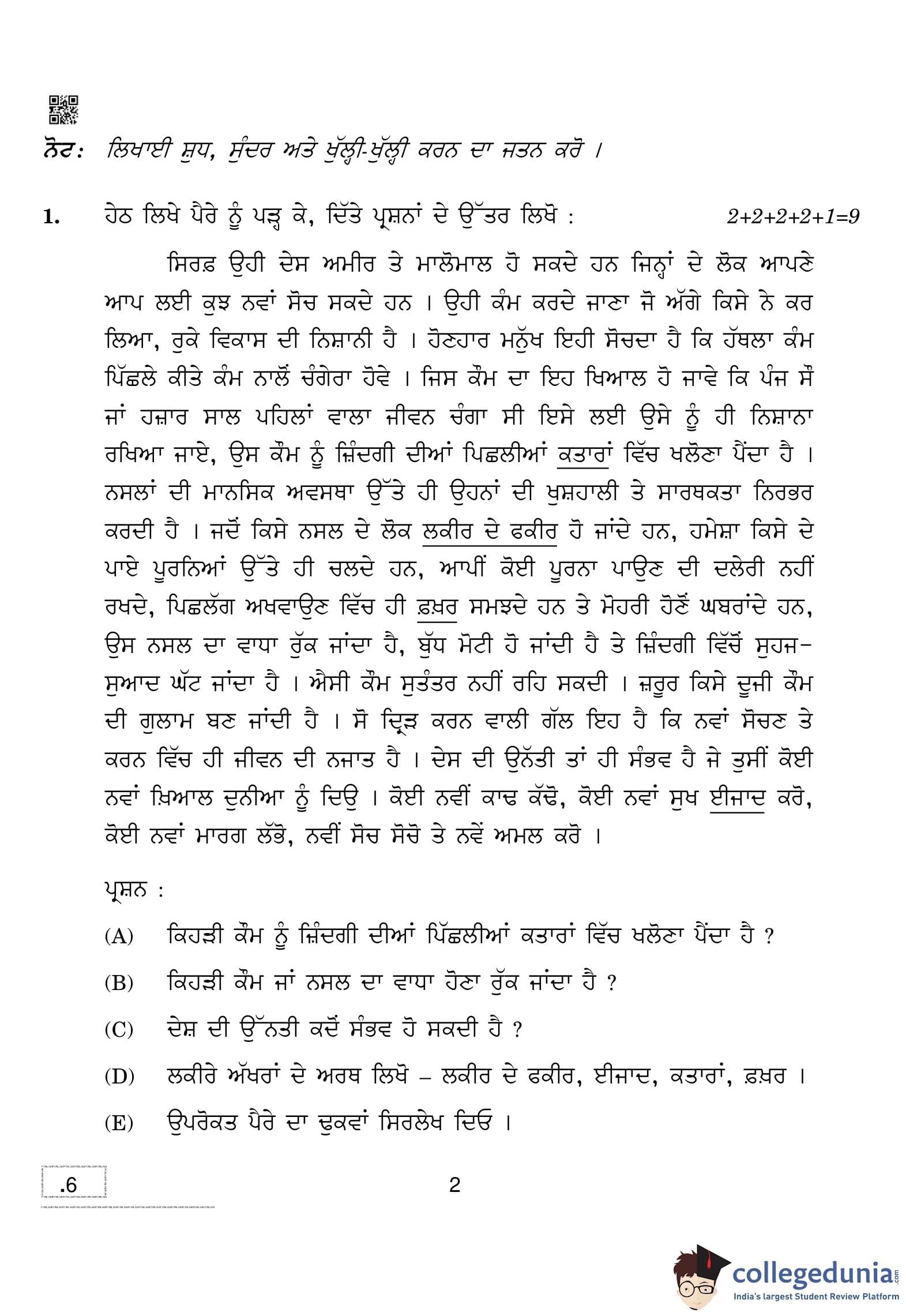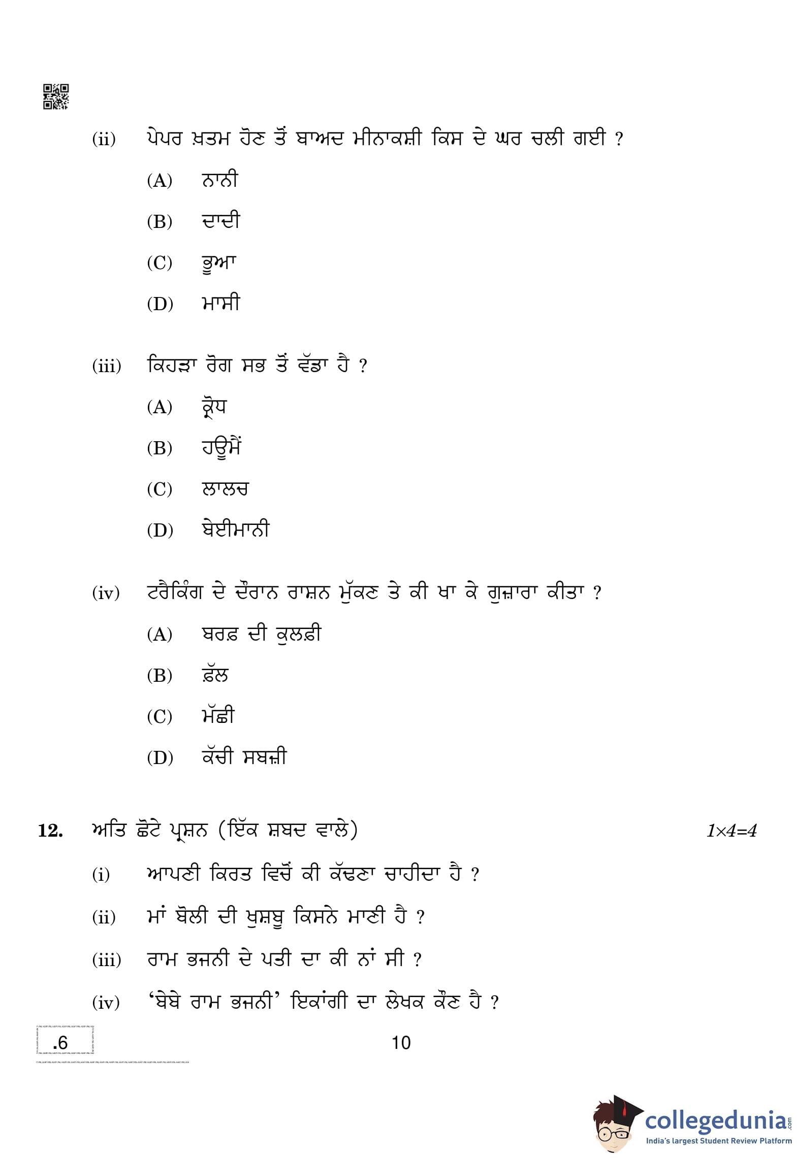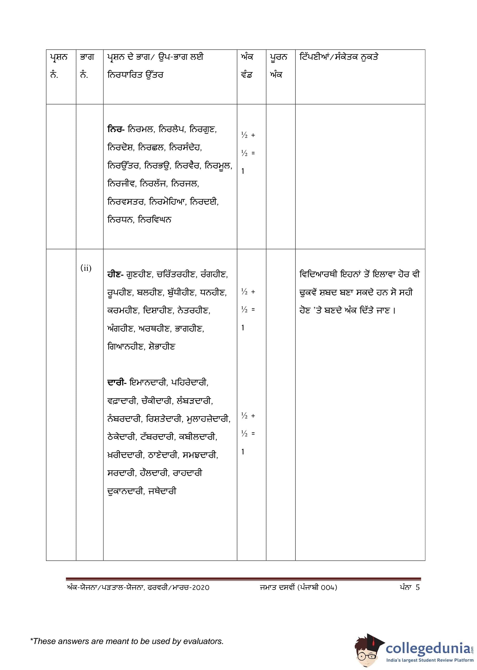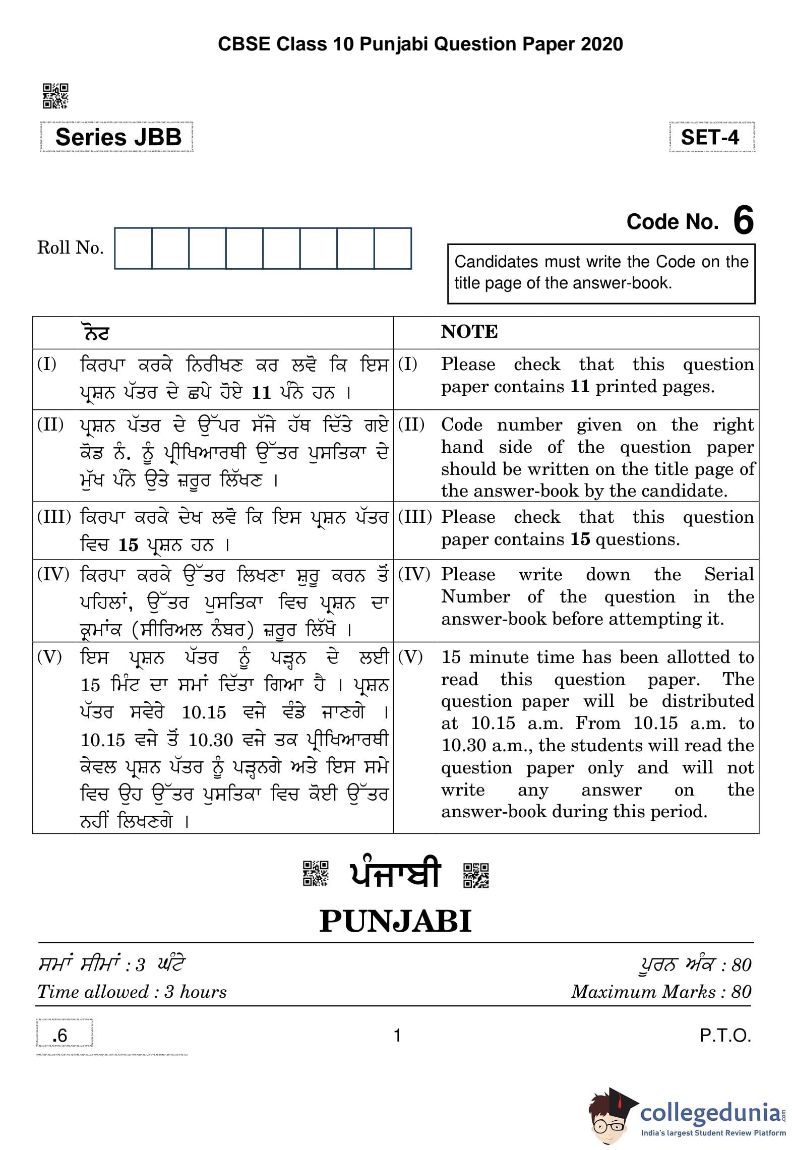 CBSE Class 10 Punjabi Question Paper 2020 with Answer Key (February 24)
