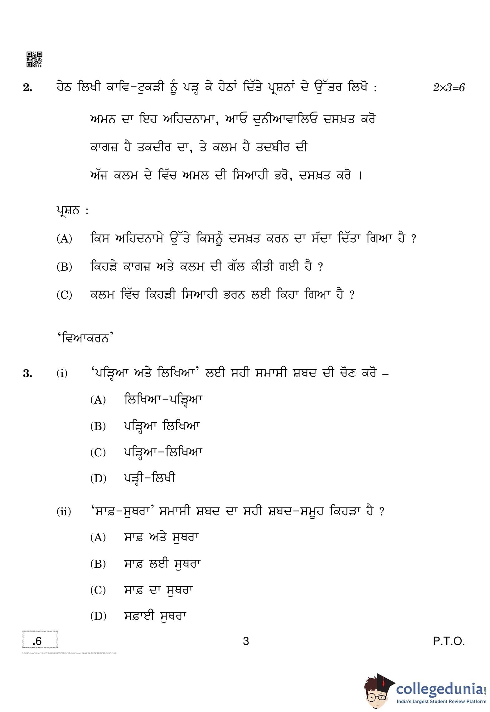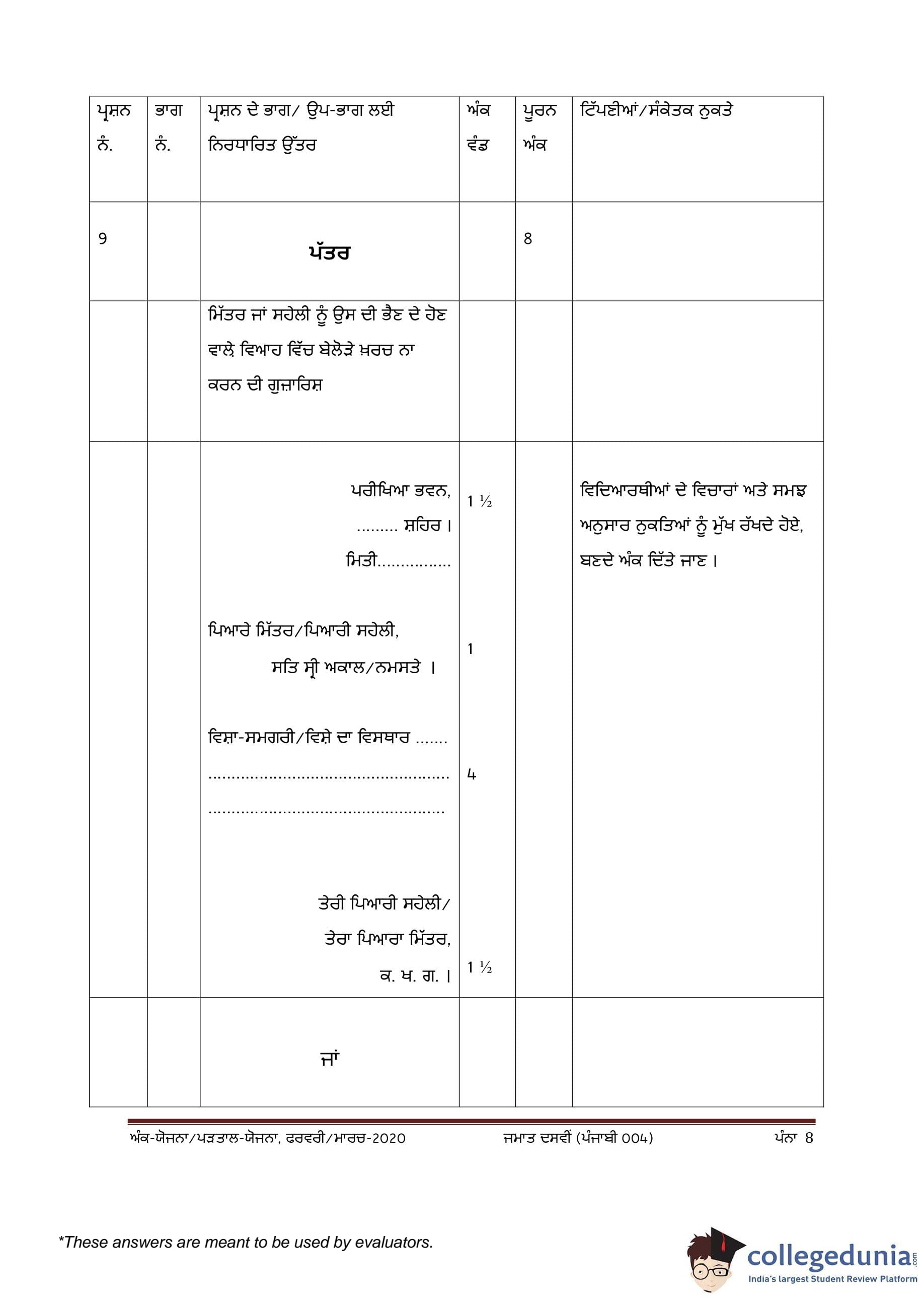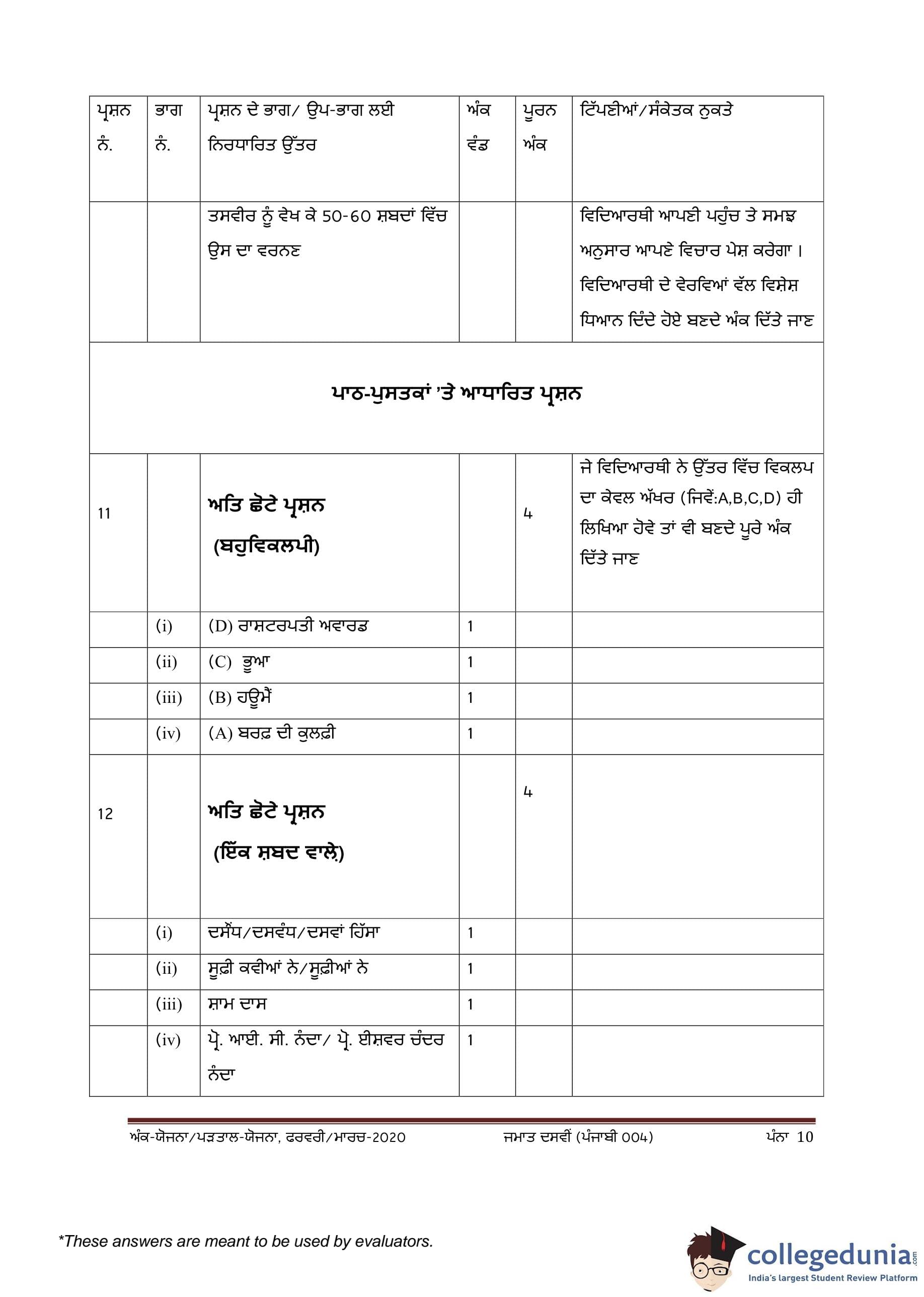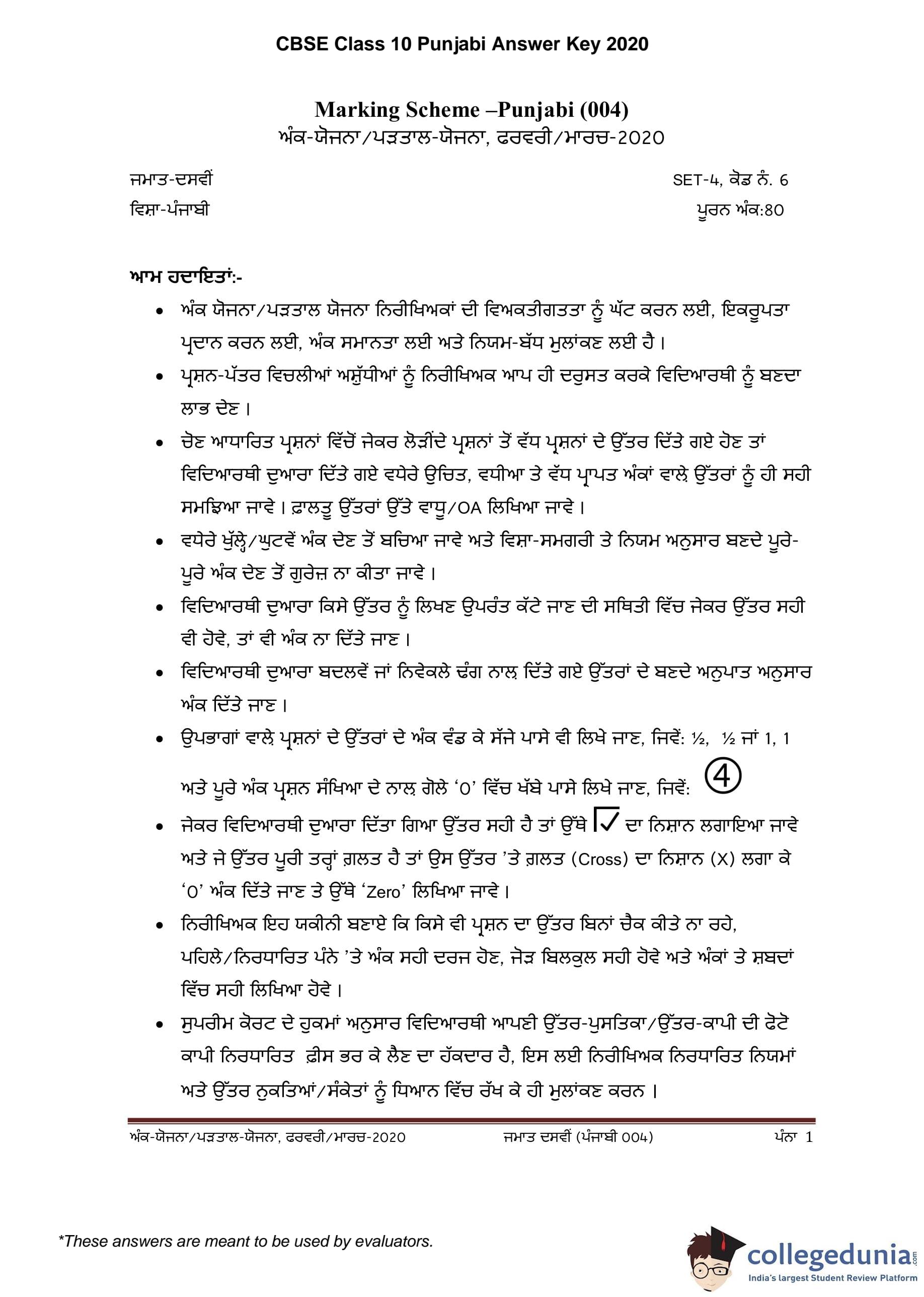 | CBSE Class 10 Punjabi Question Paper 2020 PDF | CBSE Class 10 Punjabi Answer Key 2020 PDF | Detailed Solutions |
