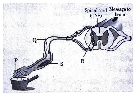 Observe the given figure and identify the labelled parts P, Q, R and S.