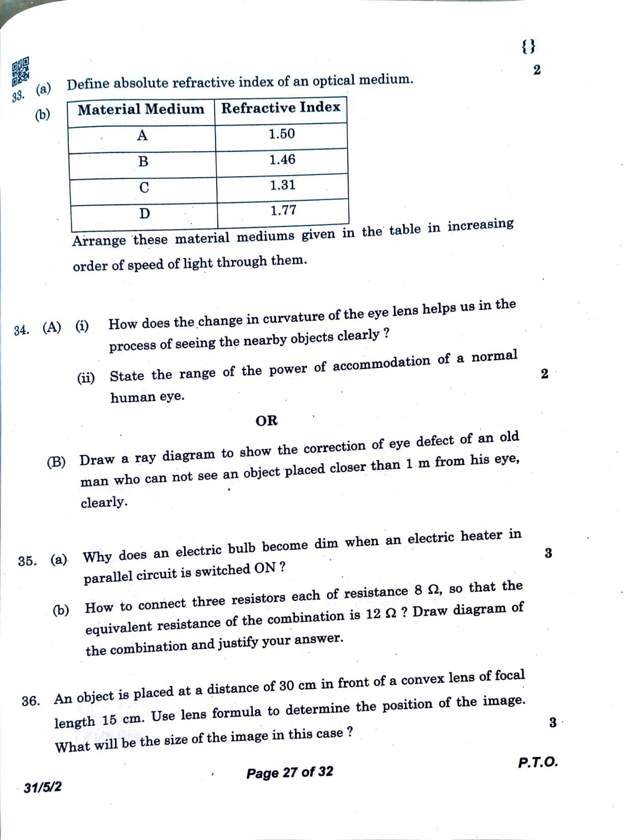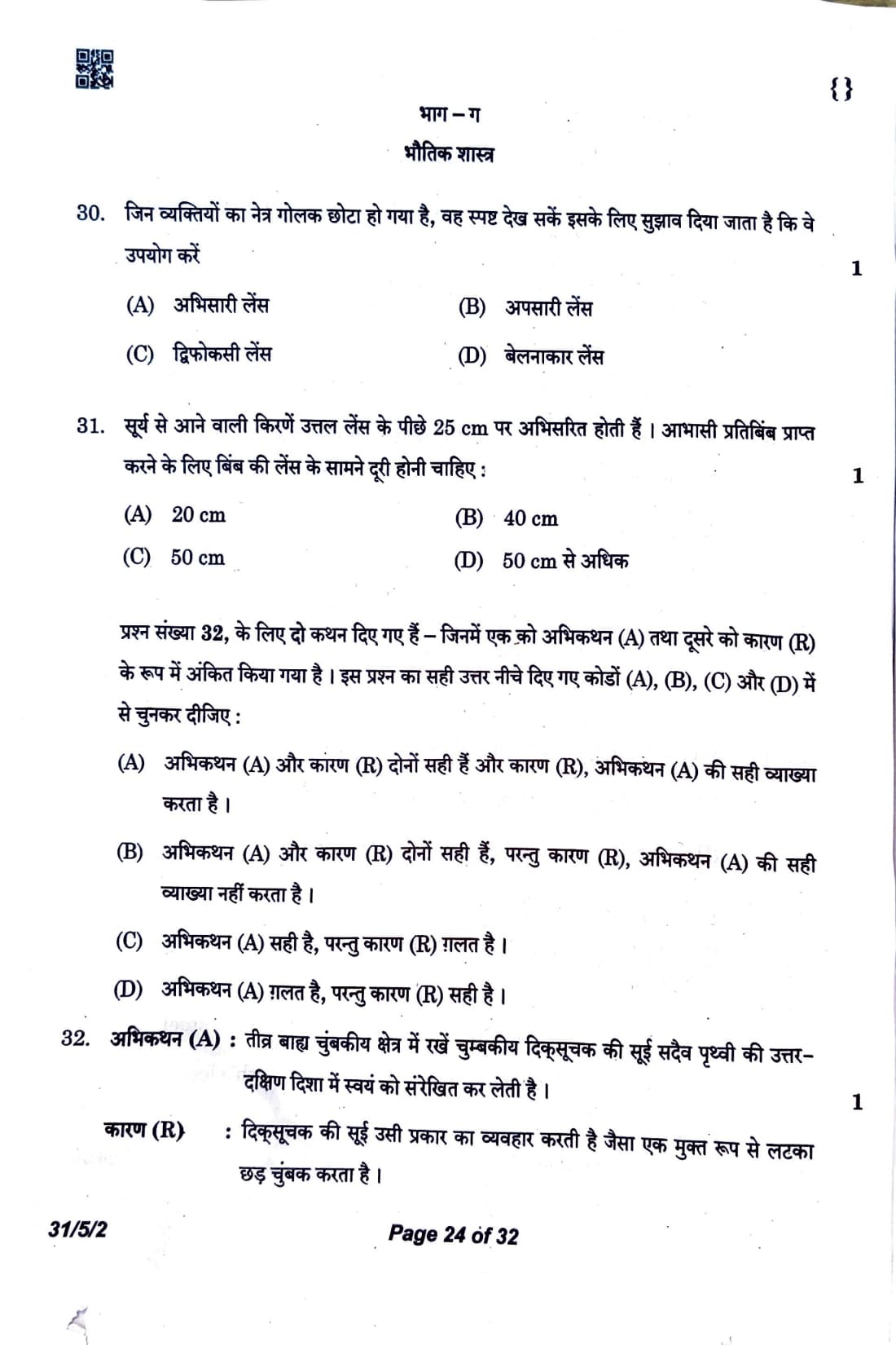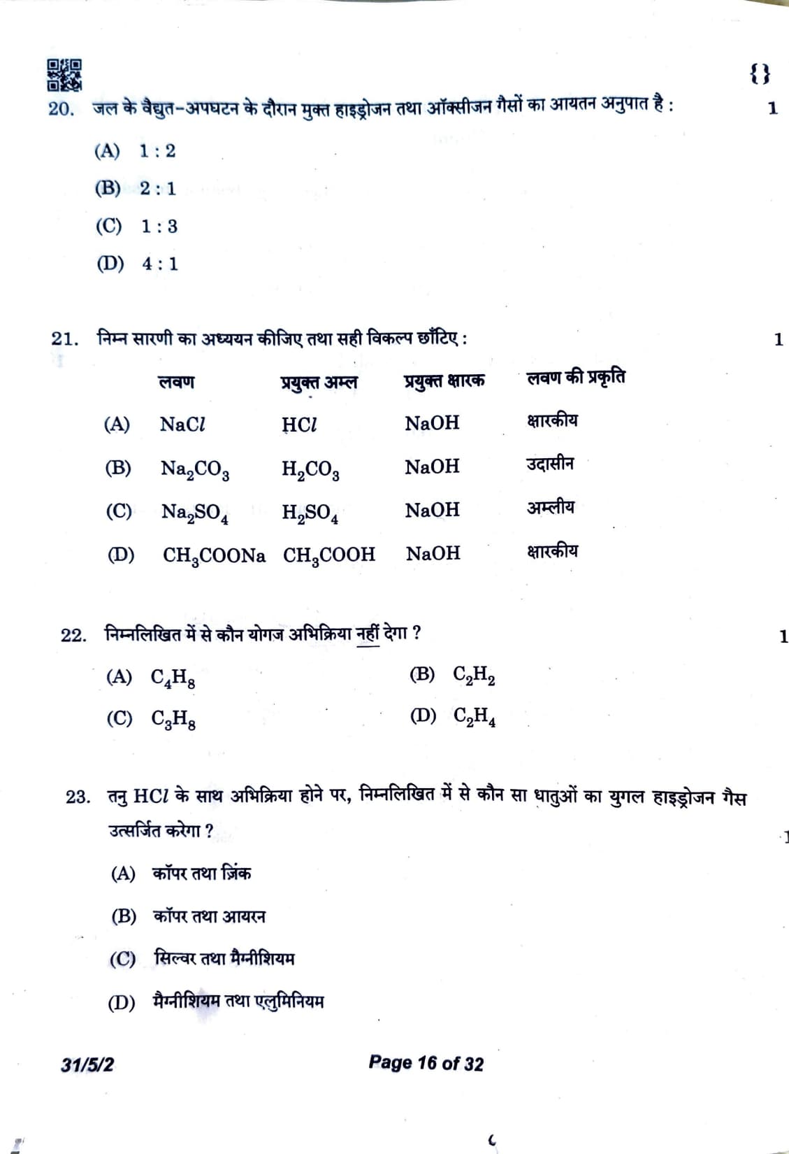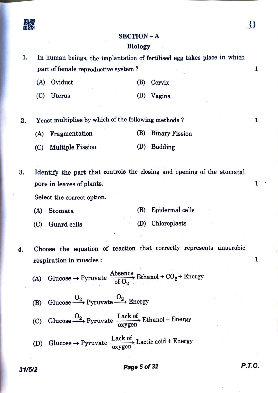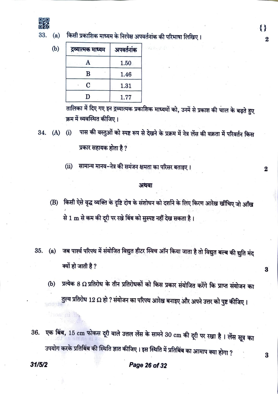 CBSE Class 10 Science Question Paper 2026 (Set 2- 31/5/2) with Answer Key