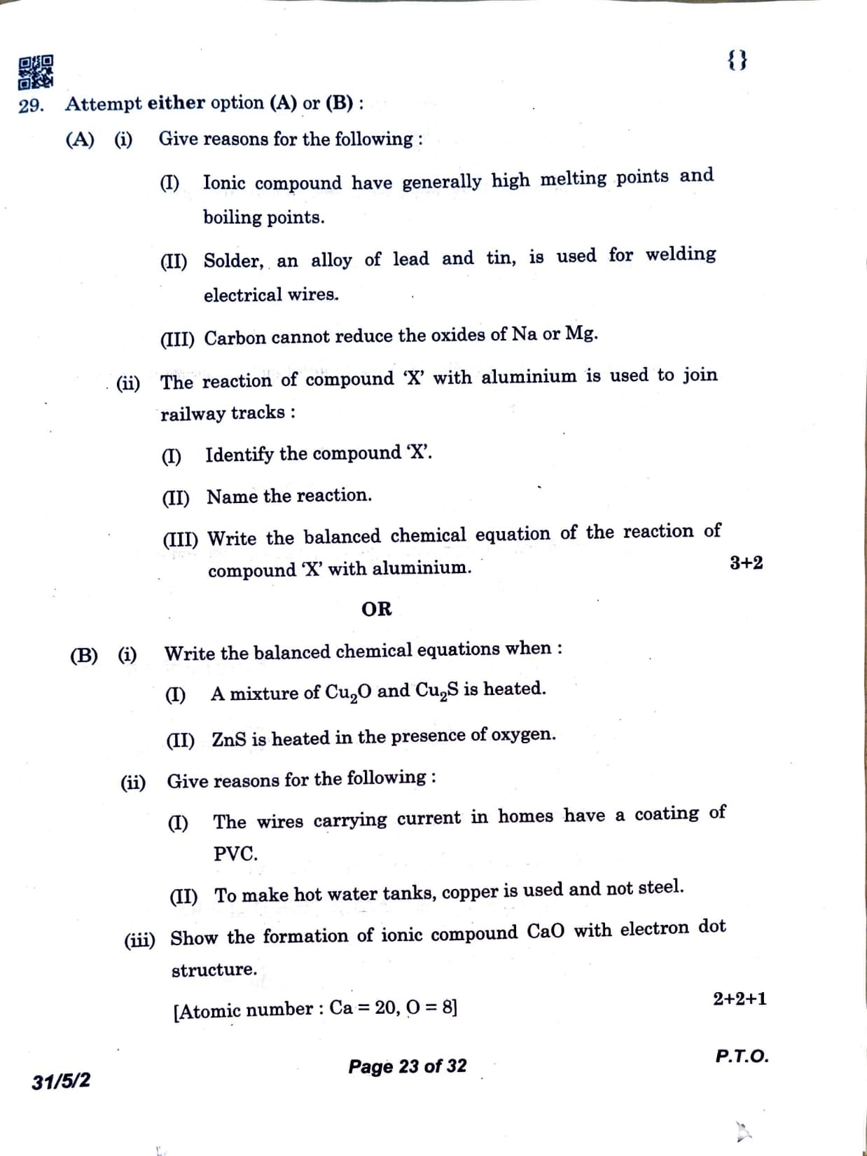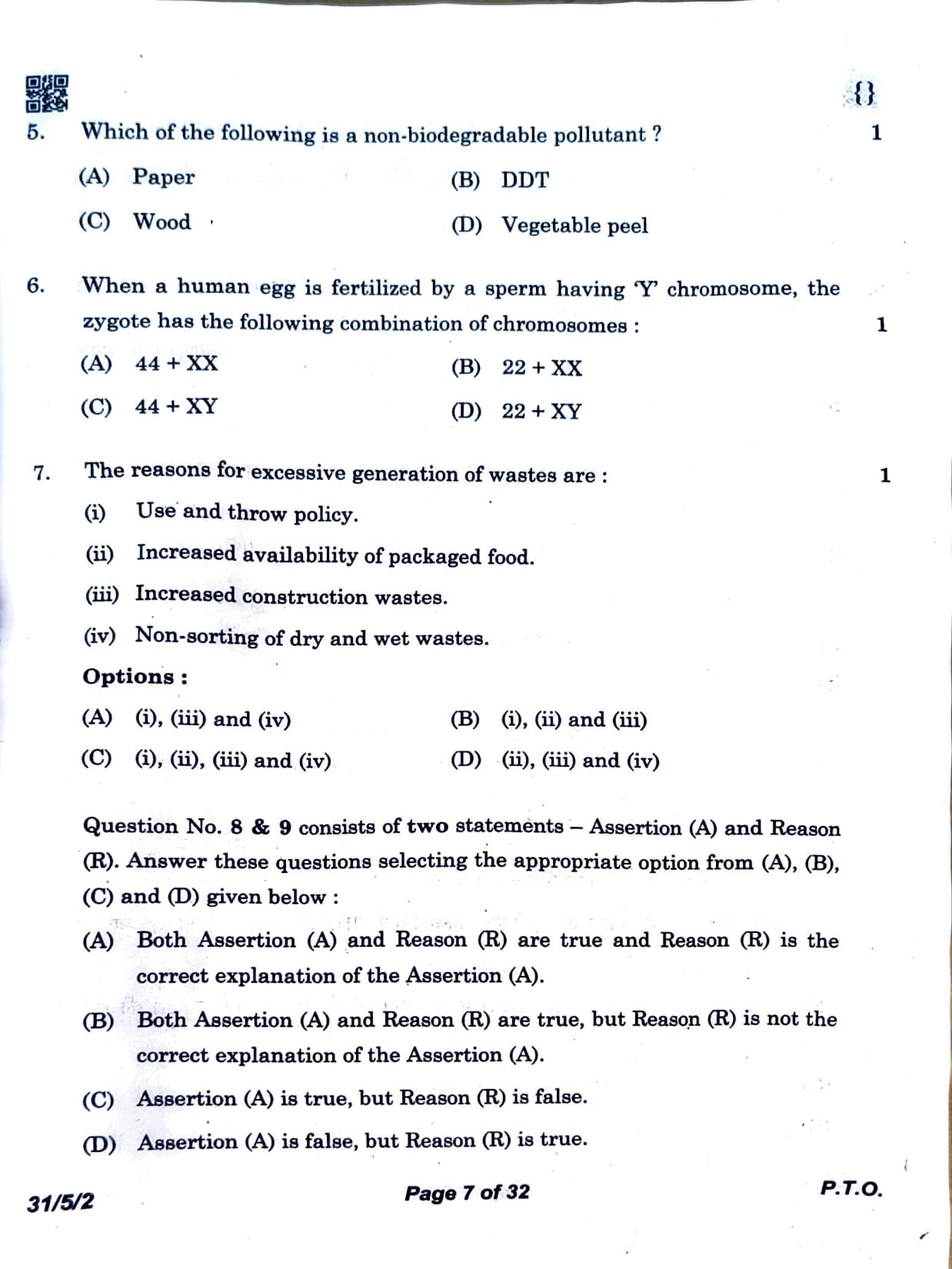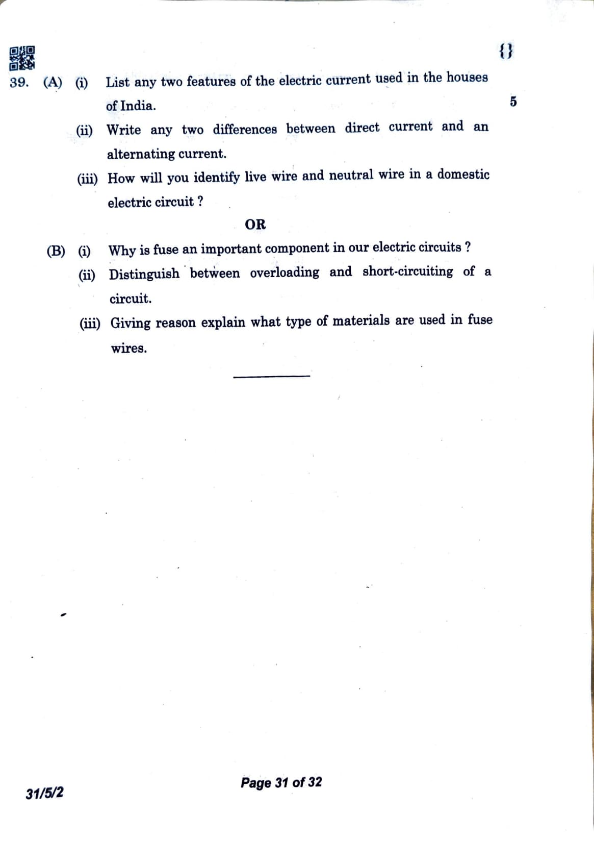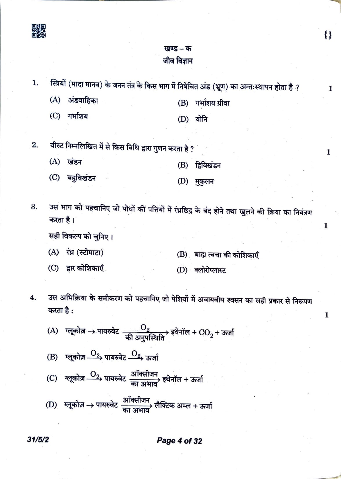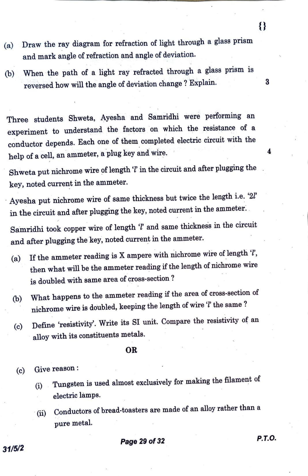 CBSE Class 10 Science Question Paper 2026 (Set 2- 31/5/2) with Answer Key