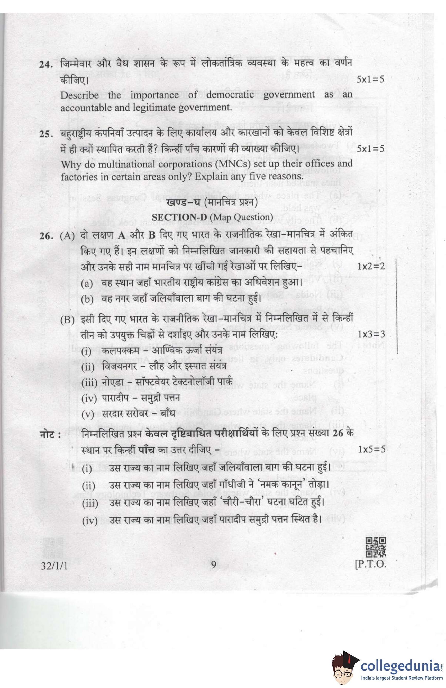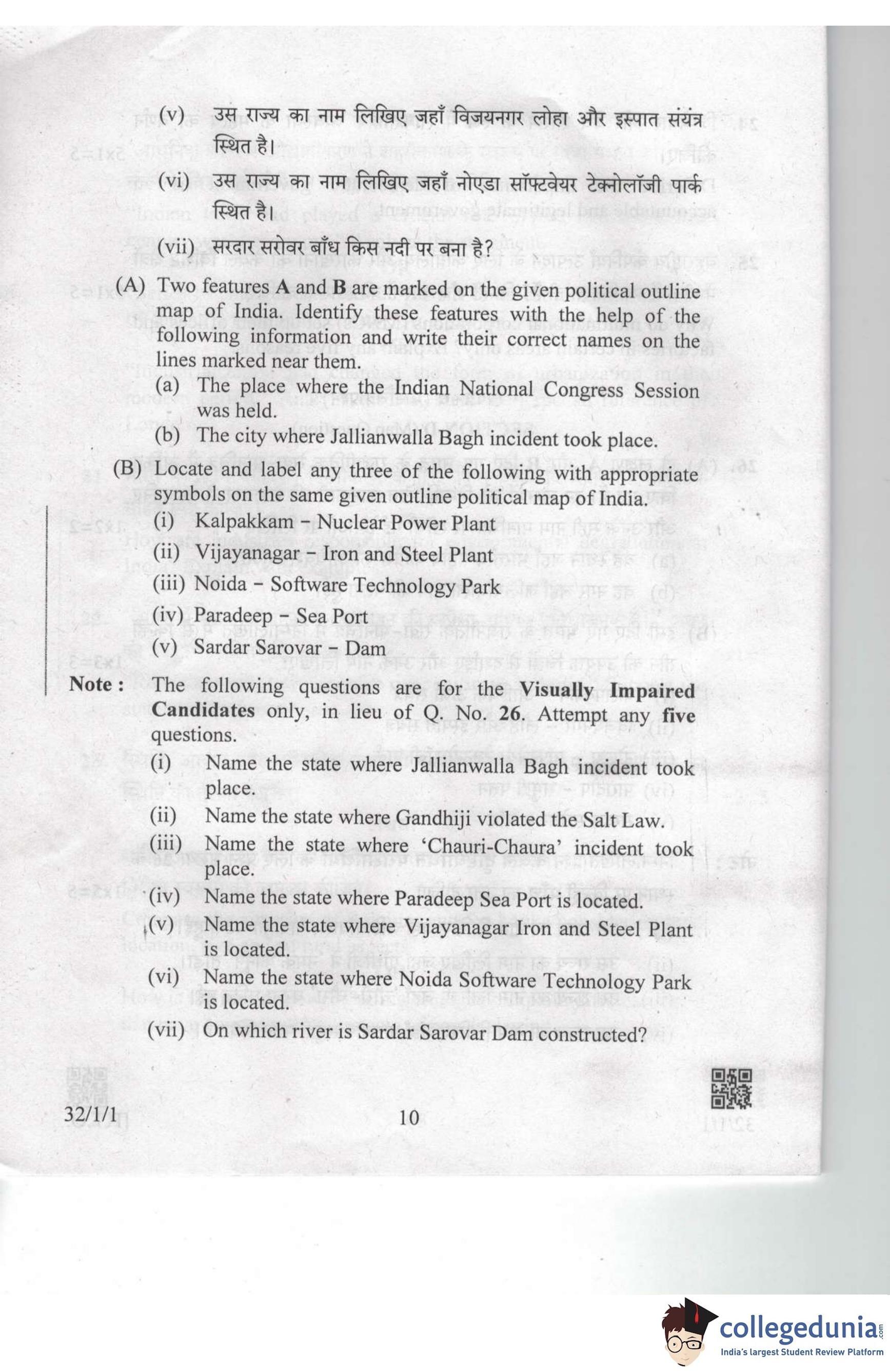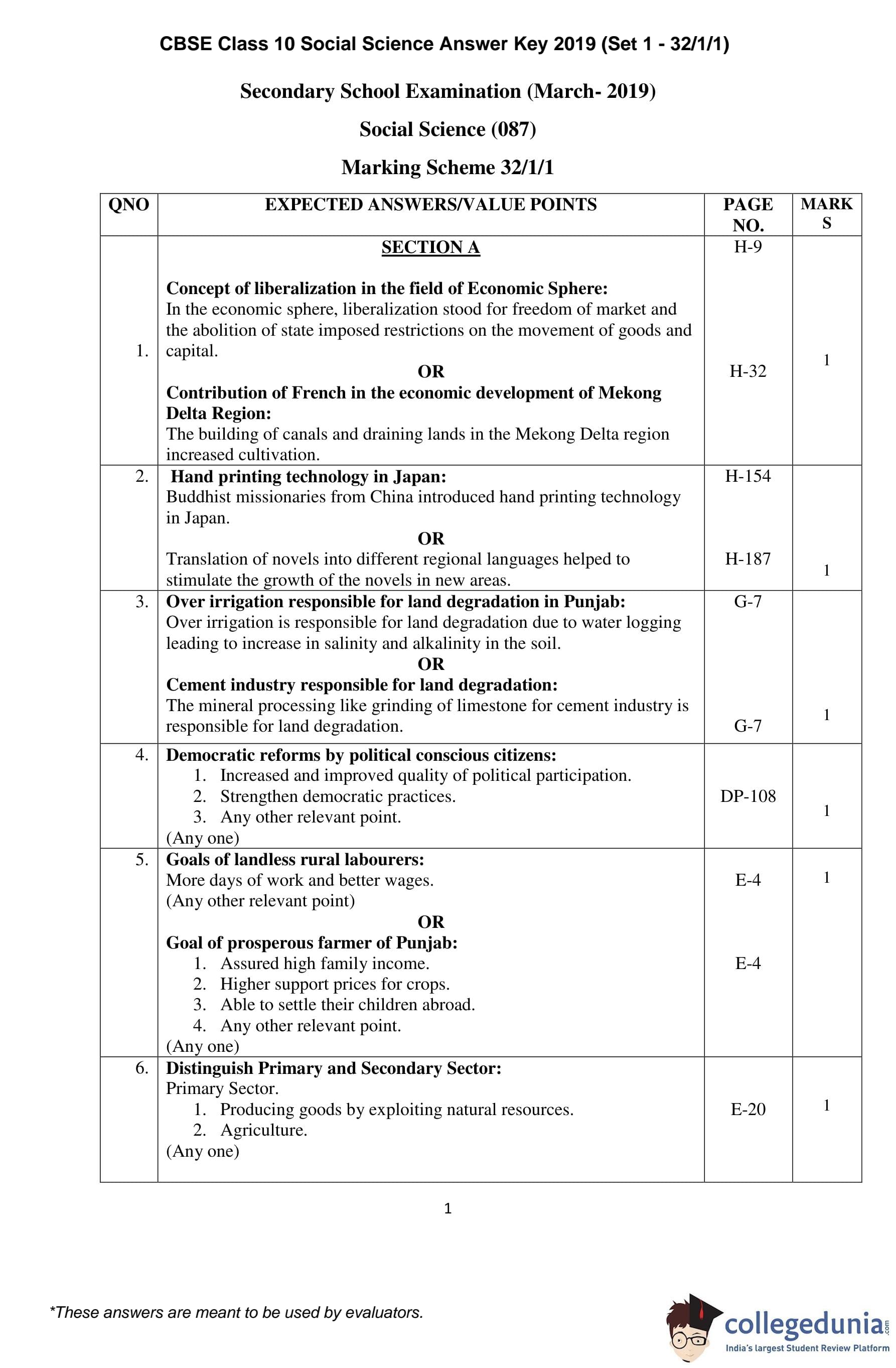 CBSE Class 10 Social Science Set 1 - 32/1/1 Question Paper 2019 with Answer Key (March 29)