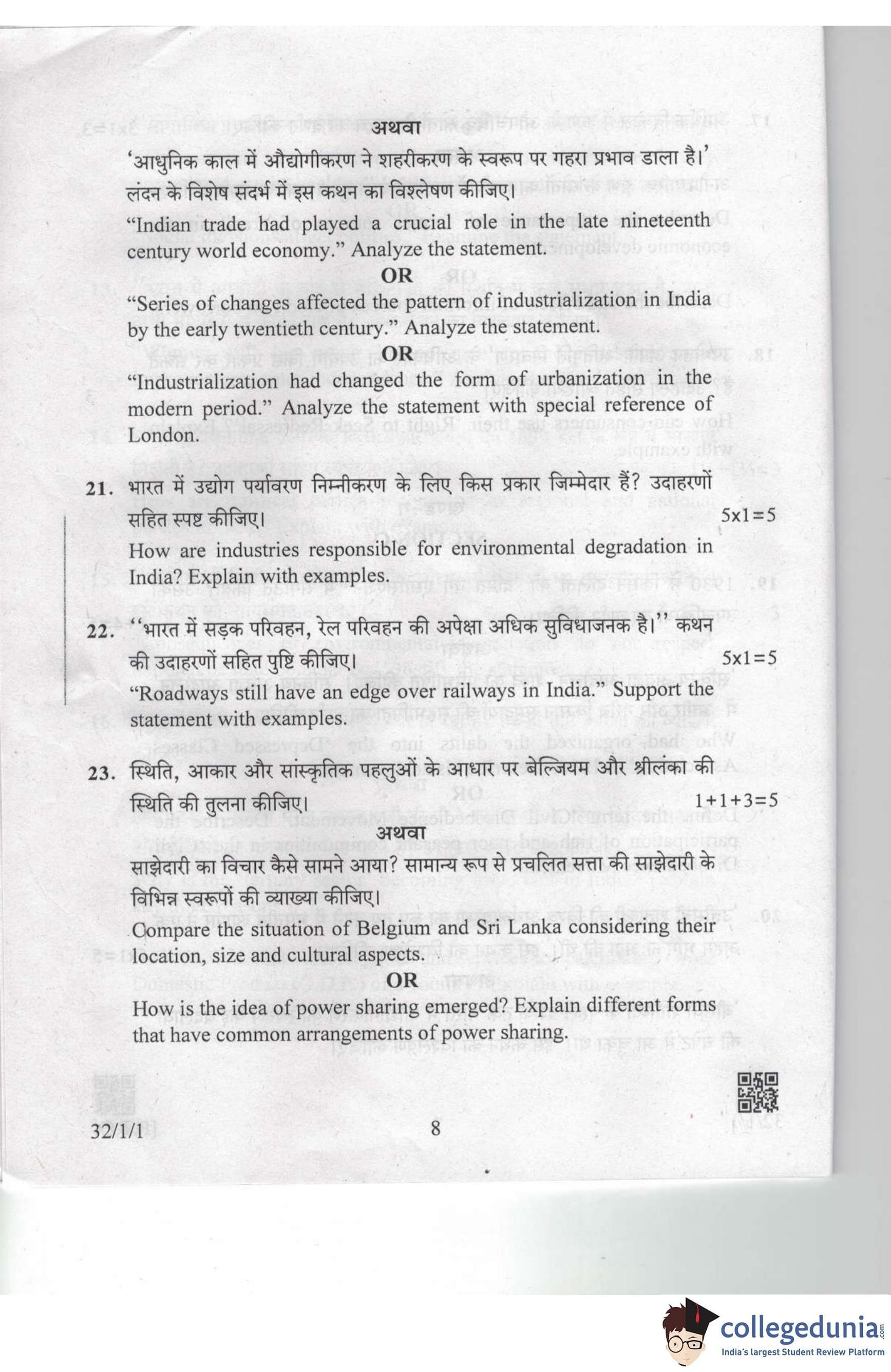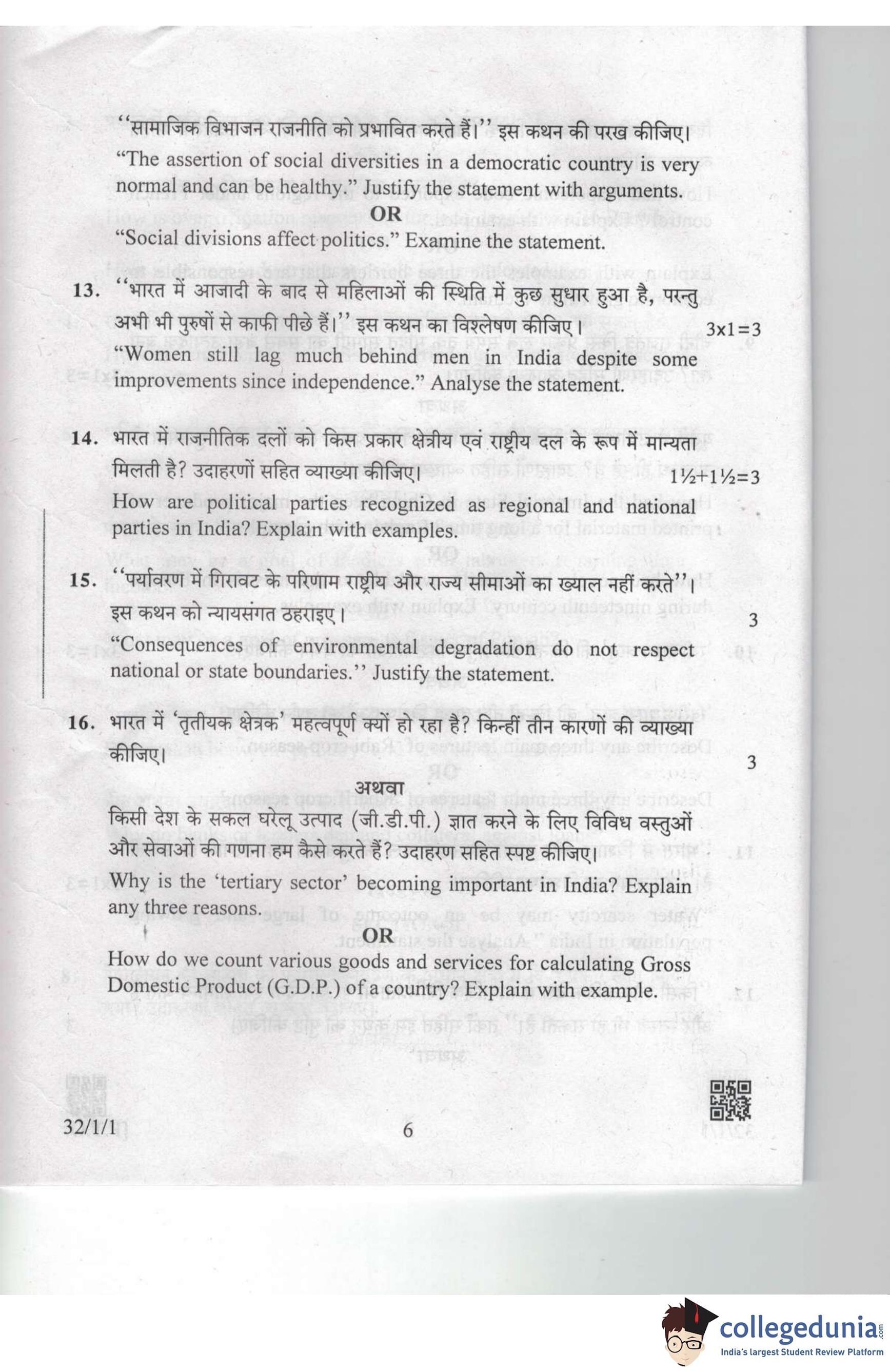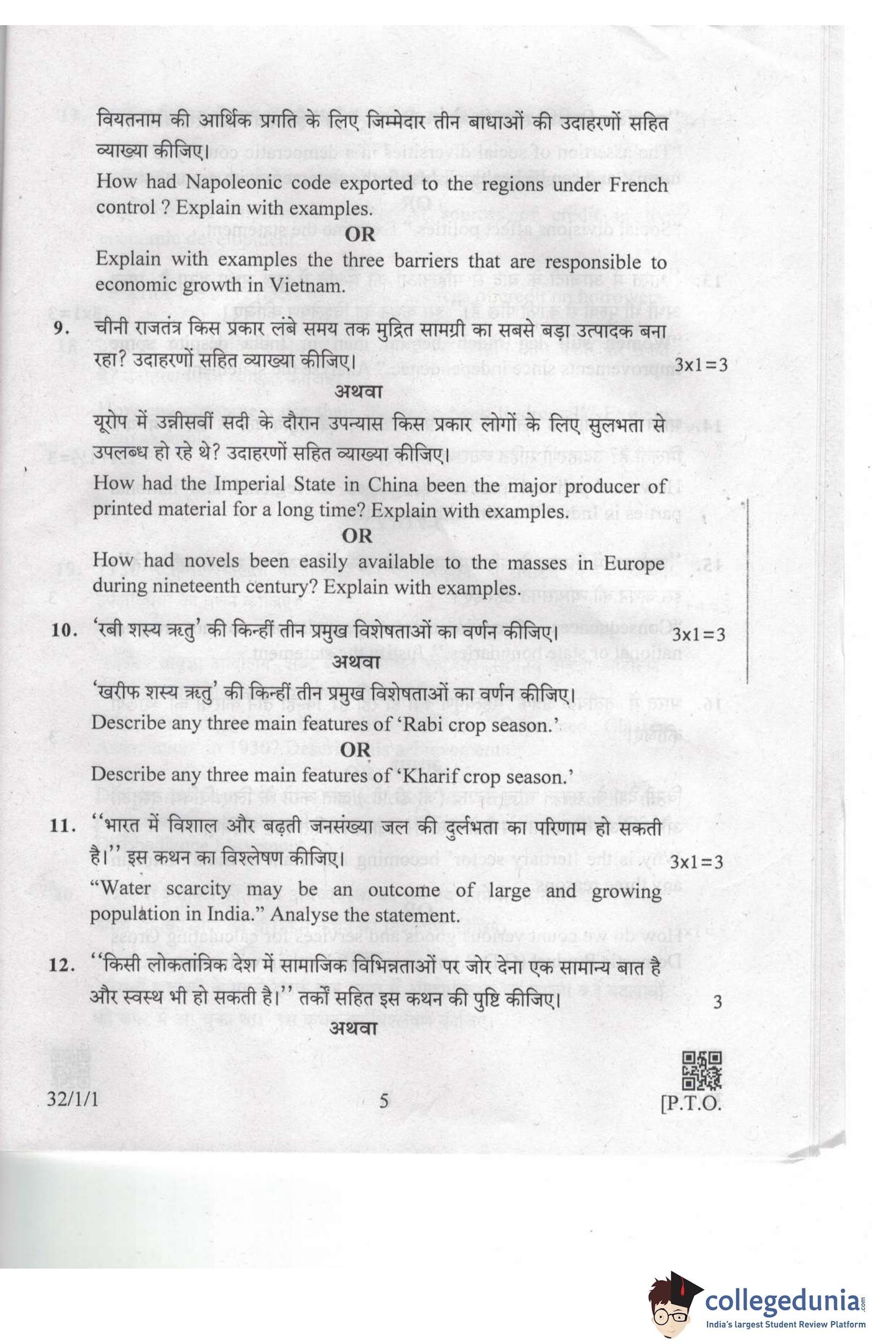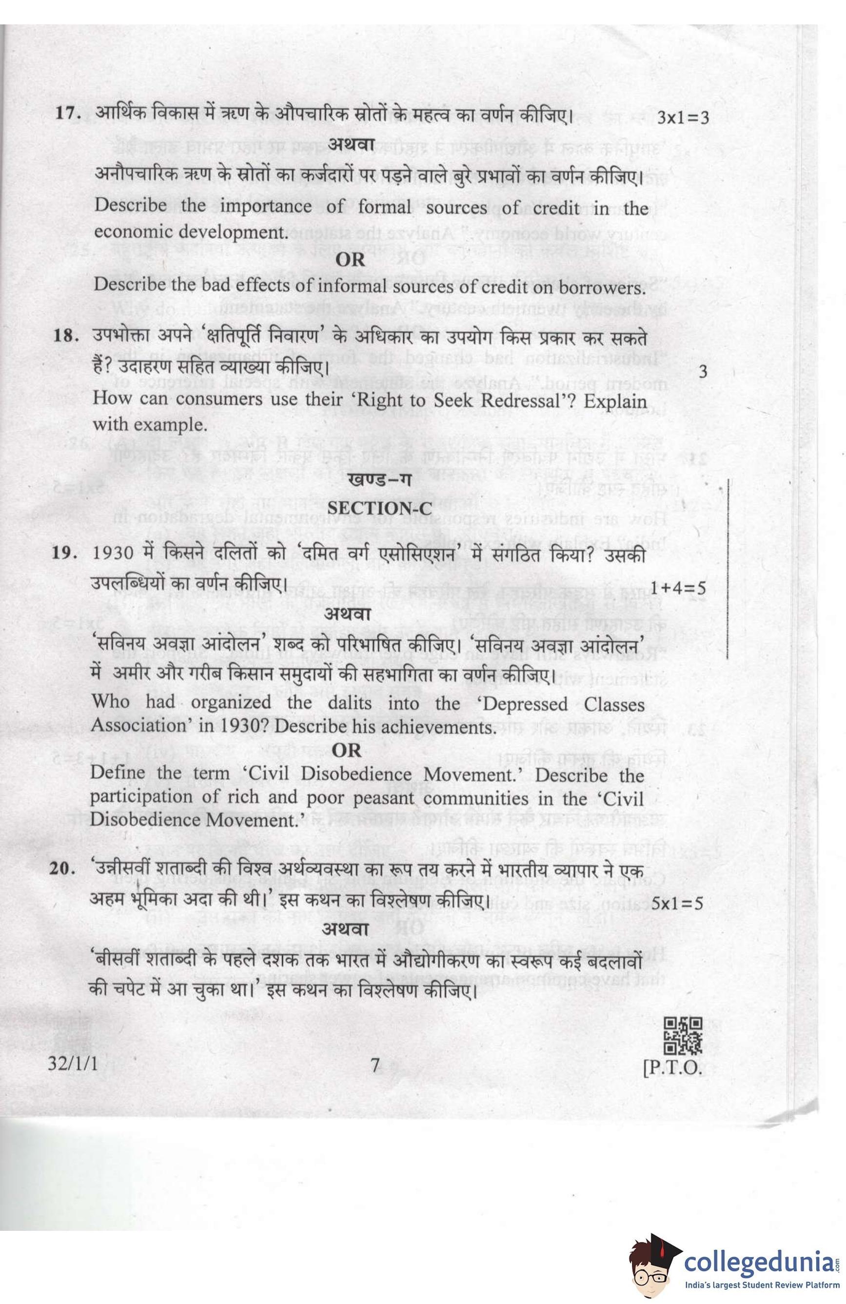 CBSE Class 10 Social Science Set 1 - 32/1/1 Question Paper 2019 with Answer Key (March 29)