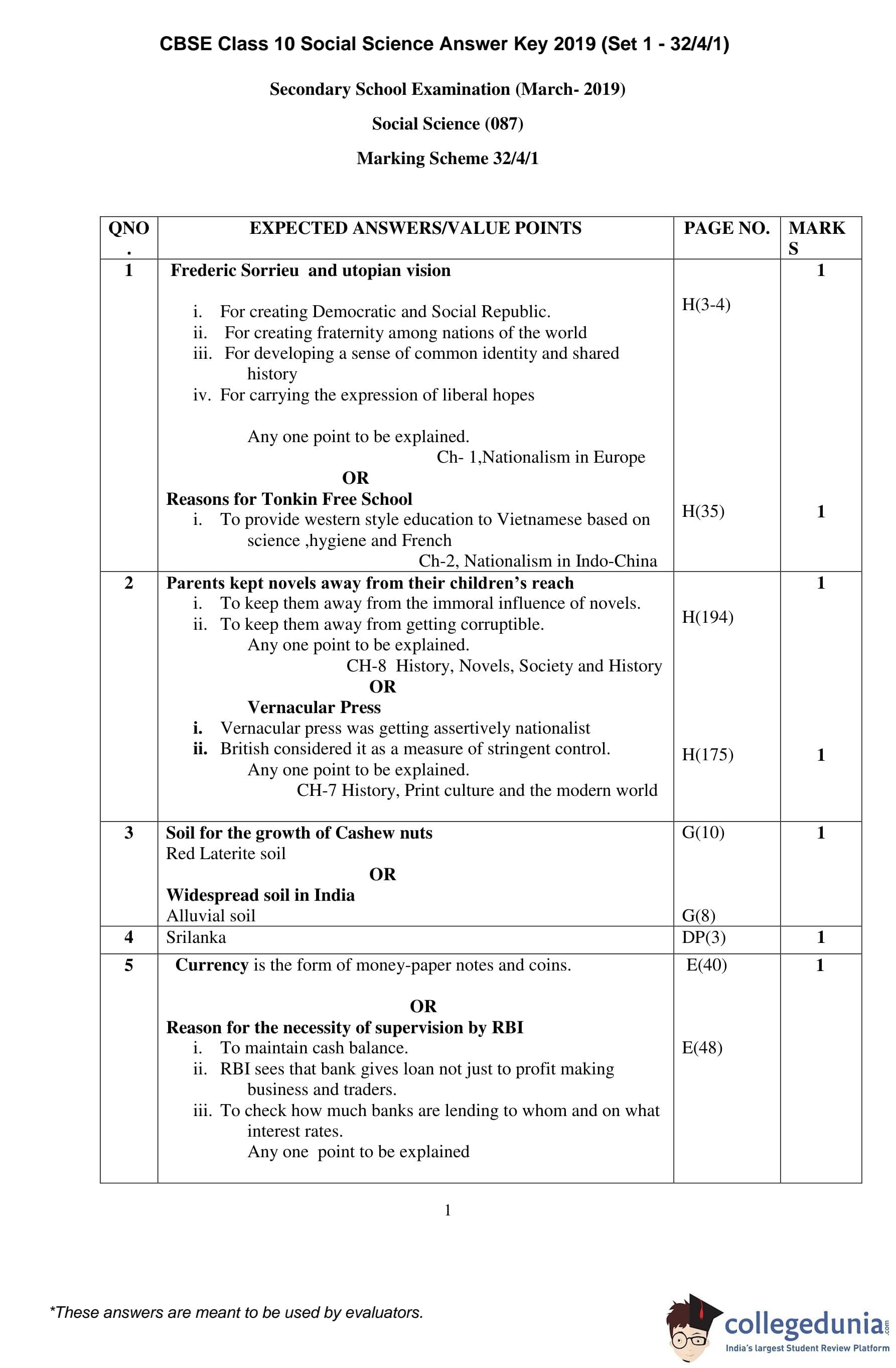 | CBSE Class 10 Social Science Question Paper 2019 PDF | CBSE Class 10 Social Science Answer Key 2019 PDF | Detailed Solutions |