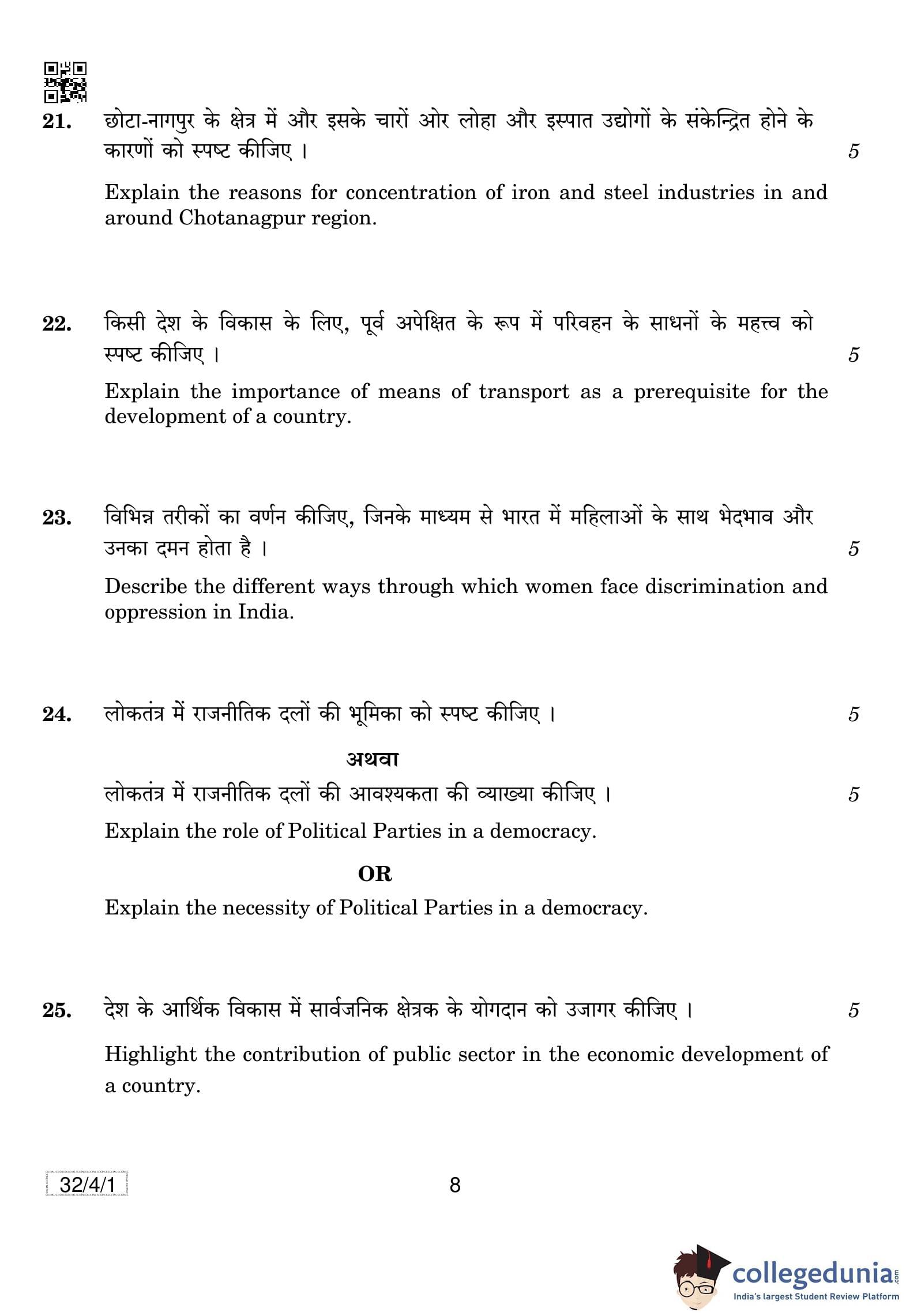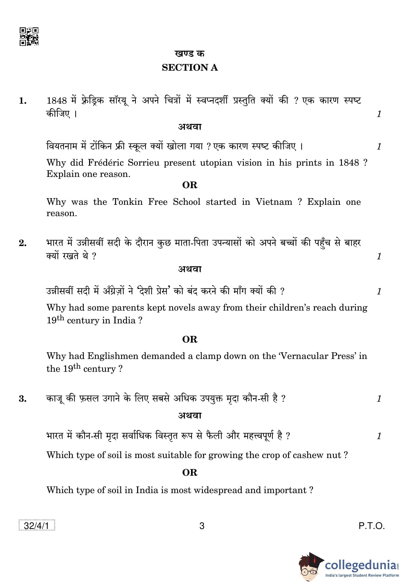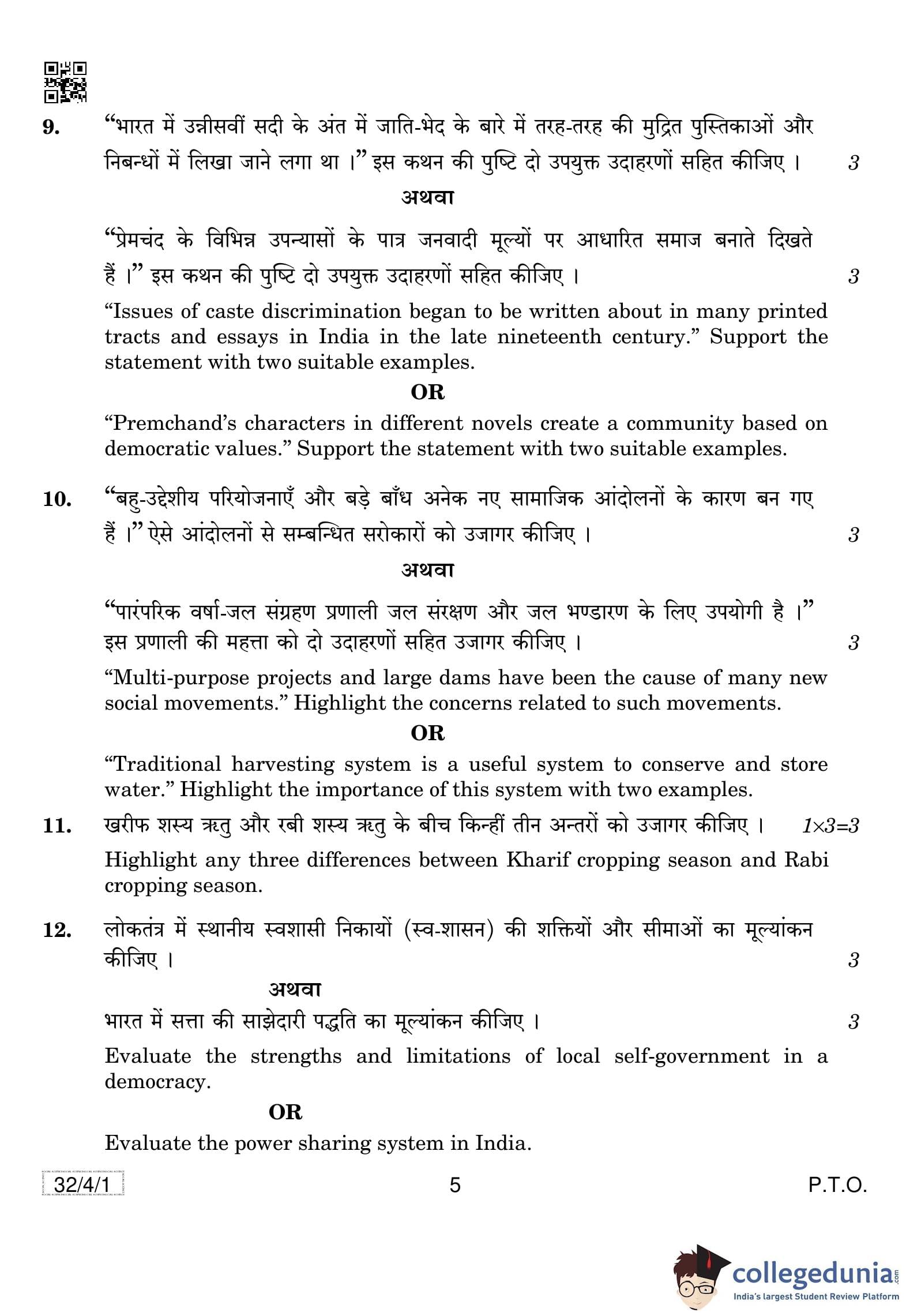 CBSE Class 10 Social Science Set 1 - 32/4/1 Question Paper 2019 with Answer Key (March 29)