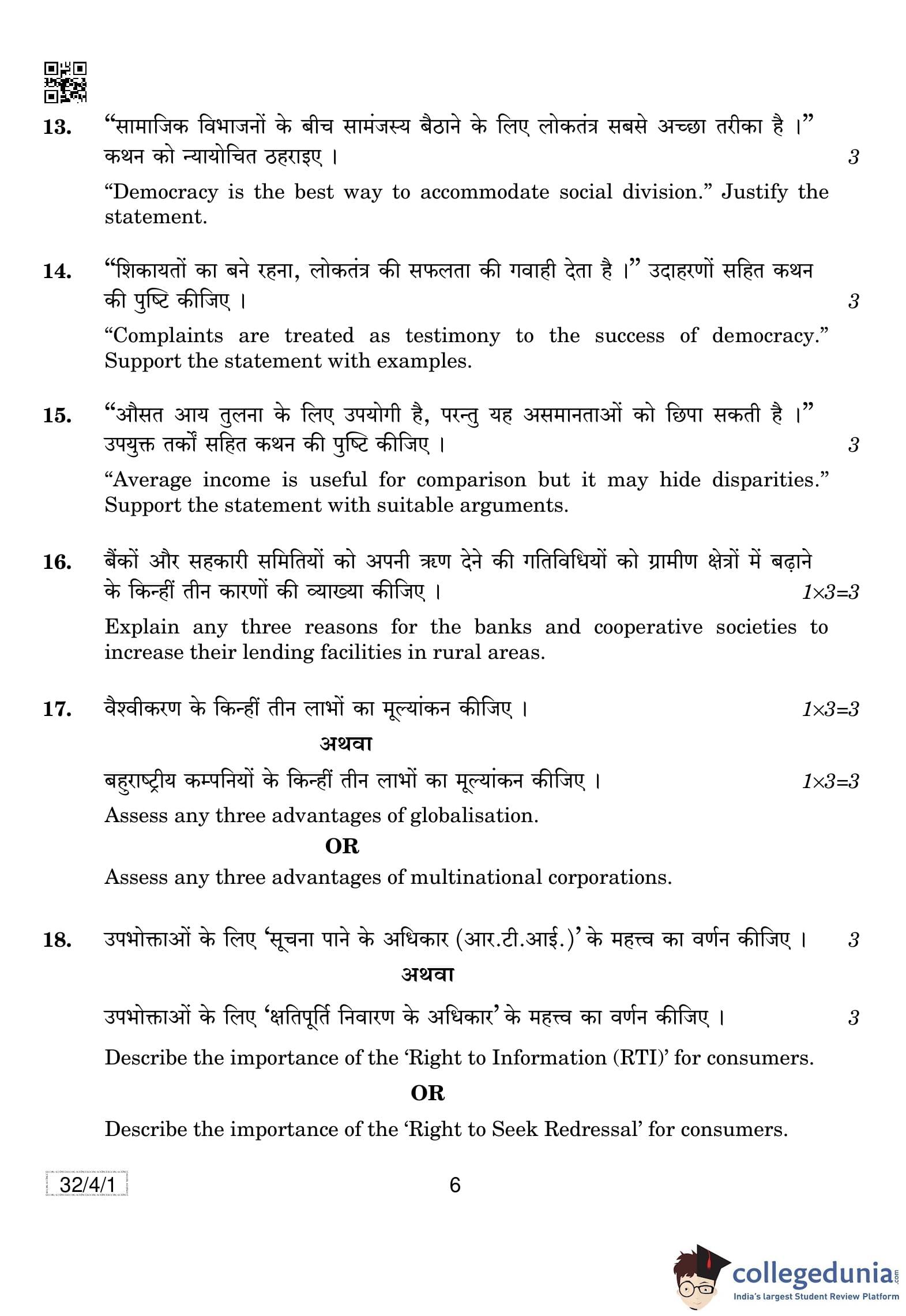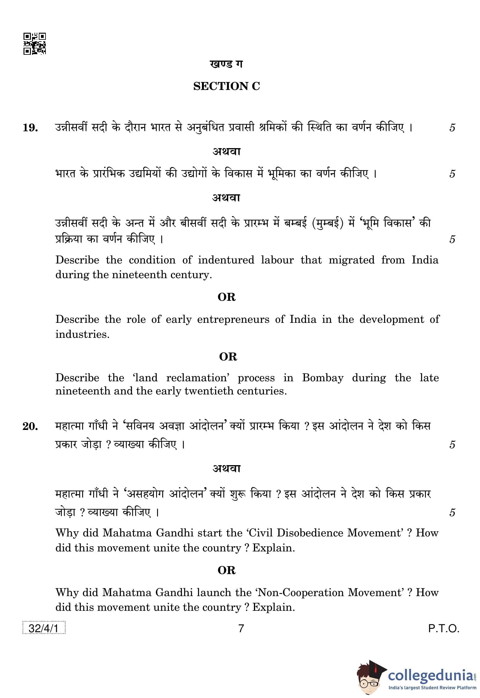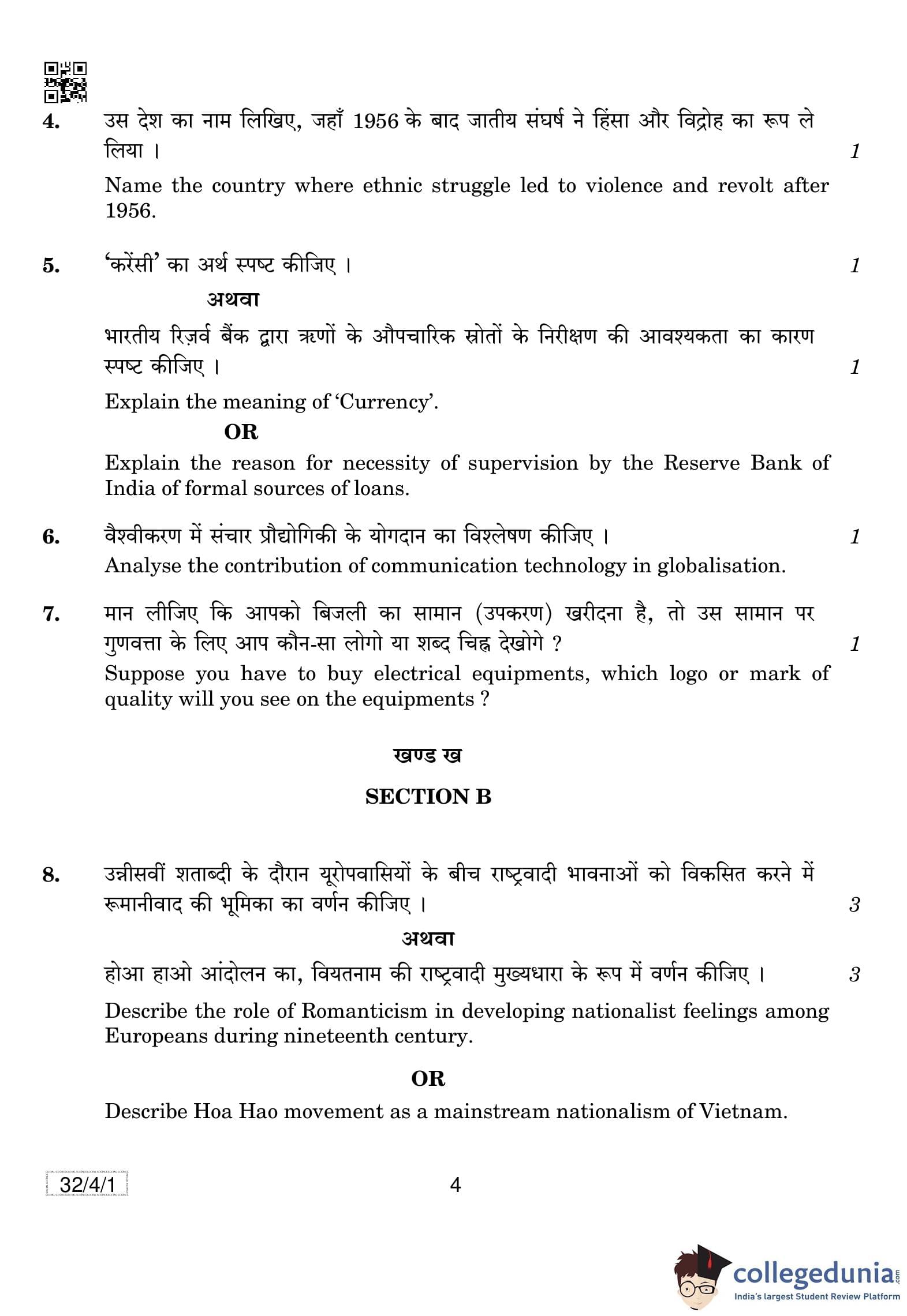CBSE Class 10 Social Science Set 1 - 32/4/1 Question Paper 2019 with Answer Key (March 29)