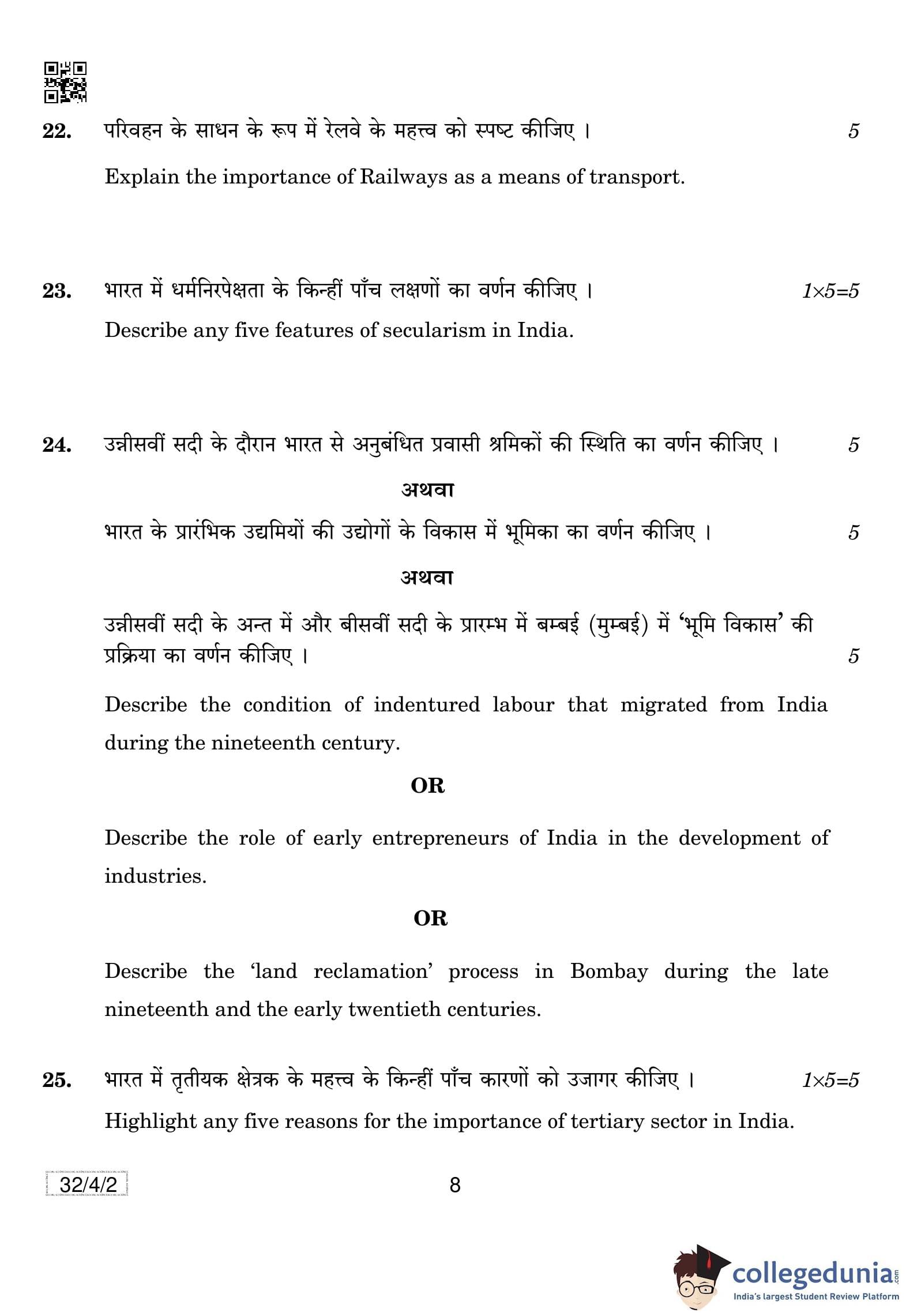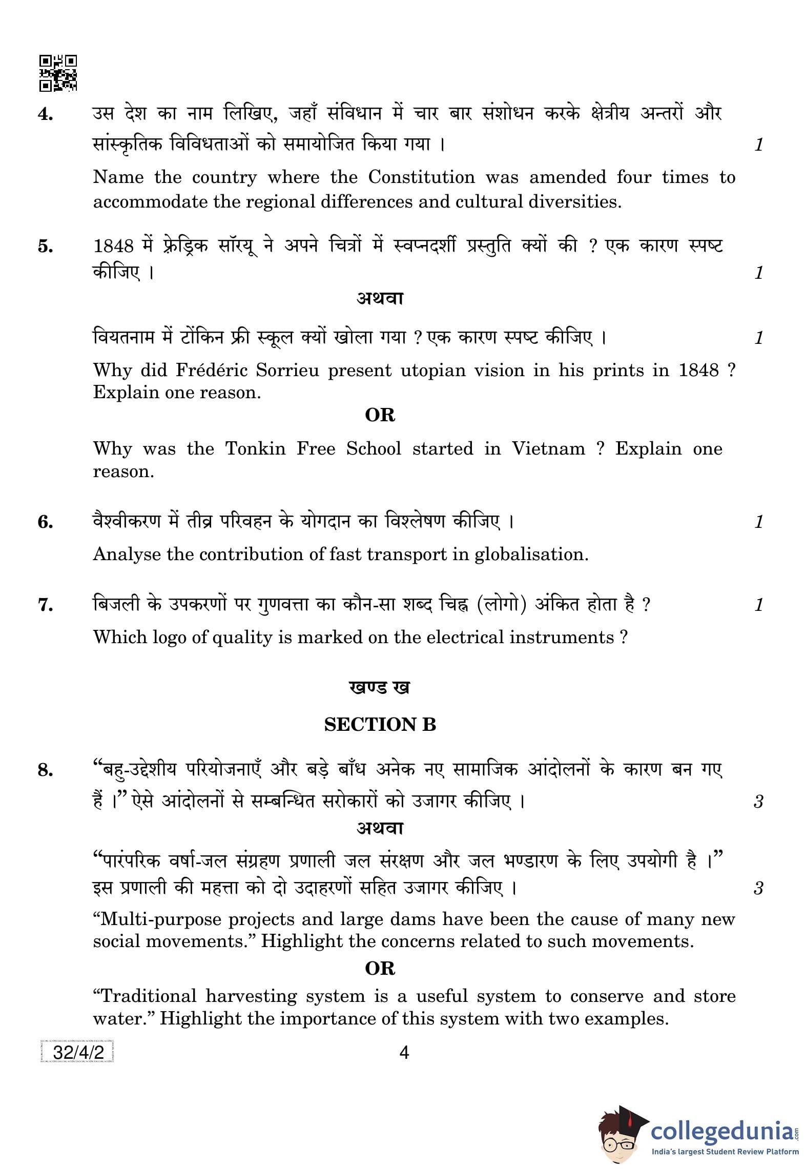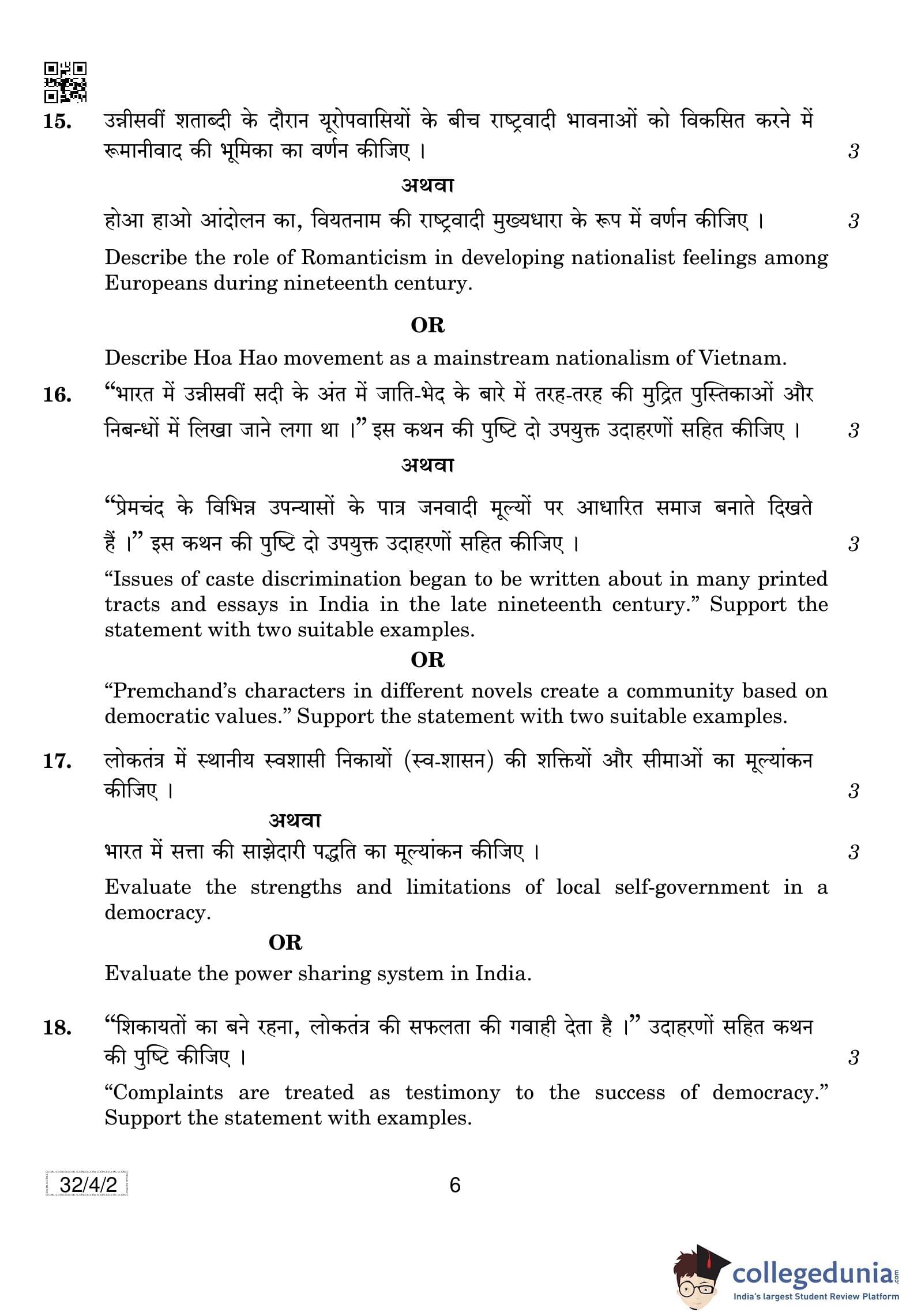 CBSE Class 10 Social Science Question Paper 2019 with Answer Key Set 2 - 32/4/2 is available for download. The exam was conducted by the Central Board of Secondary Education on March 29, 2019 in the Morning Session 10:30 AM to 1:30 PM. The medium of paper was English and Hindi. The question paper comprised a total of 26 questions divided among 4 sections.