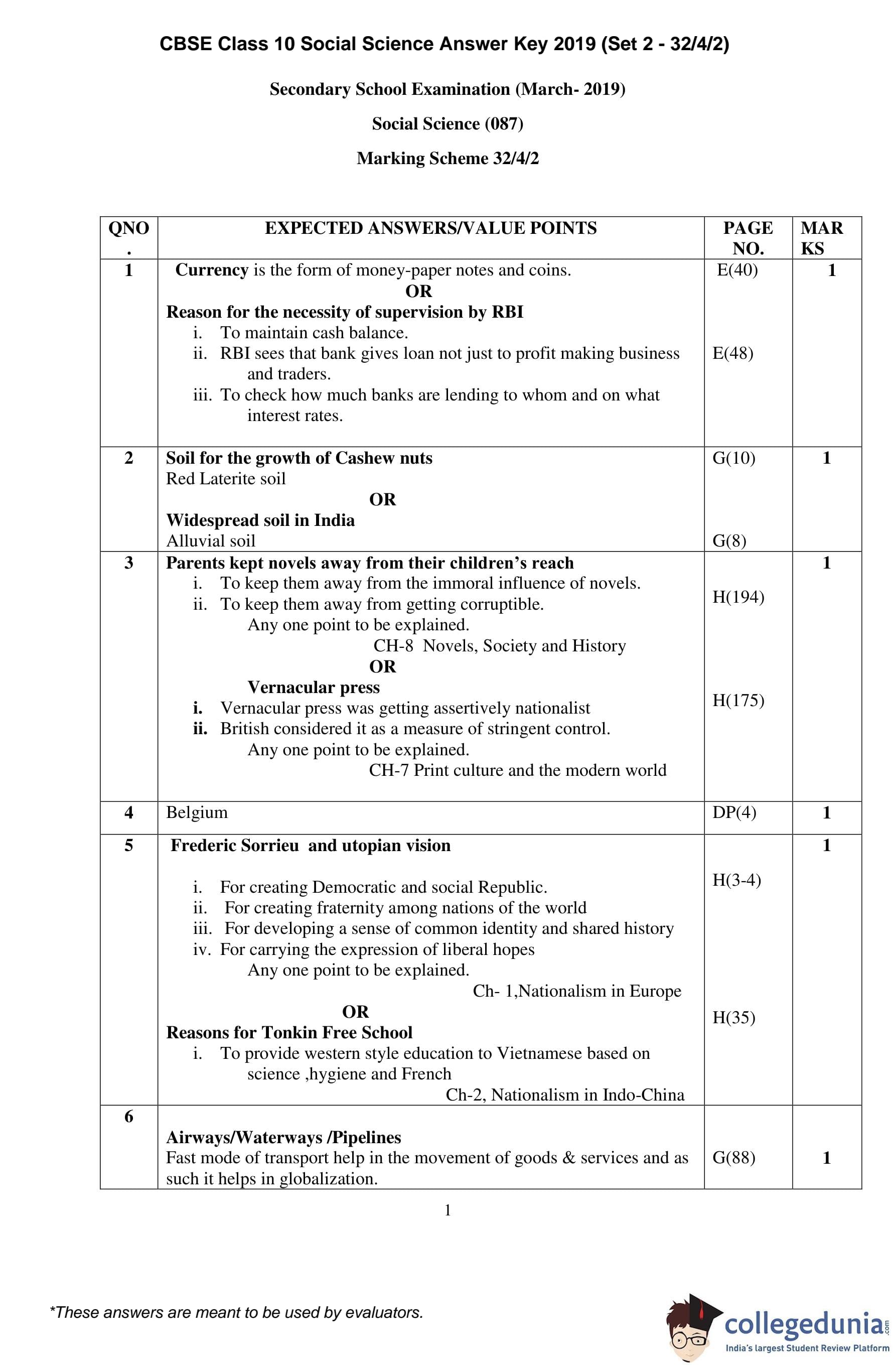 | CBSE Class 10 Social Science Question Paper 2019 PDF | CBSE Class 10 Social Science Answer Key 2019 PDF | Detailed Solutions |