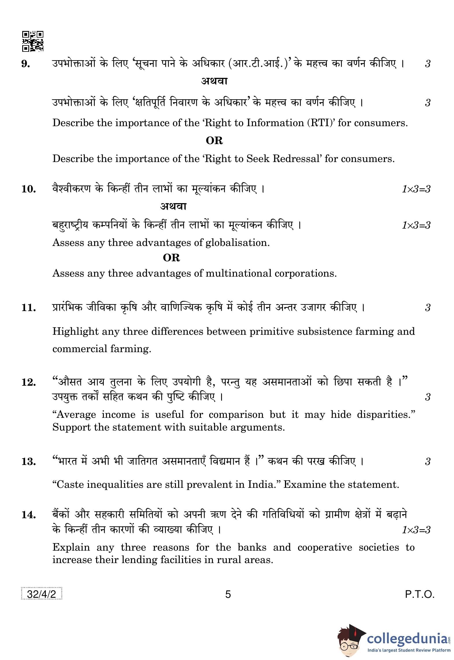 CBSE Class 10 Social Science Set 2 - 32/4/2 Question Paper 2019 with Answer Key (March 29)