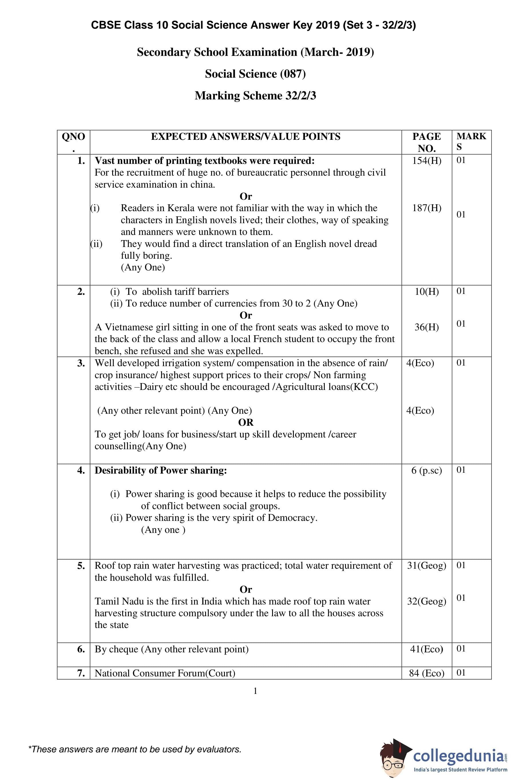 | CBSE Class 10 Social Science Question Paper 2019 PDF | CBSE Class 10 Social Science Answer Key 2019 PDF | Detailed Solutions |