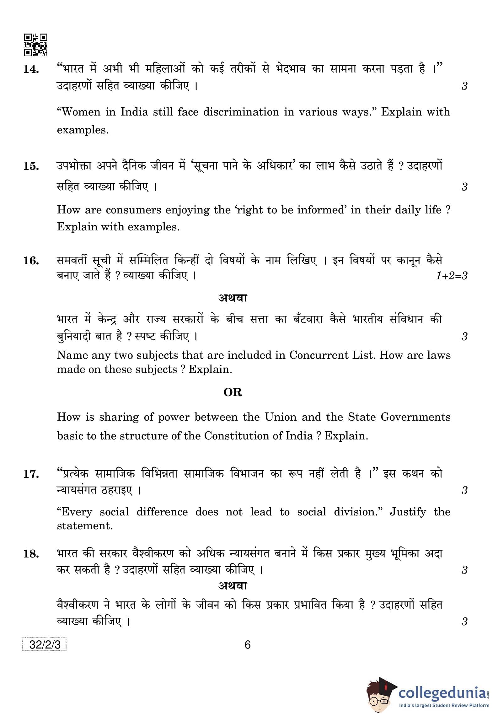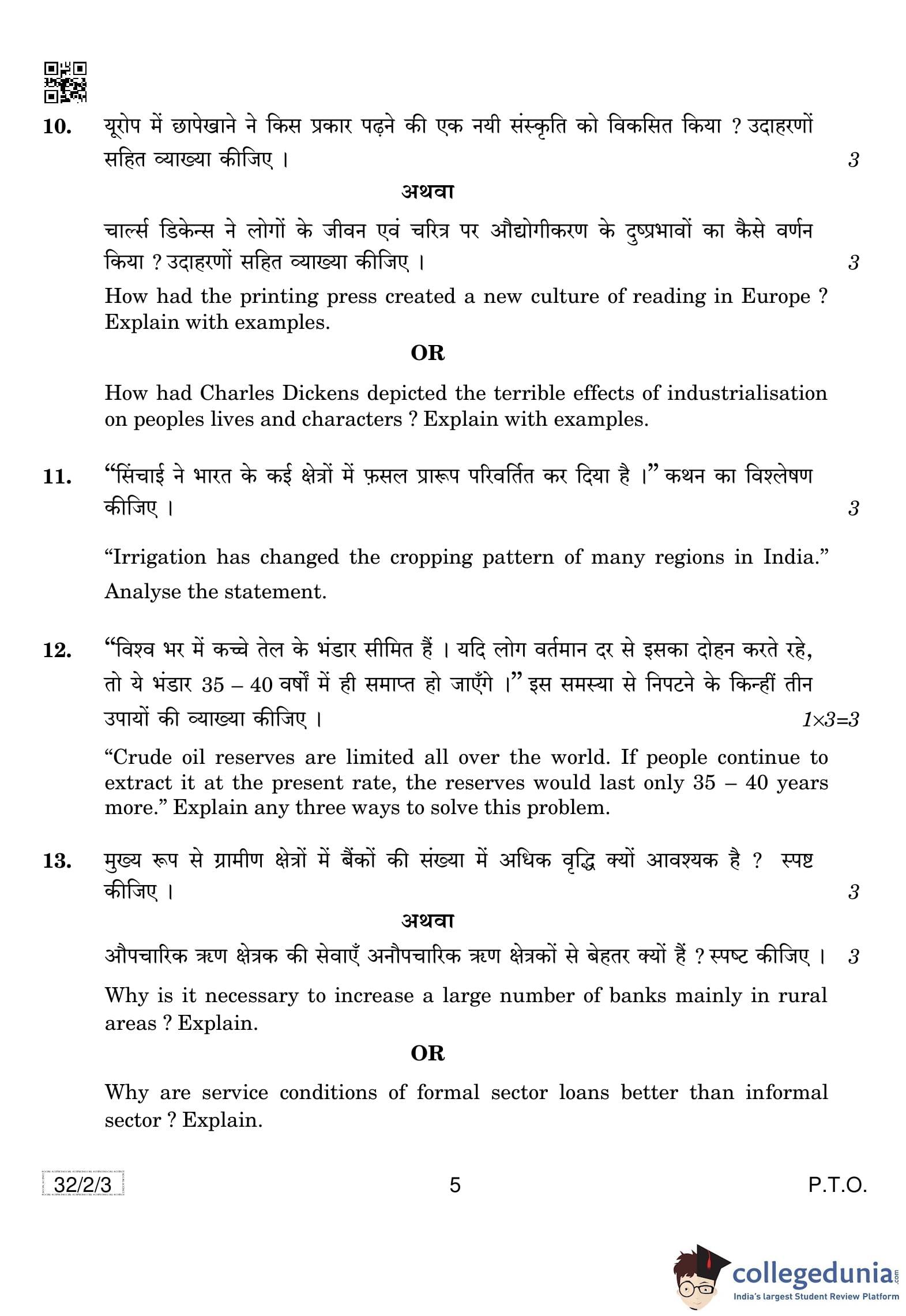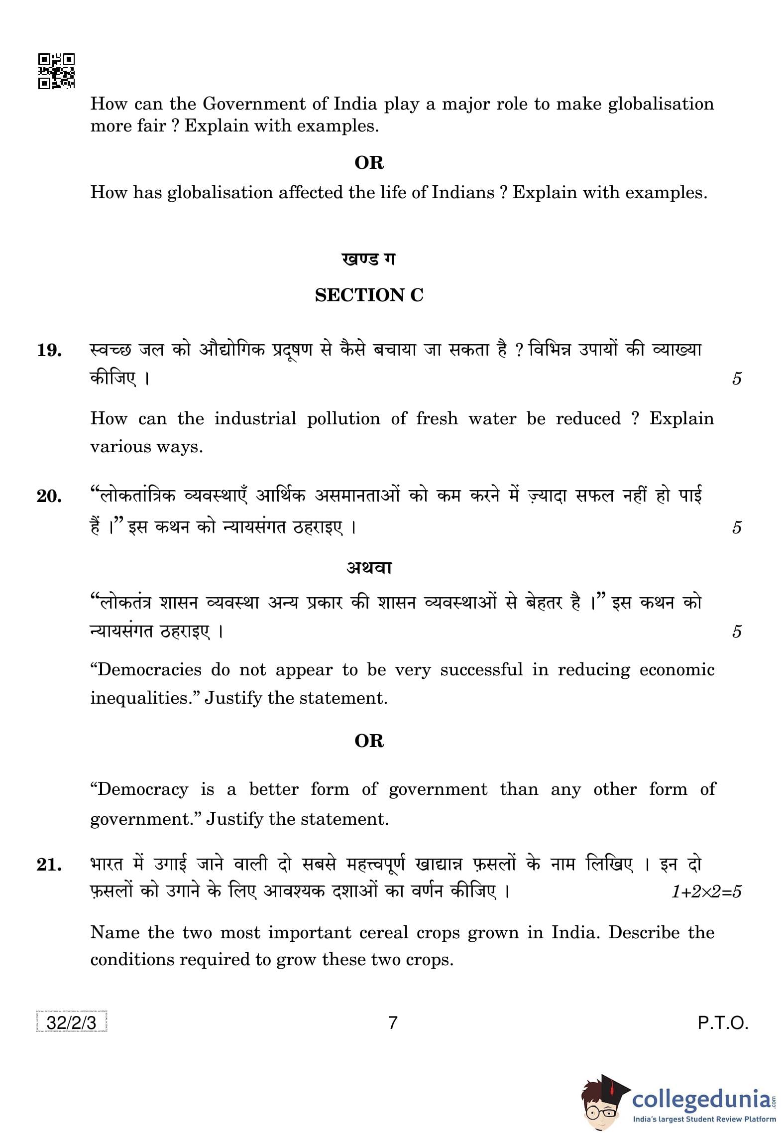 CBSE Class 10 Social Science Set 3 - 32/2/3 Question Paper 2019 with Answer Key (March 29)