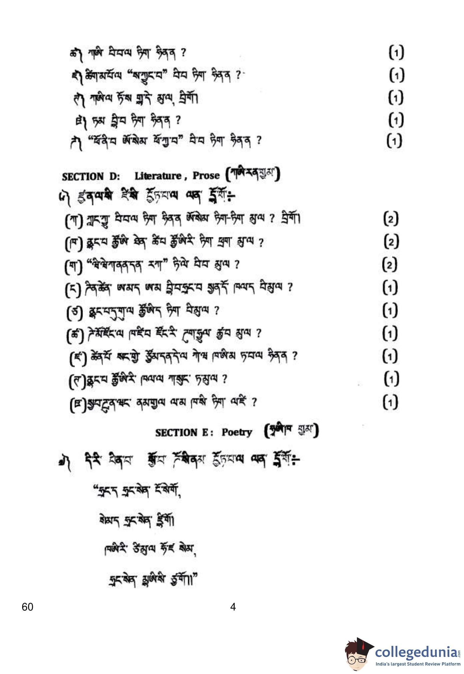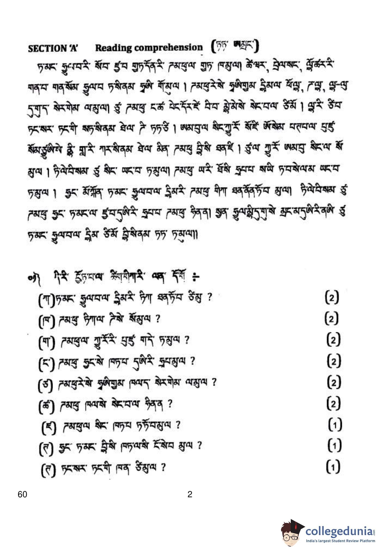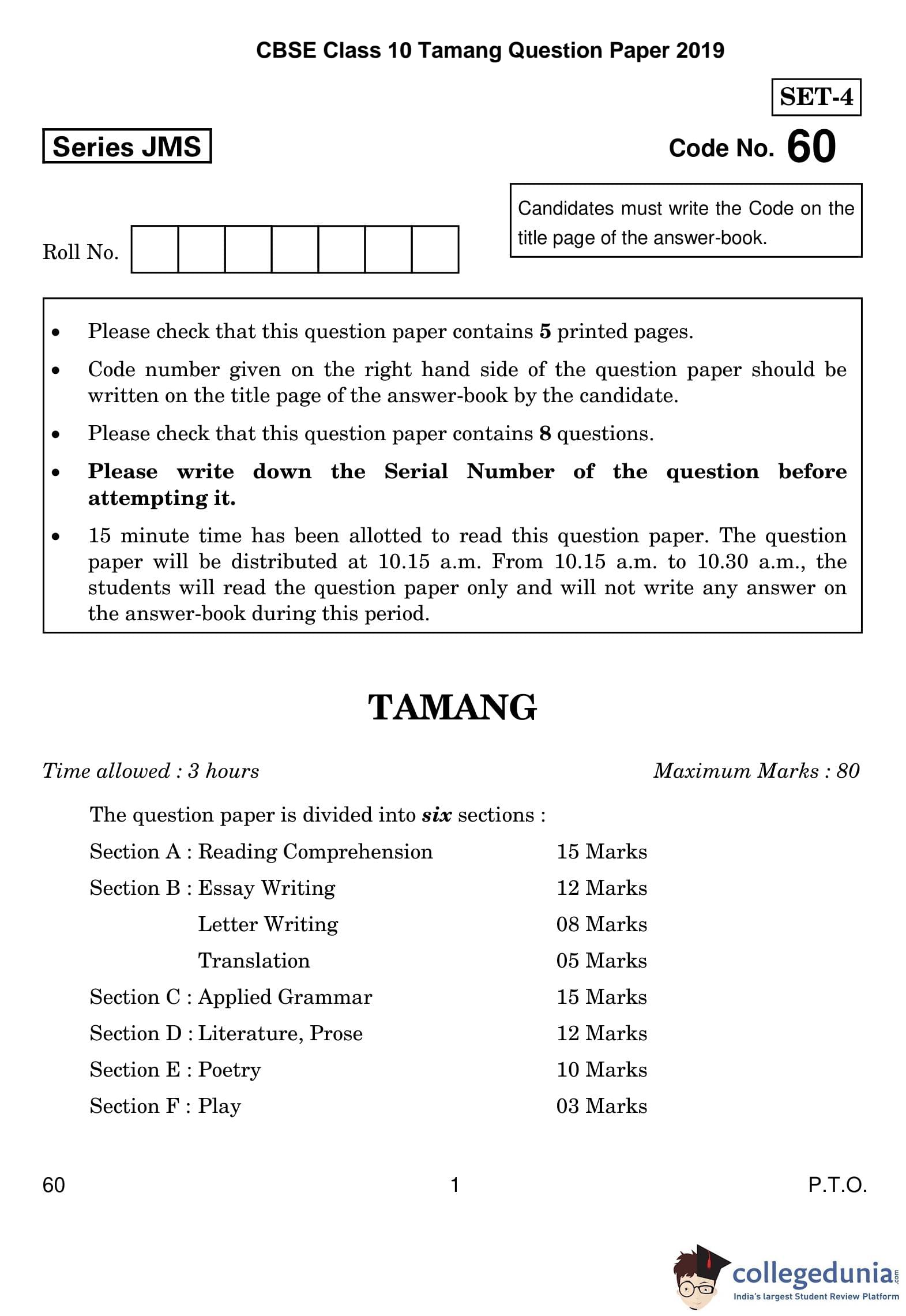 CBSE Class 10 Tamang Question Paper 2019 with Answer Key Set 4 is available for download. The exam was conducted by the Central Board of Secondary Education on March 5, 2019 in the Morning Session 10:30 AM to 1:30 PM. The medium of paper was Tamang. The question paper comprised a total of 8 questions divided among 6 sections.