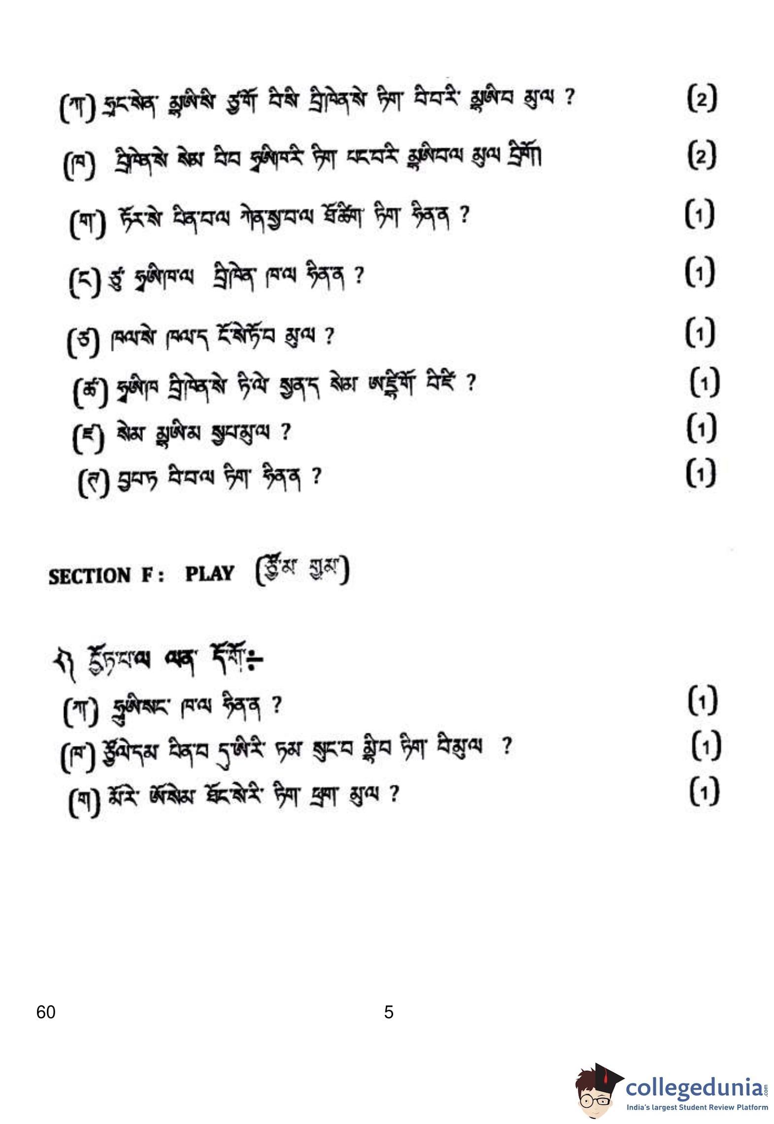 CBSE Class 10 Tamang Question Paper 2019 with Answer Key (March 5)