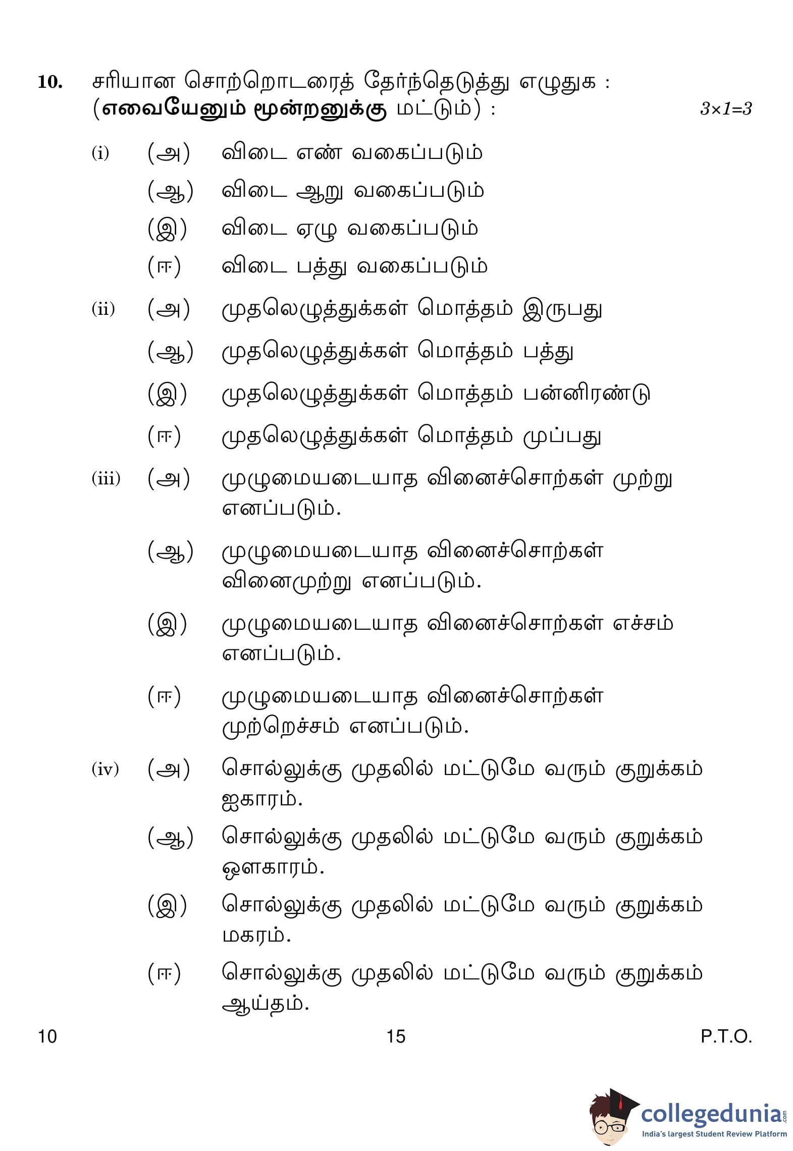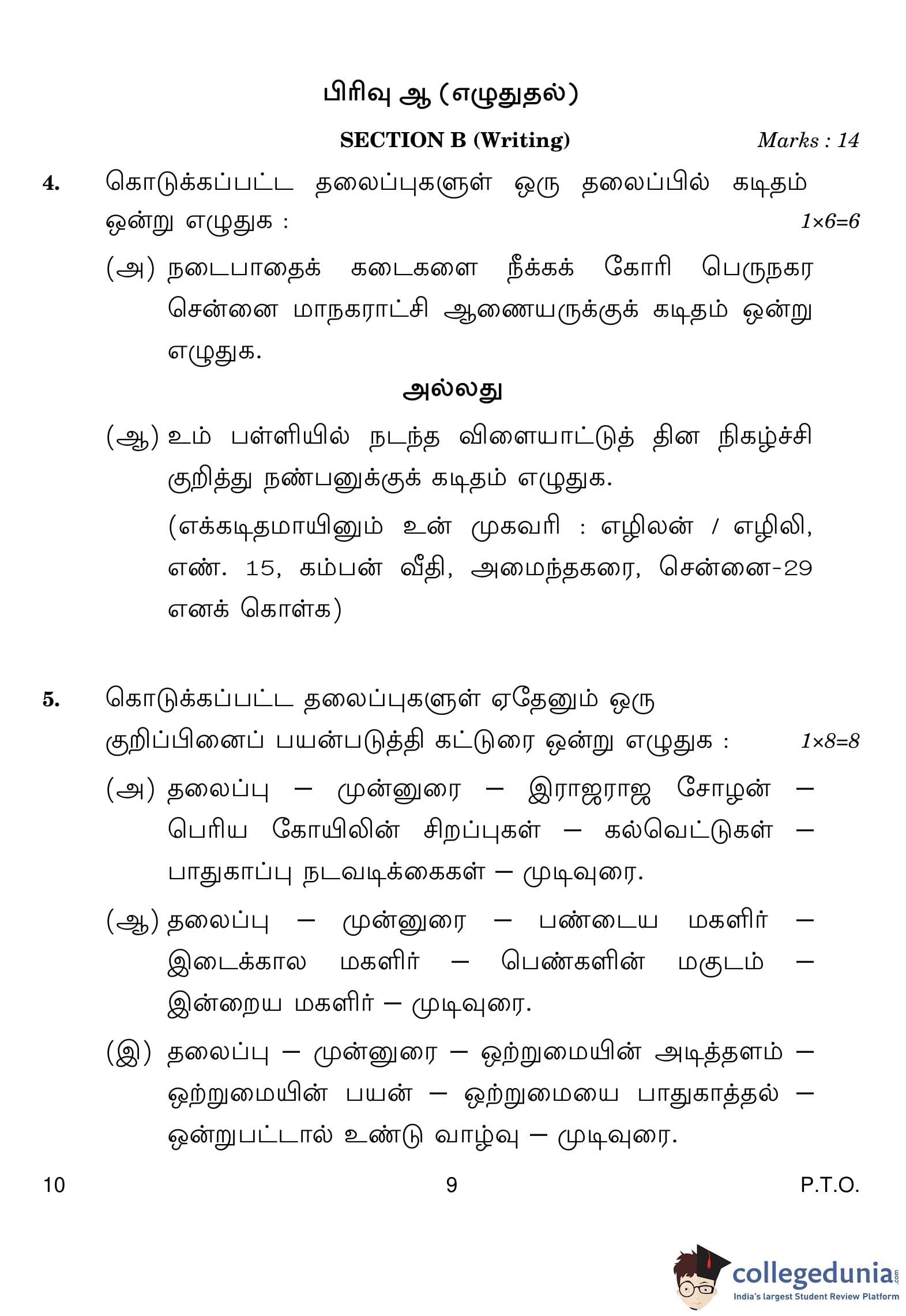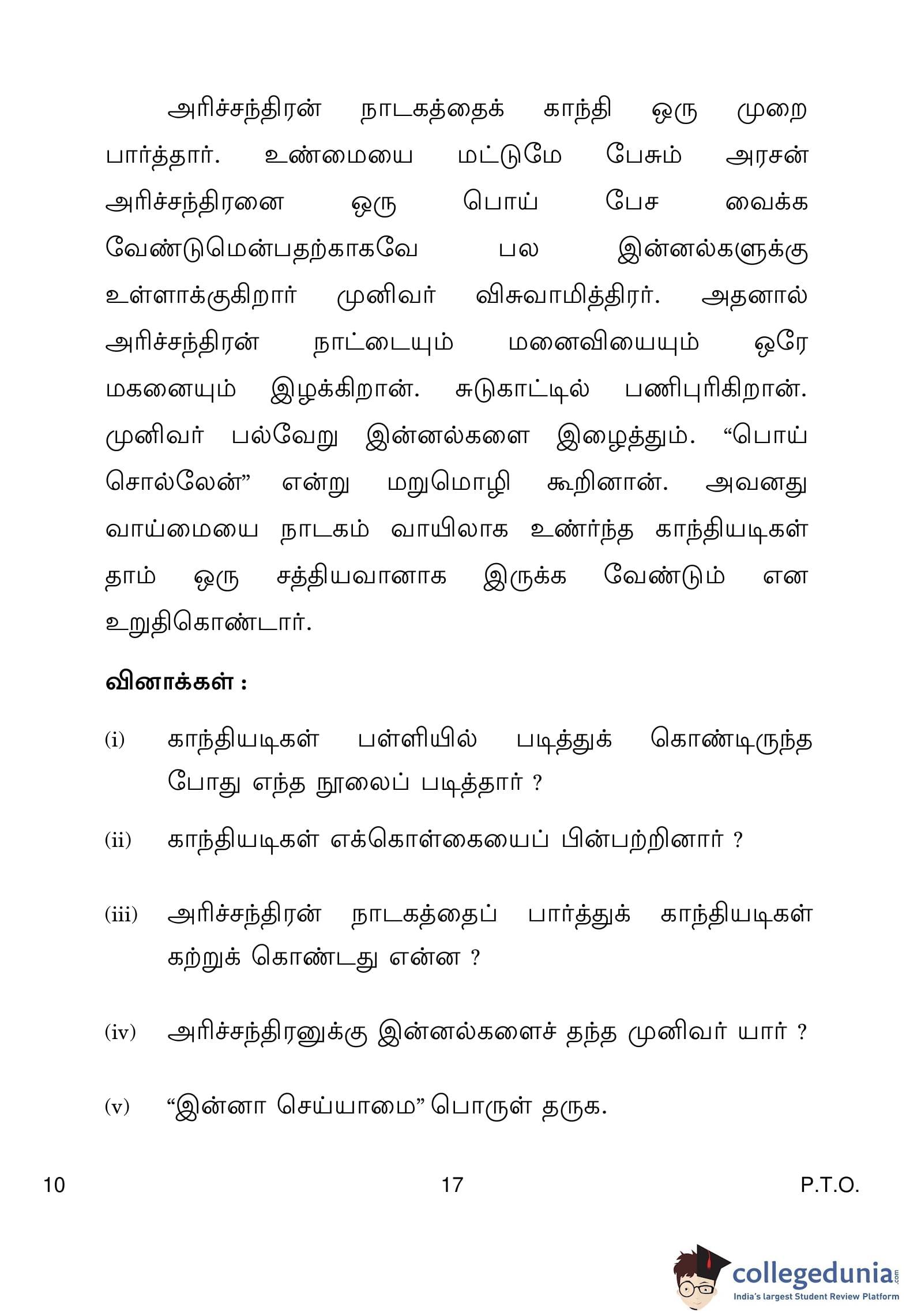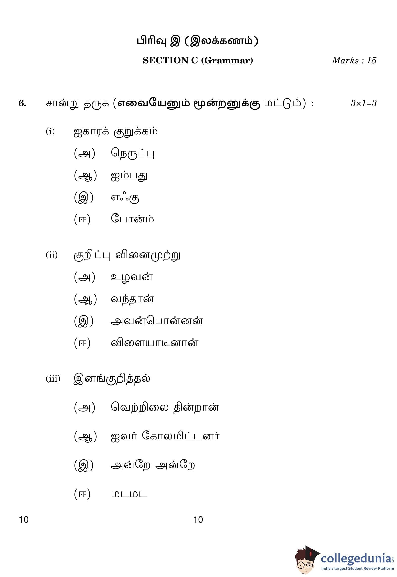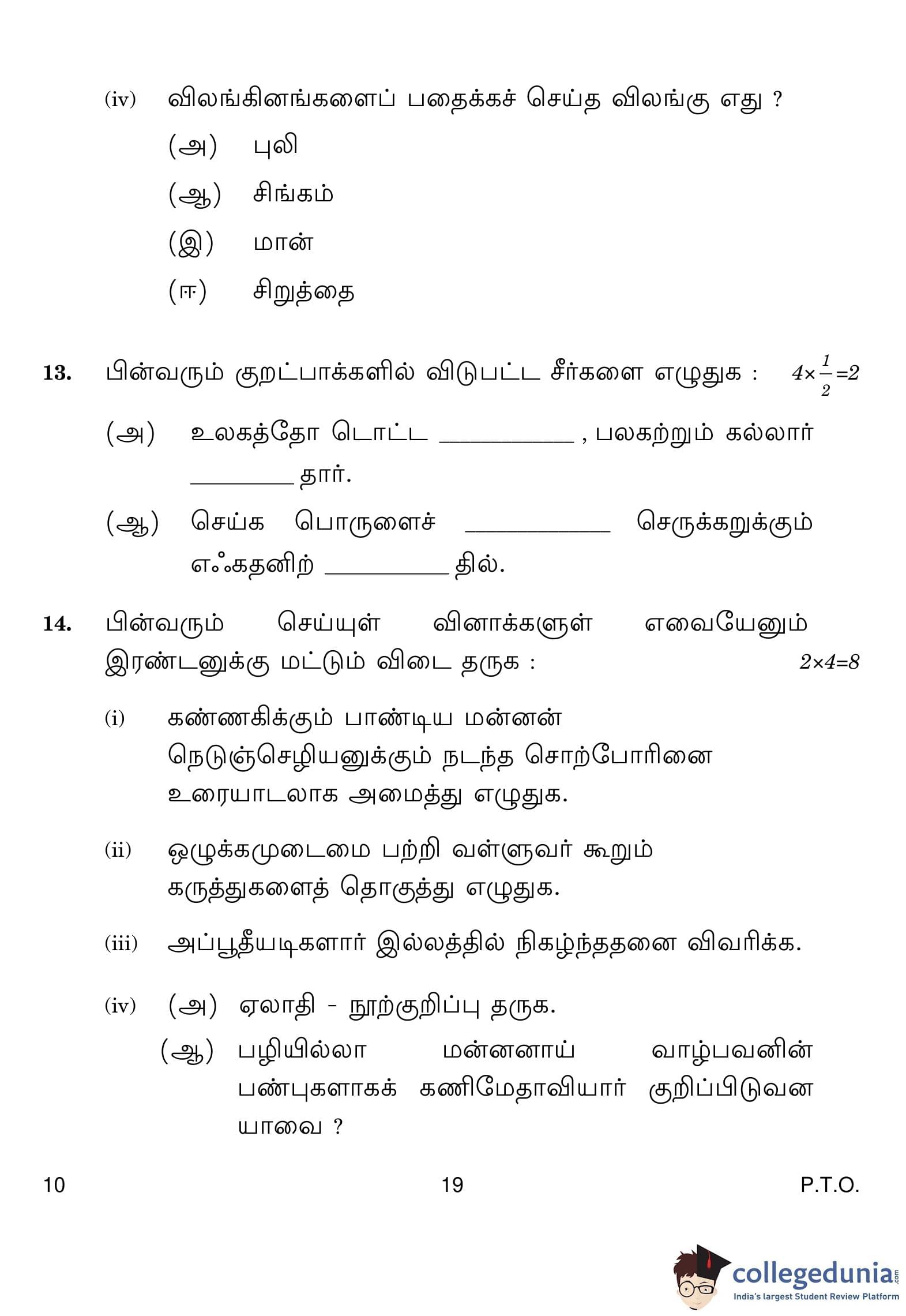 CBSE Class 10 Tamil Question Paper 2019 with Answer Key (March 5)