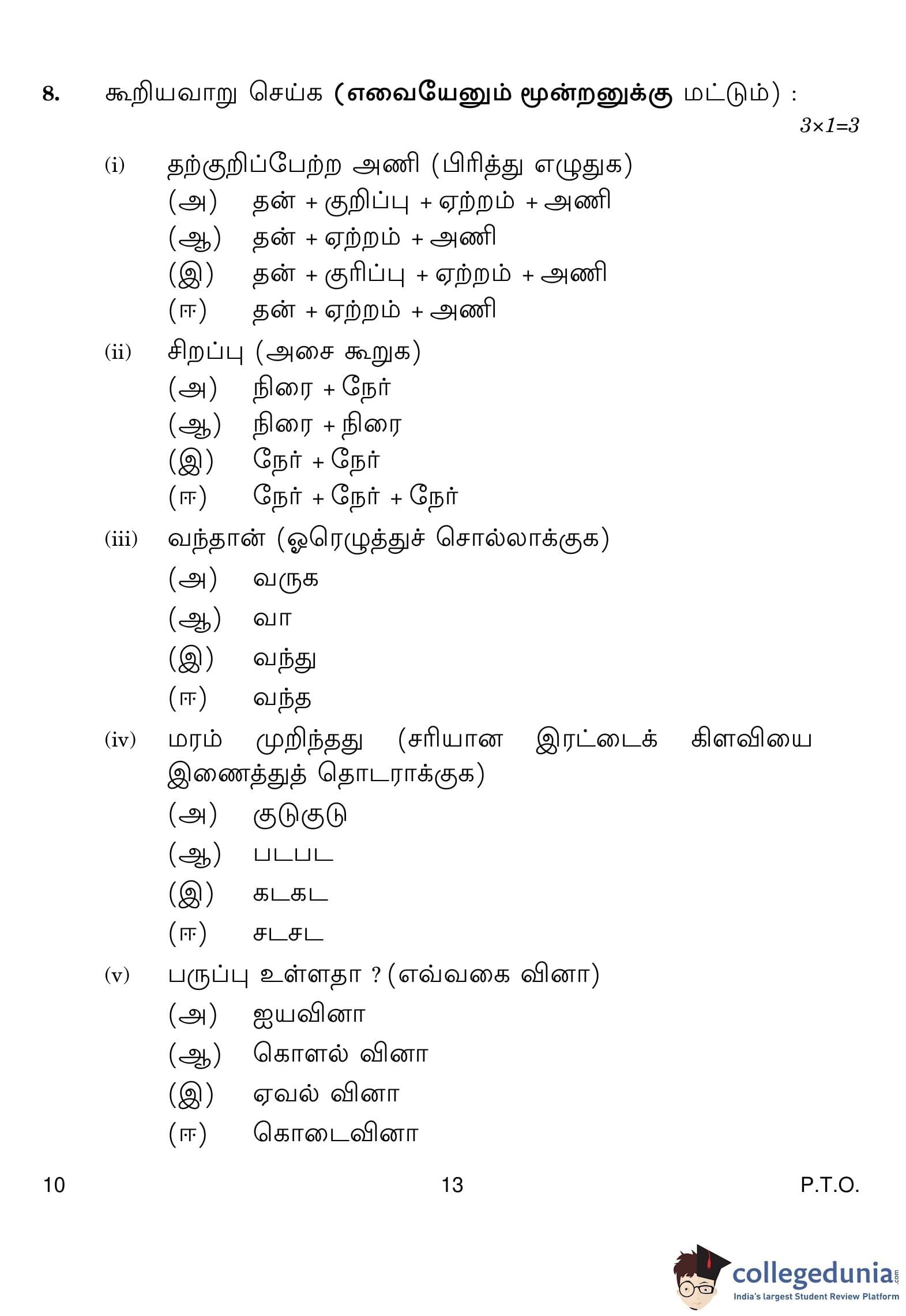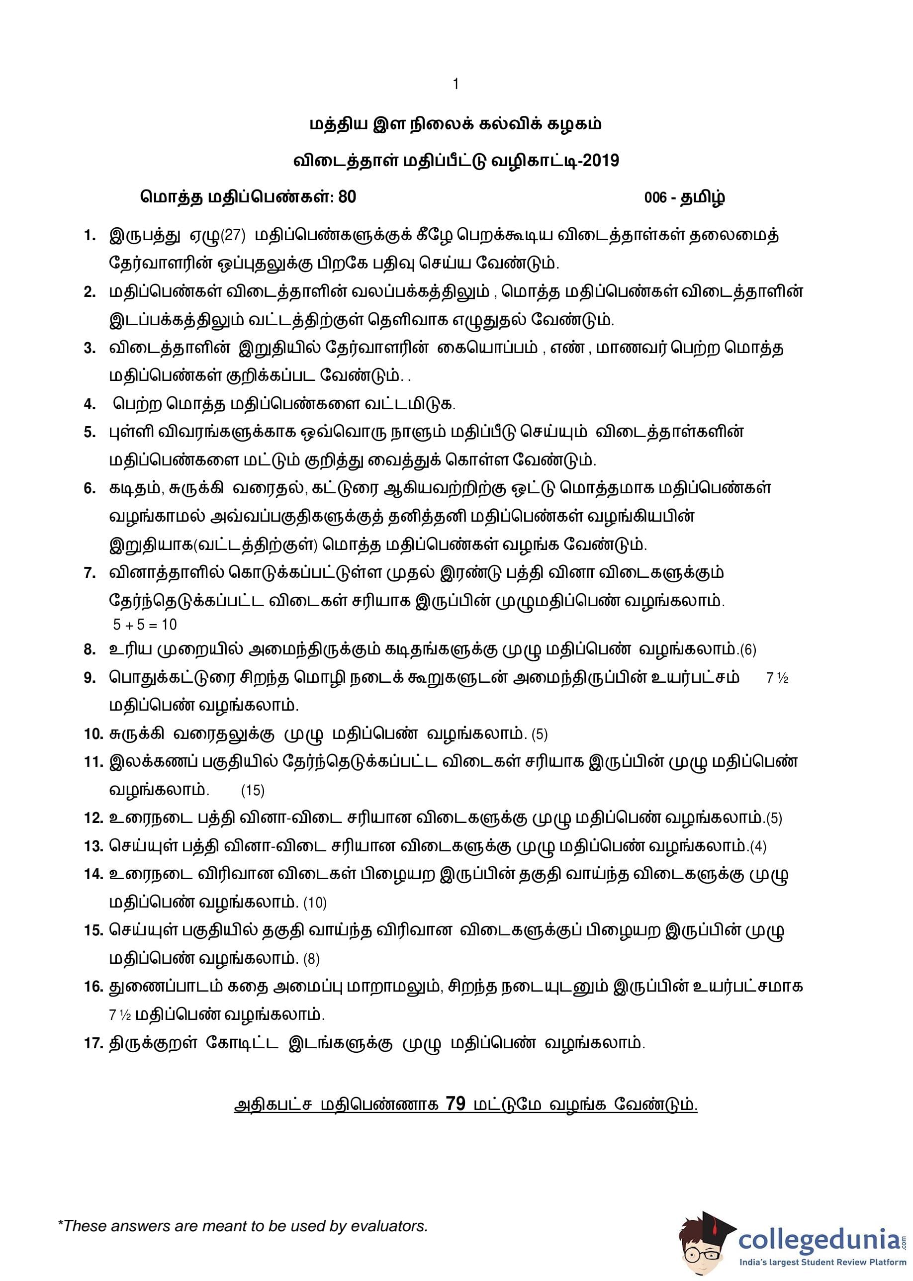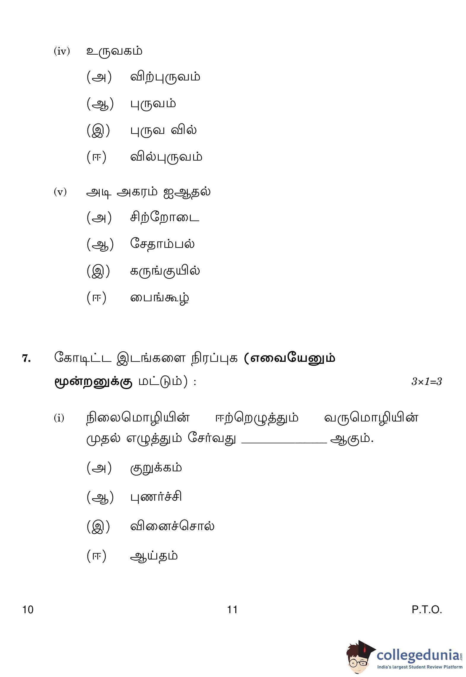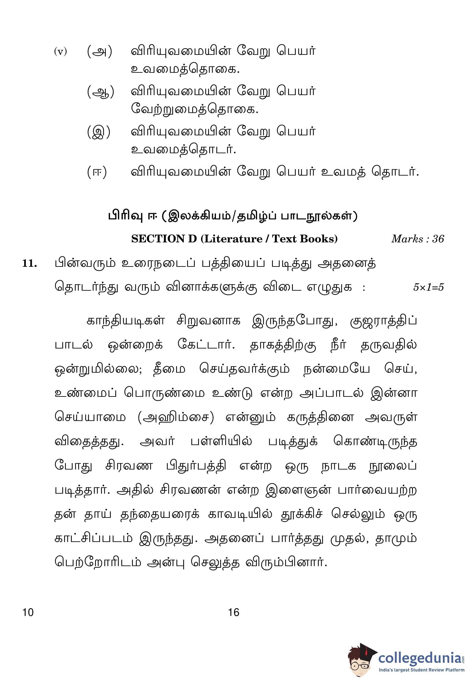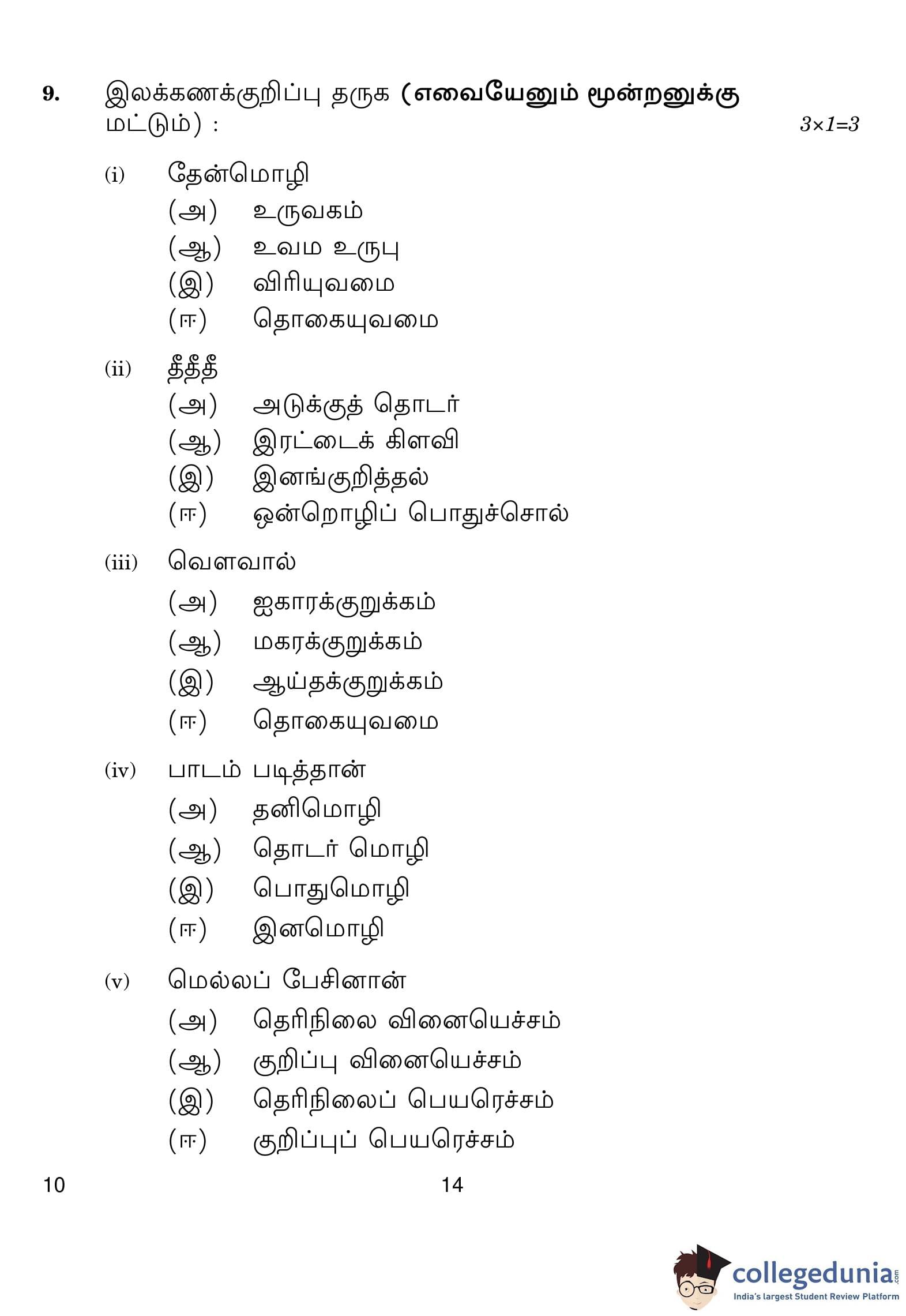 CBSE Class 10 Tamil Question Paper 2019 with Answer Key (March 5)