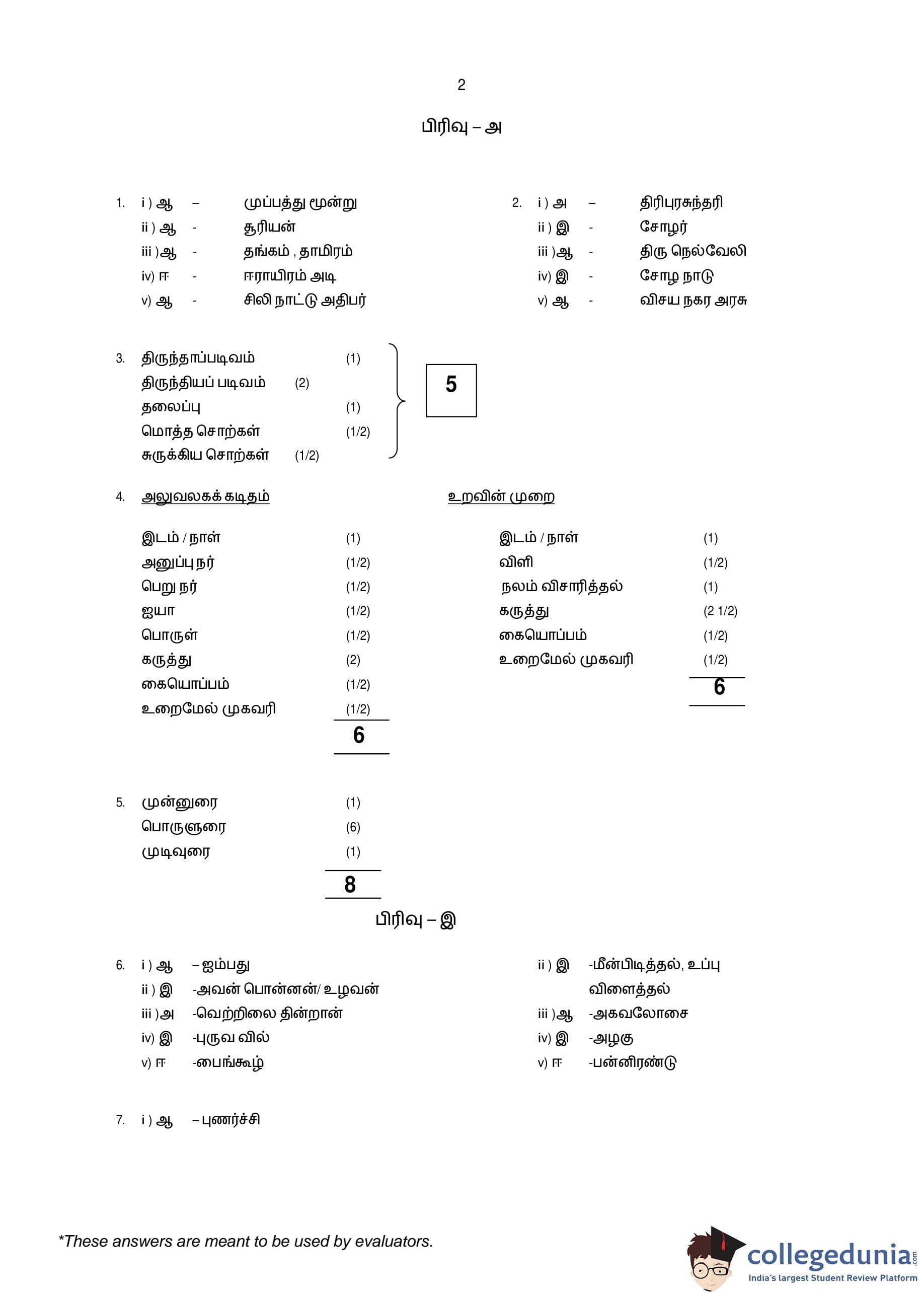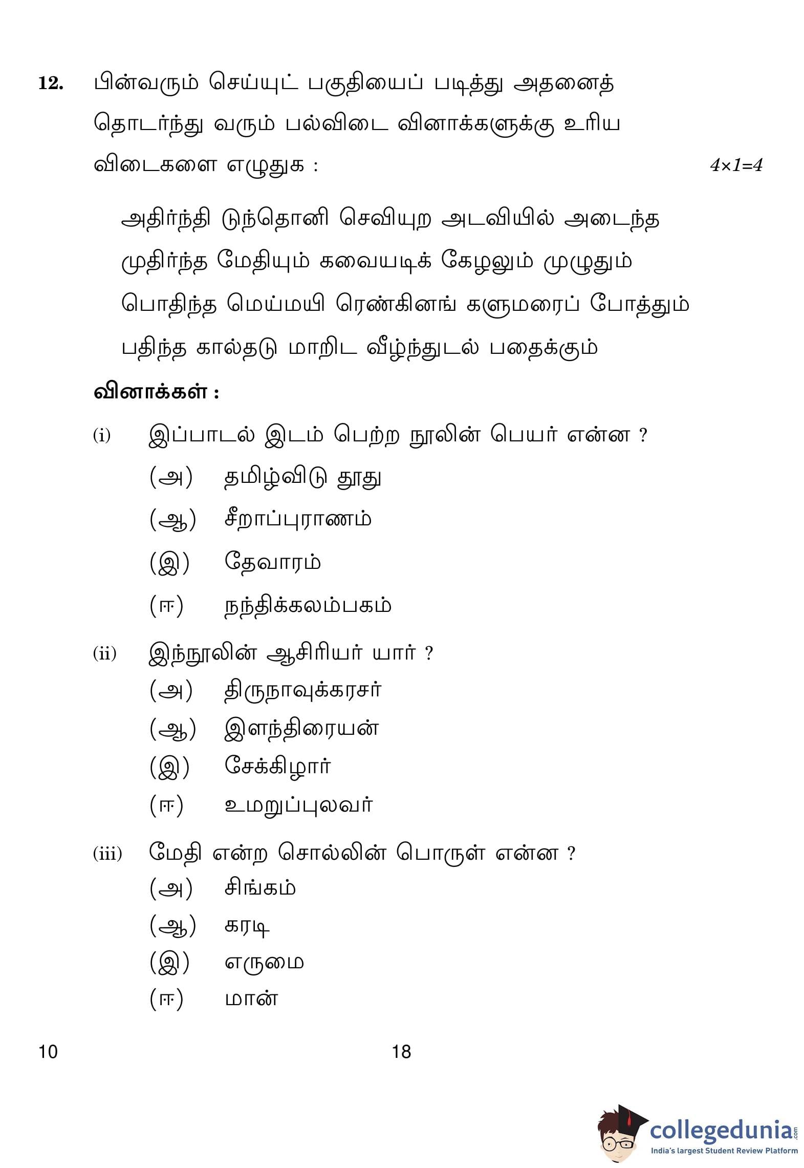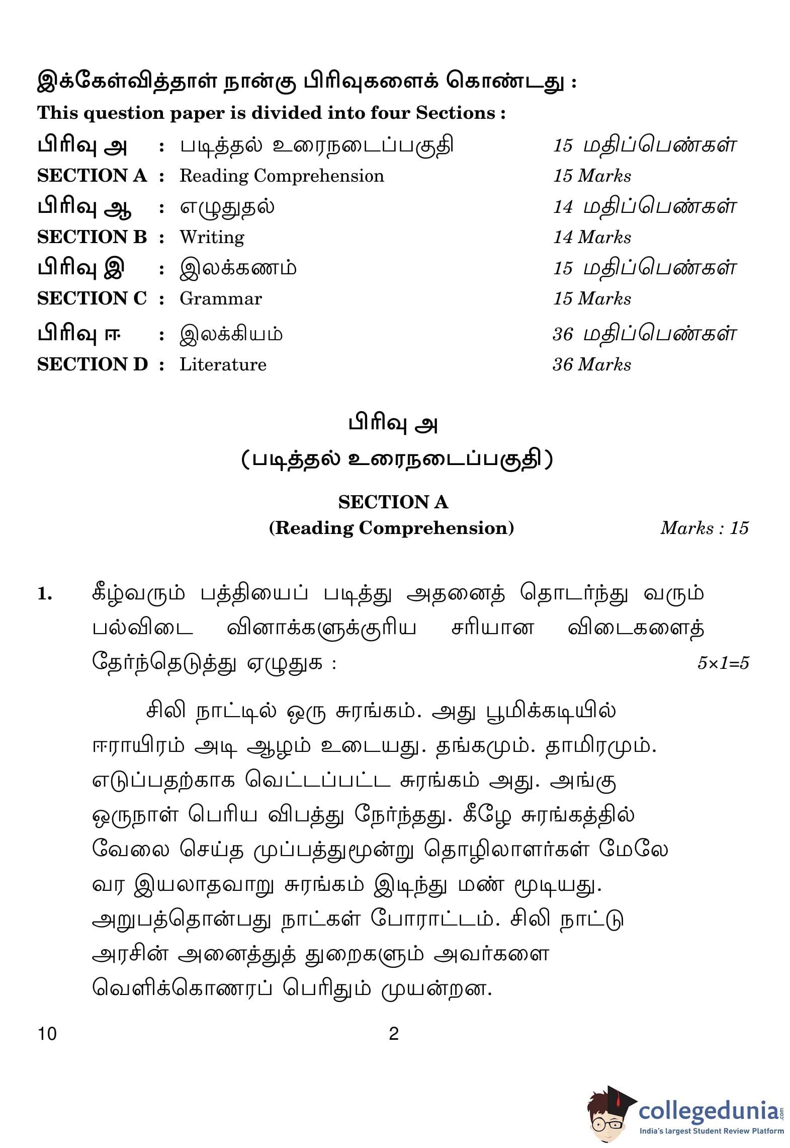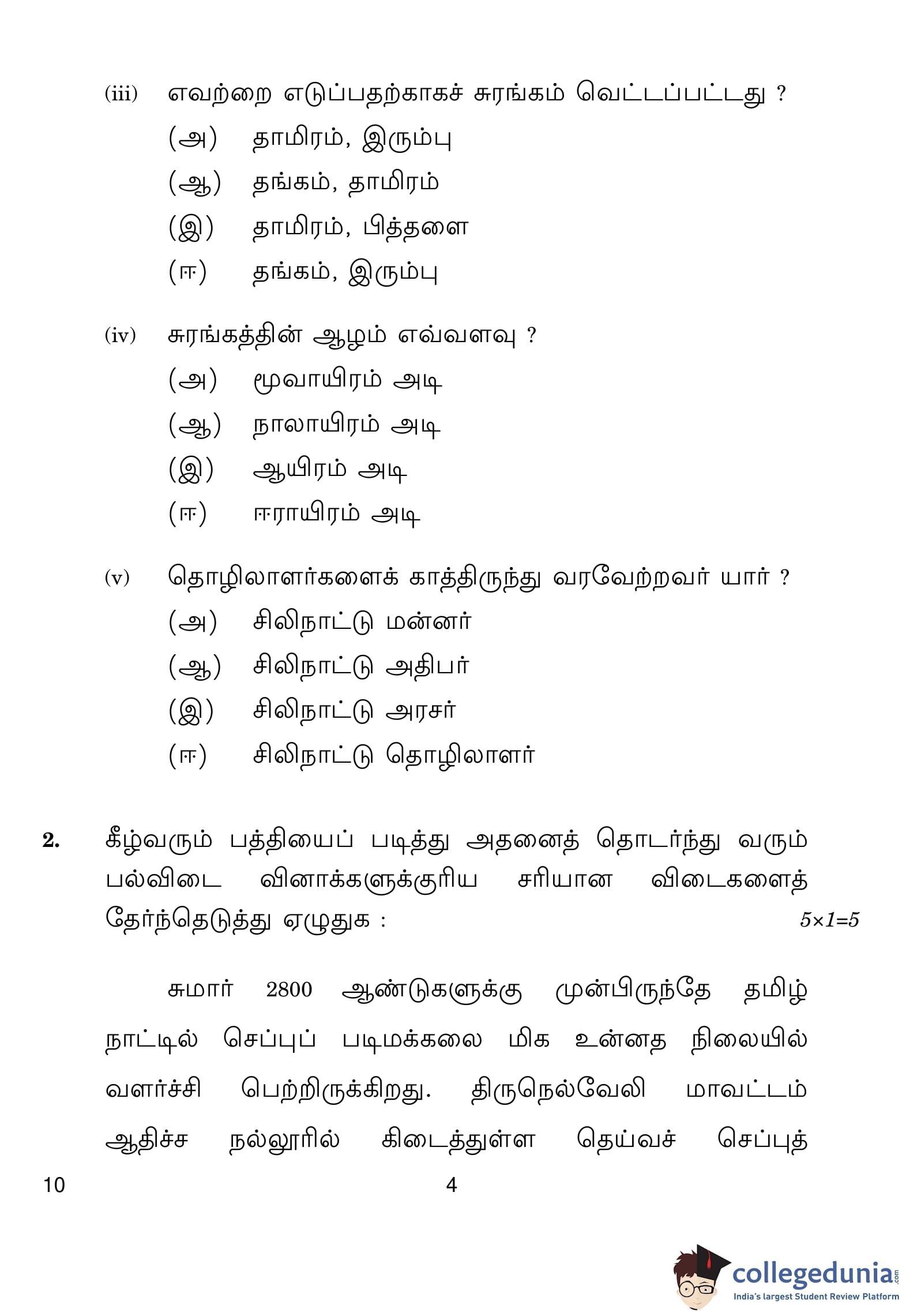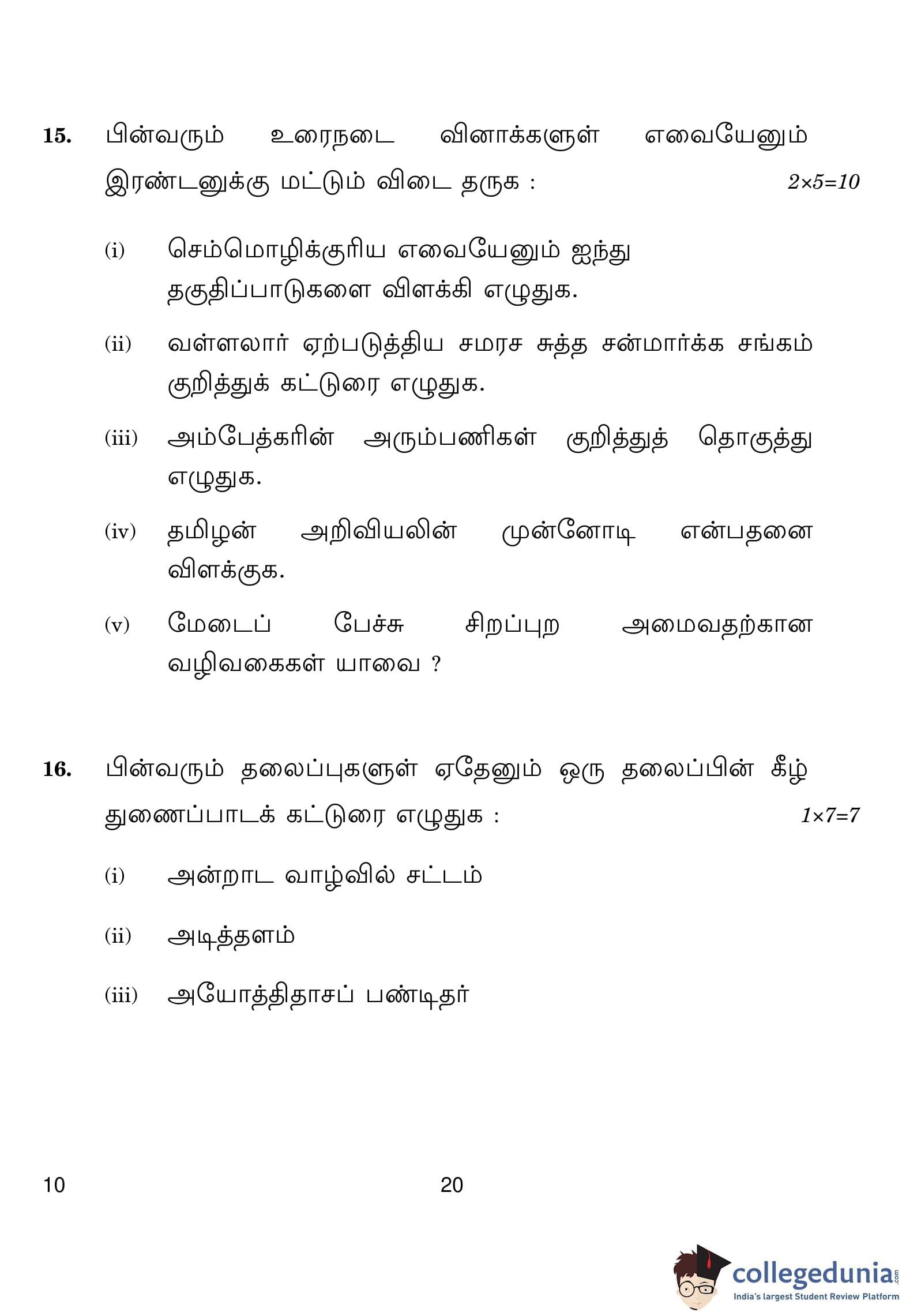 CBSE Class 10 Tamil Question Paper 2019 with Answer Key (March 5)