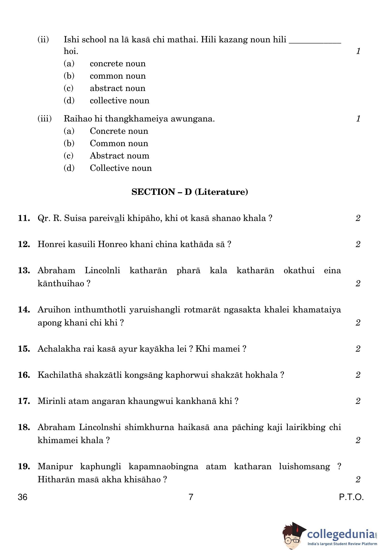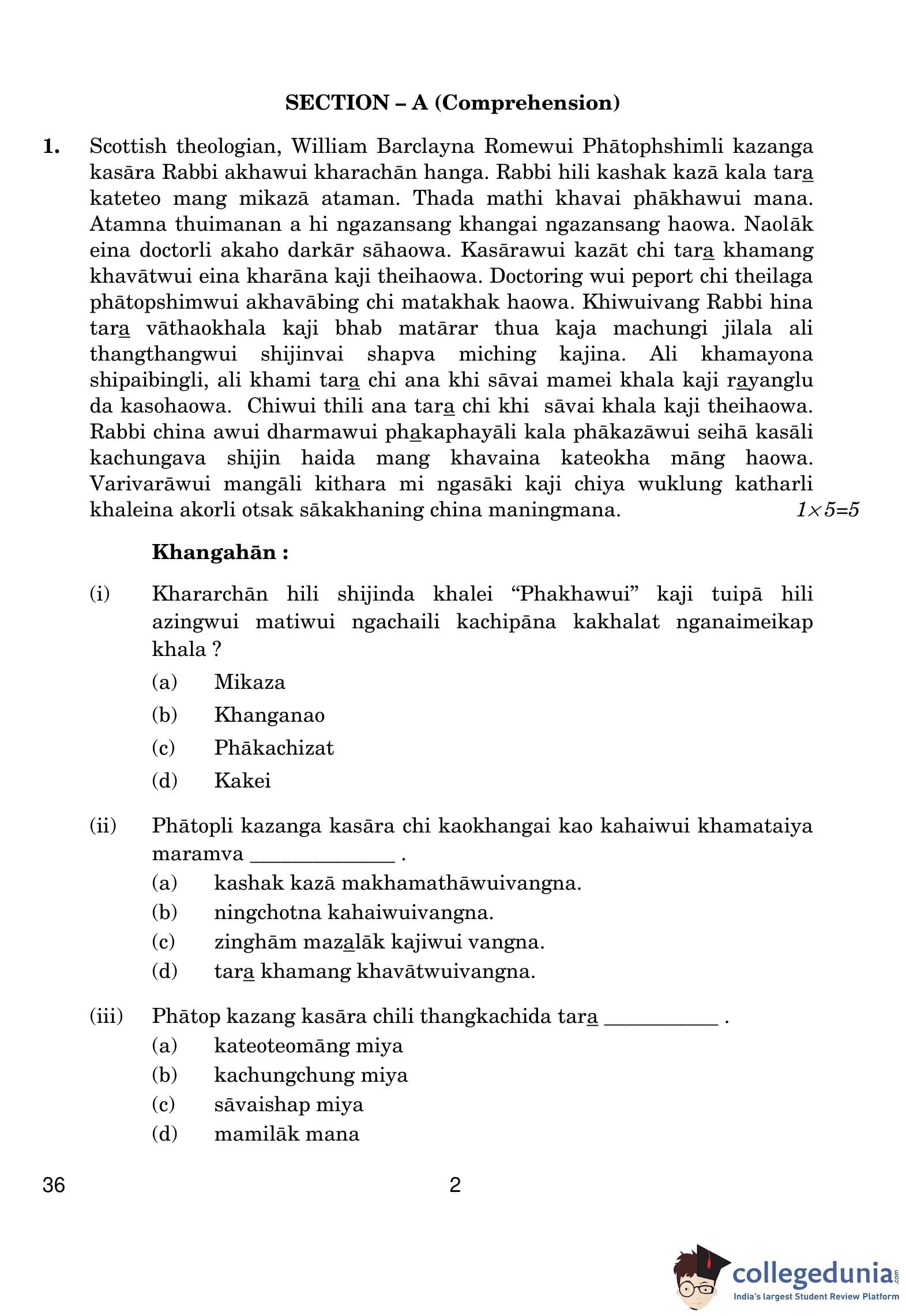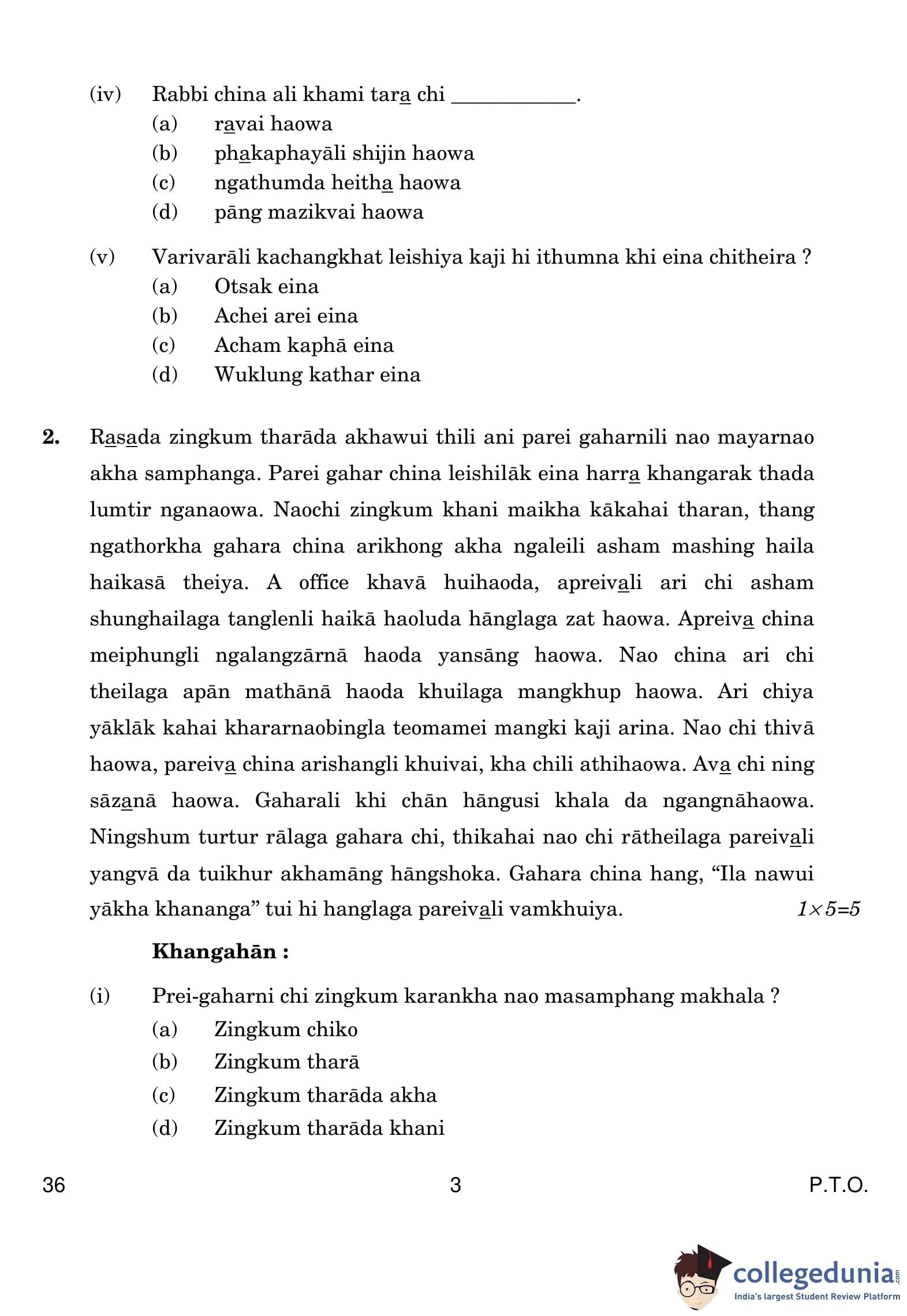 CBSE Class 10 Tangkhul Question Paper 2019 with Answer Key (March 5)