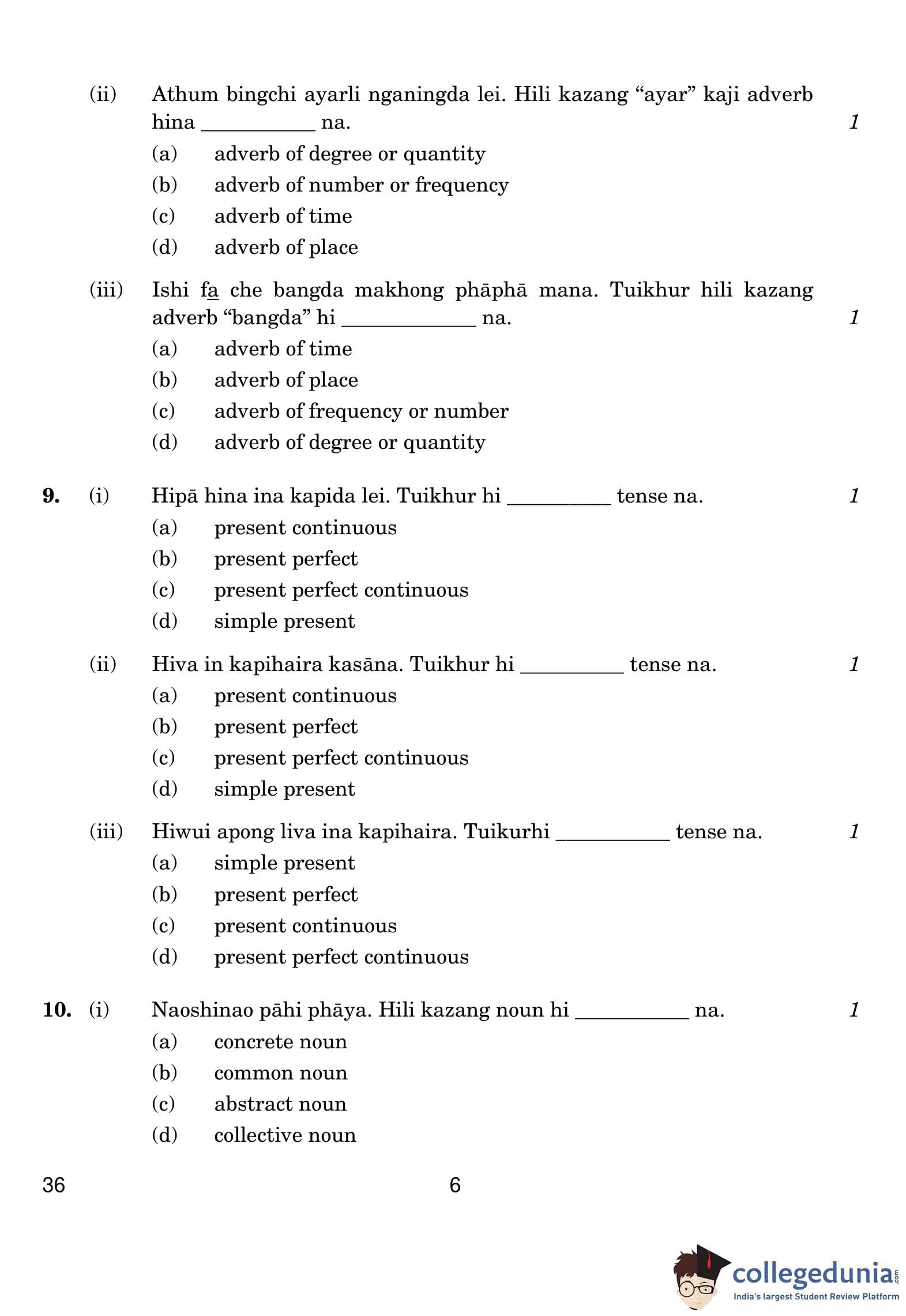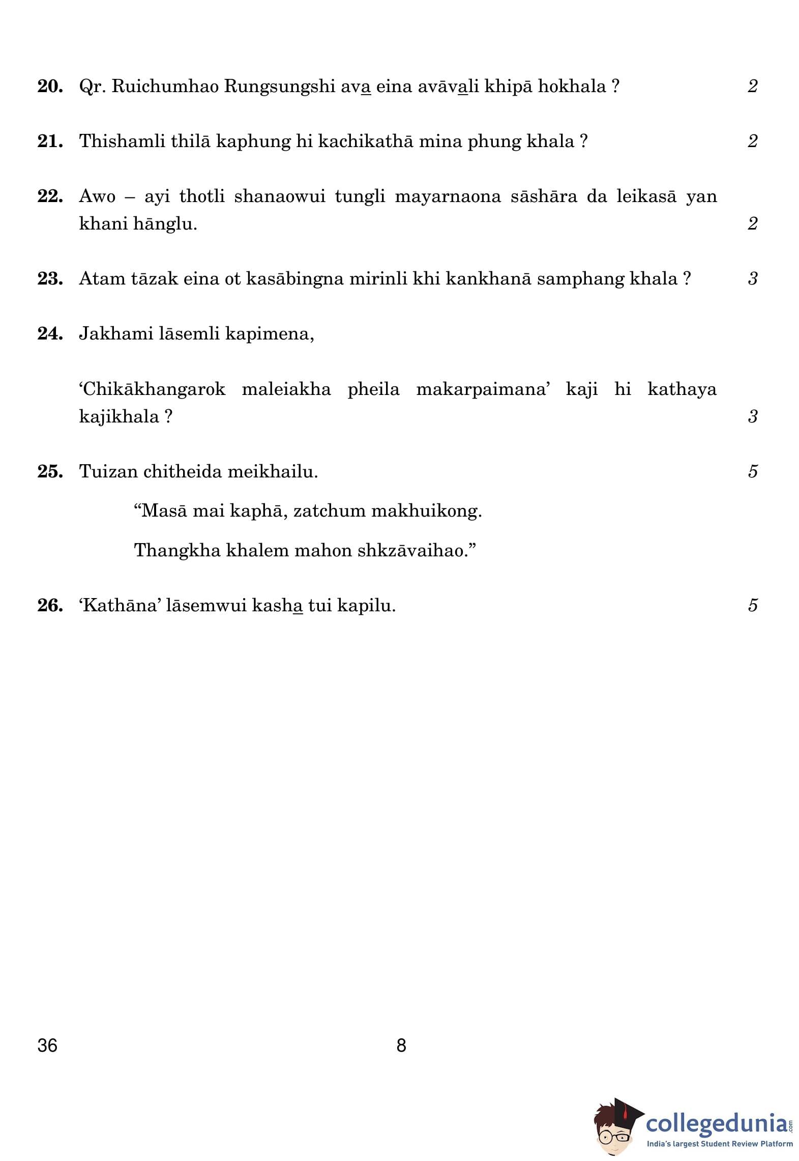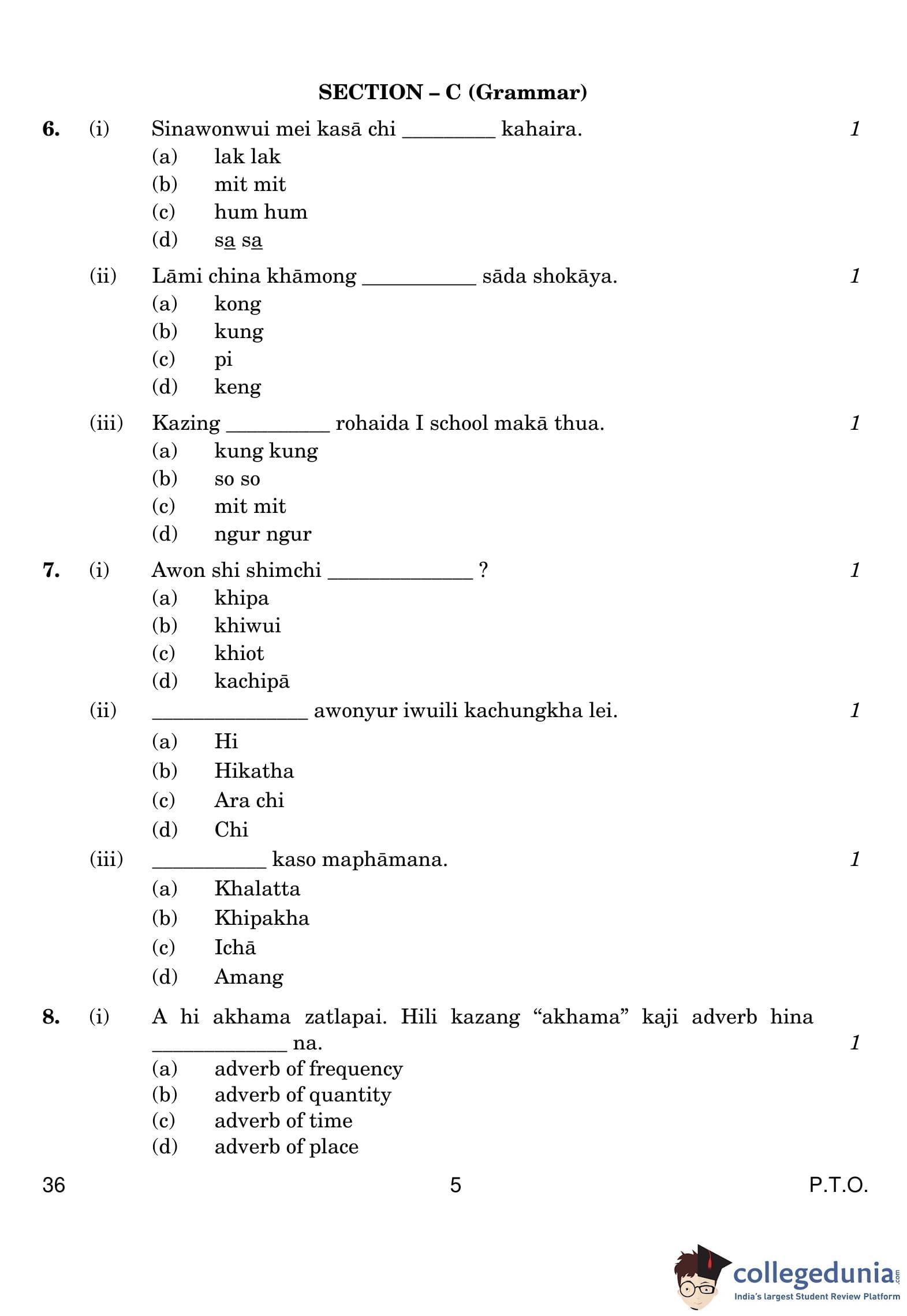 CBSE Class 10 Tangkhul Question Paper 2019 with Answer Key (March 5)