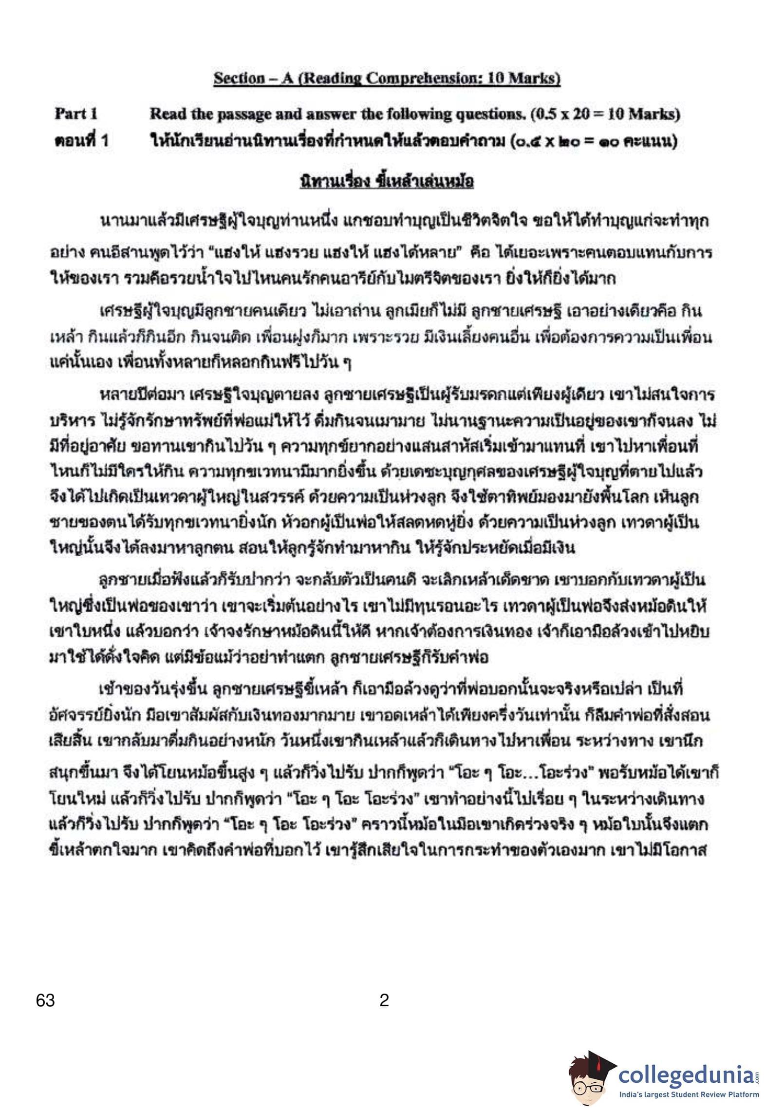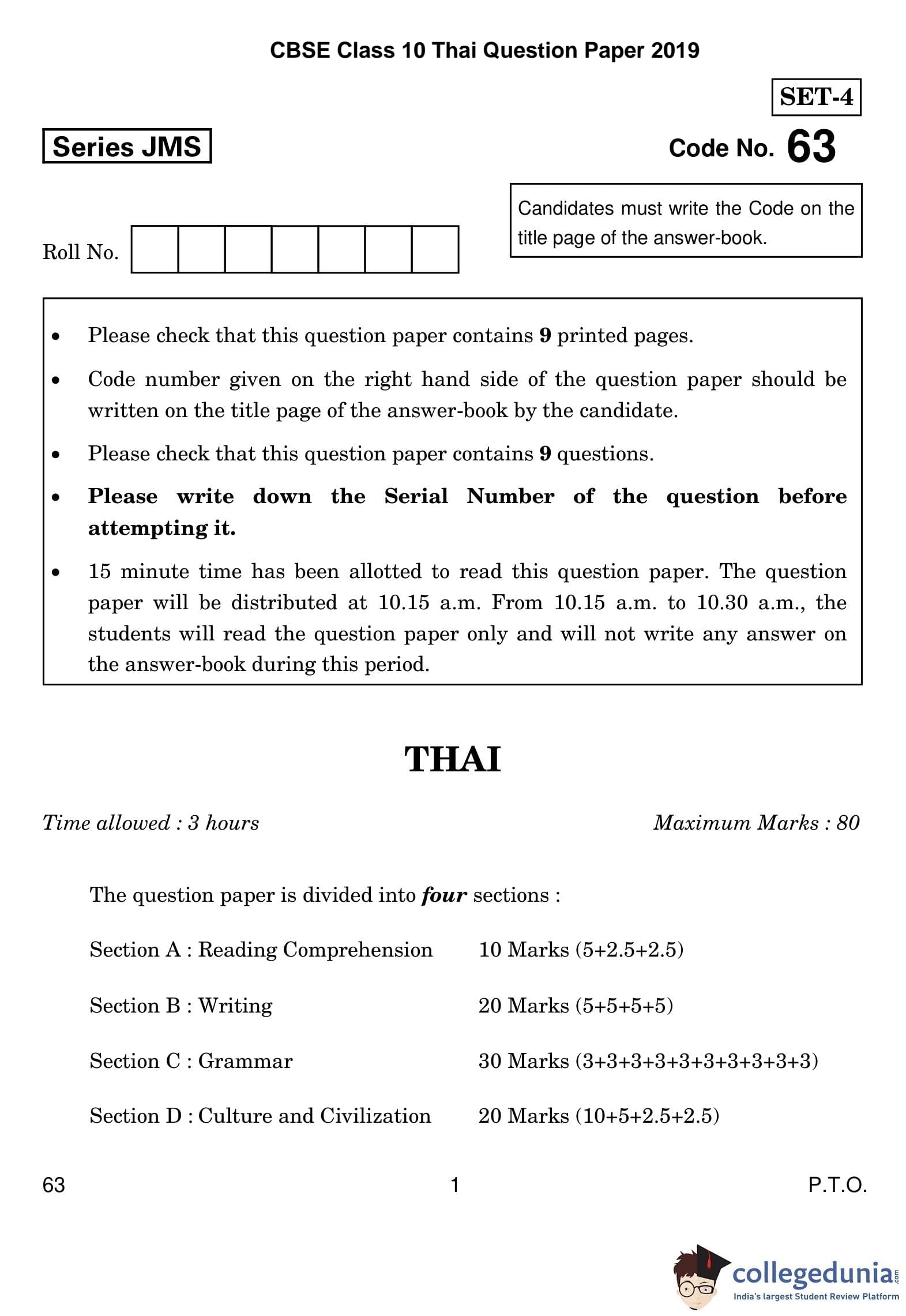 CBSE Class 10 Thai Question Paper 2019 with Answer Key (March 5)