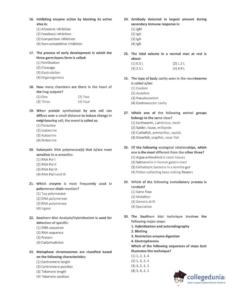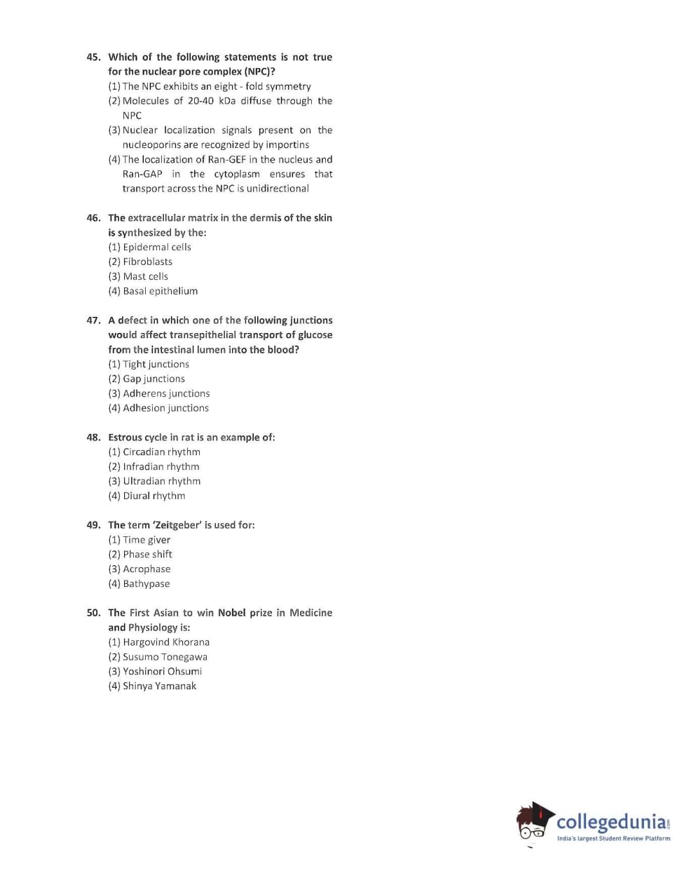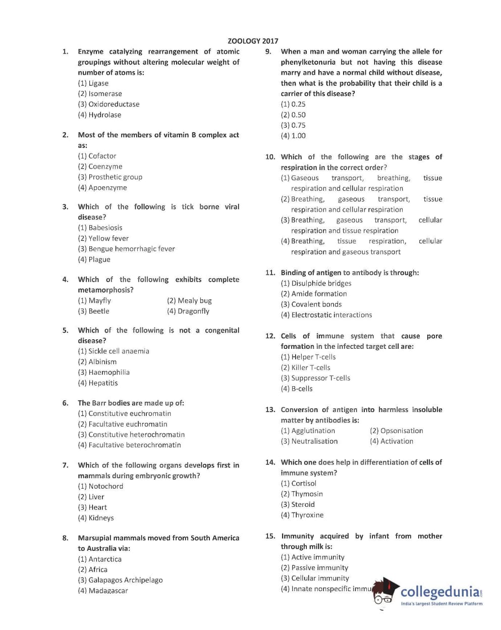 DUET 2017 M.Sc. Zoology Question paper with answer key pdf conducted on July 2, 2017 is available for download. The exam was successfully organized by University of Delhi. The question paper comprised a total of 50 questions.