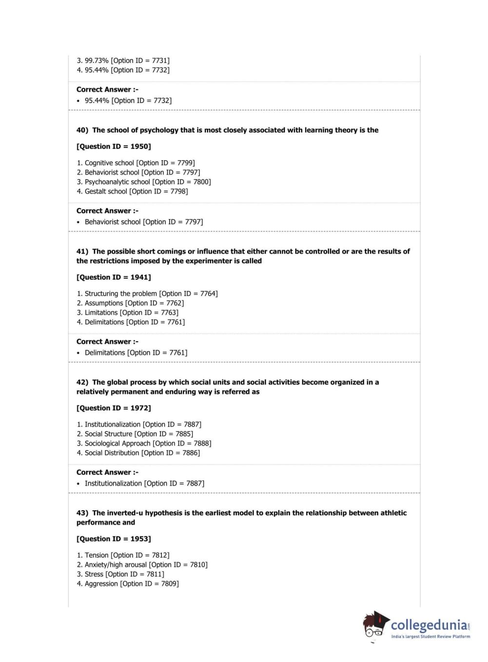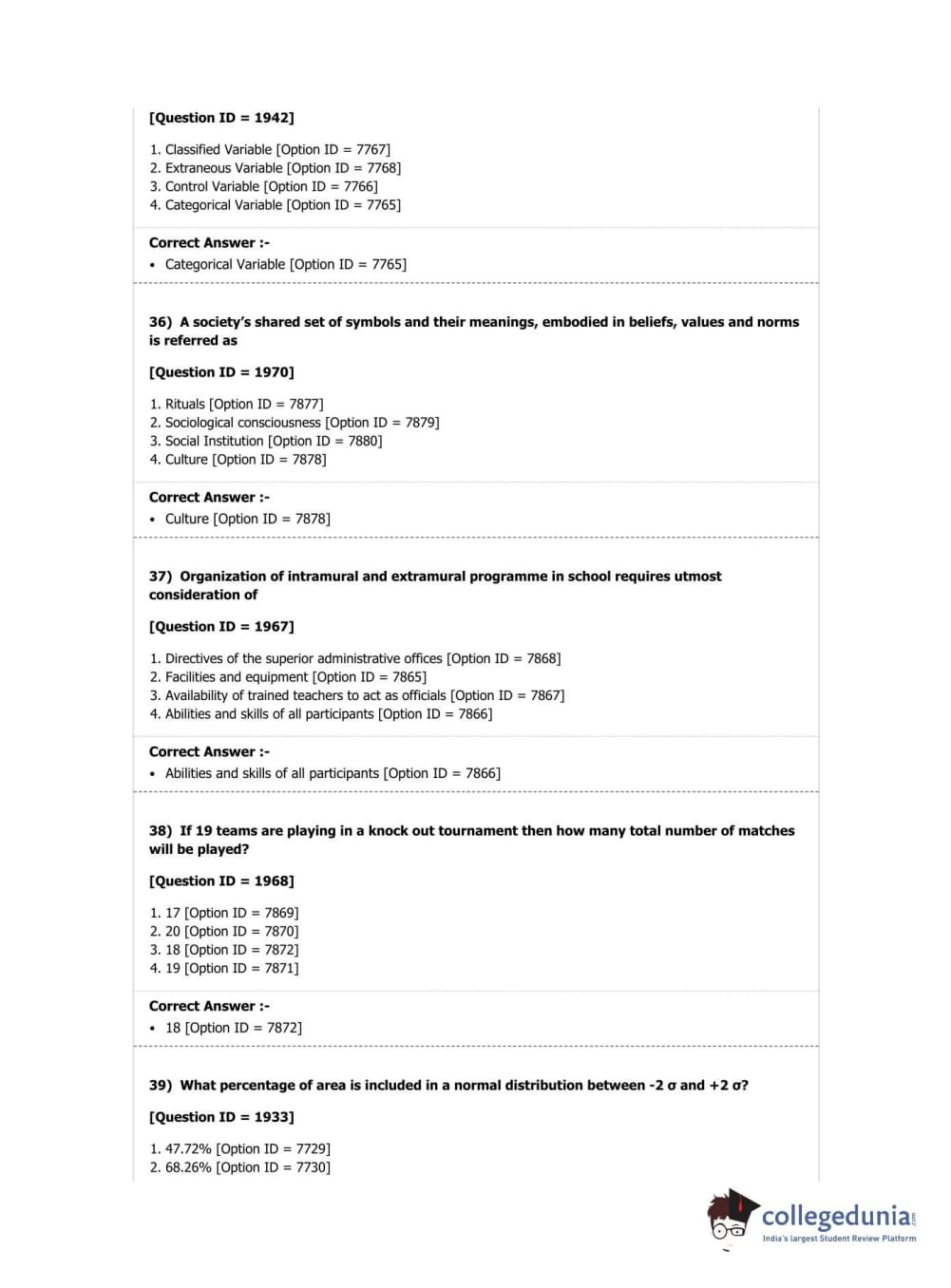 DUET 2018 Ph.D. in Physical Education Question Paper with Answer Key PDF Shift 2