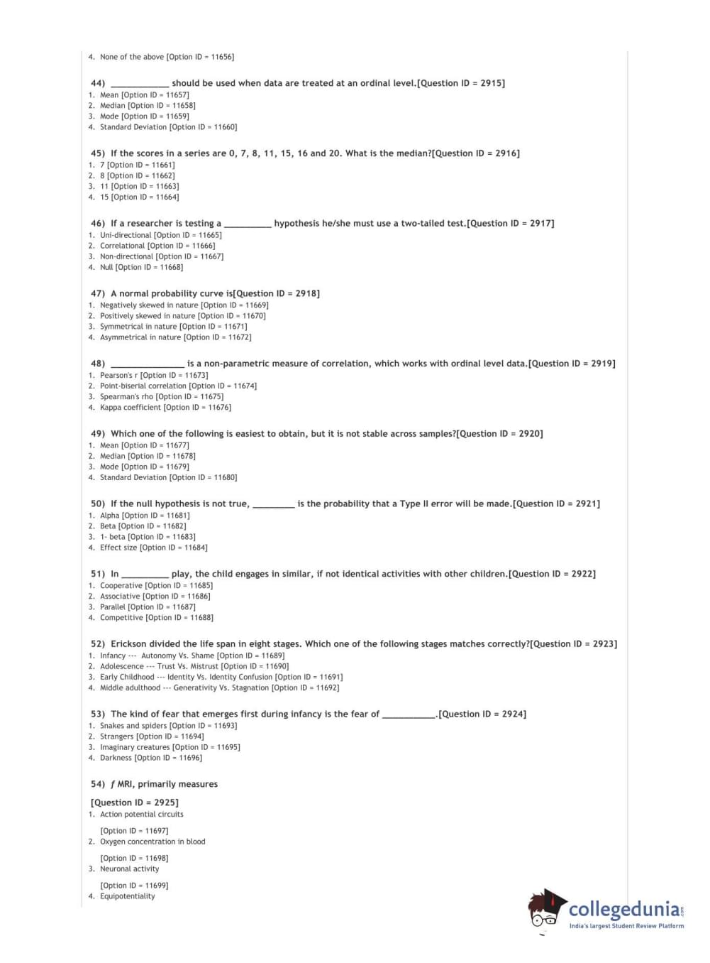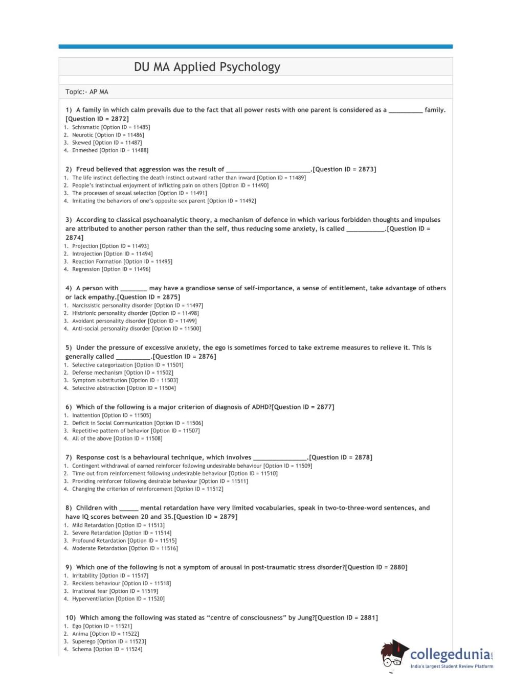 DUET 2021 DU MA Applied Psychology Question Paper with Answer Key PDFs Shift 3