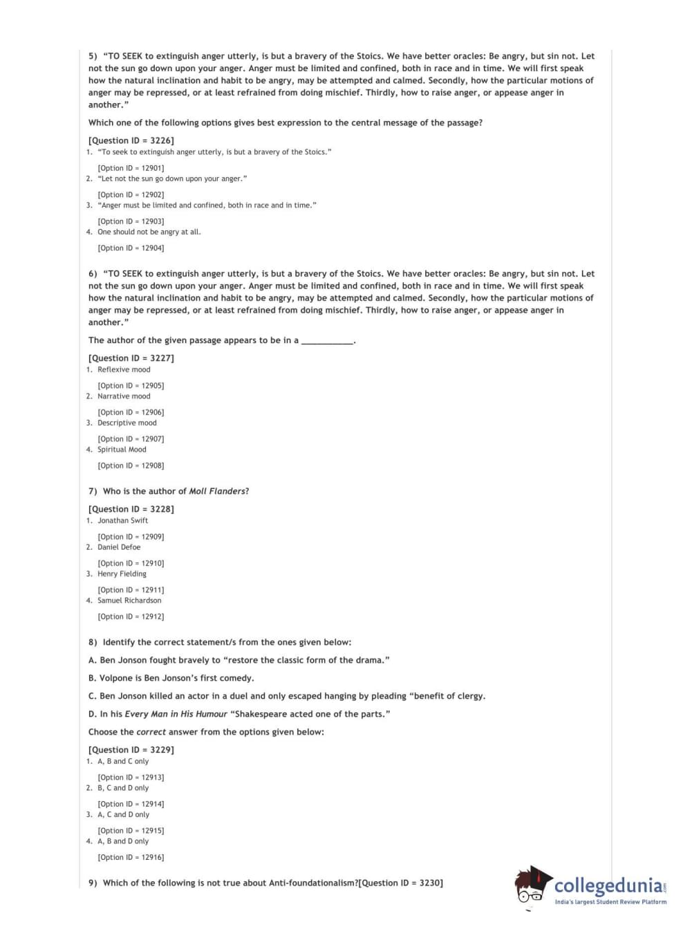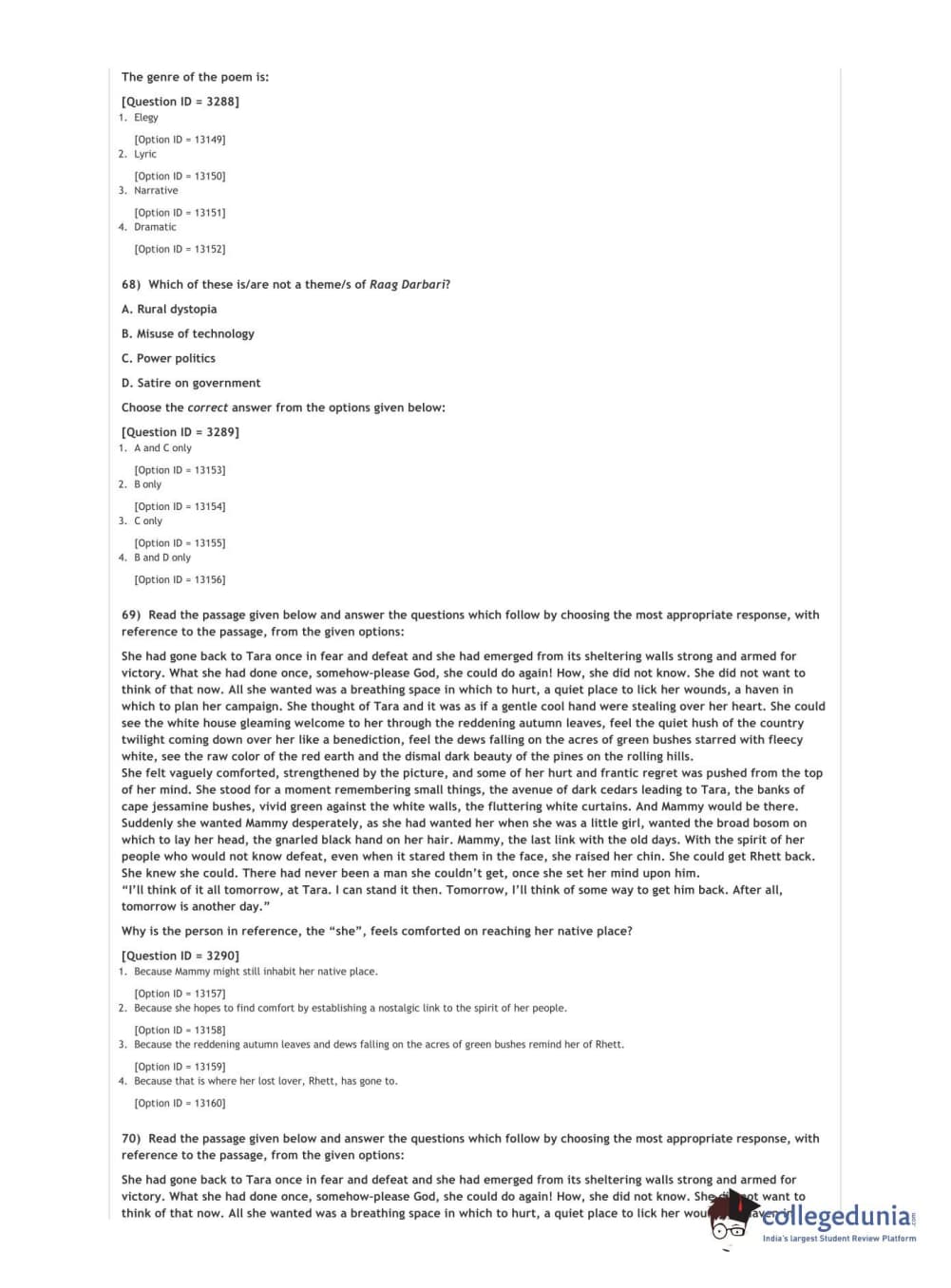 DUET 2021 DU MA English Question paper with answer key pdf conducted on September 26, 2021 in Shift 1 is available for download. The exam was successfully organized by National Testing Agency (NTA). The question paper comprised a total of 100 questions.