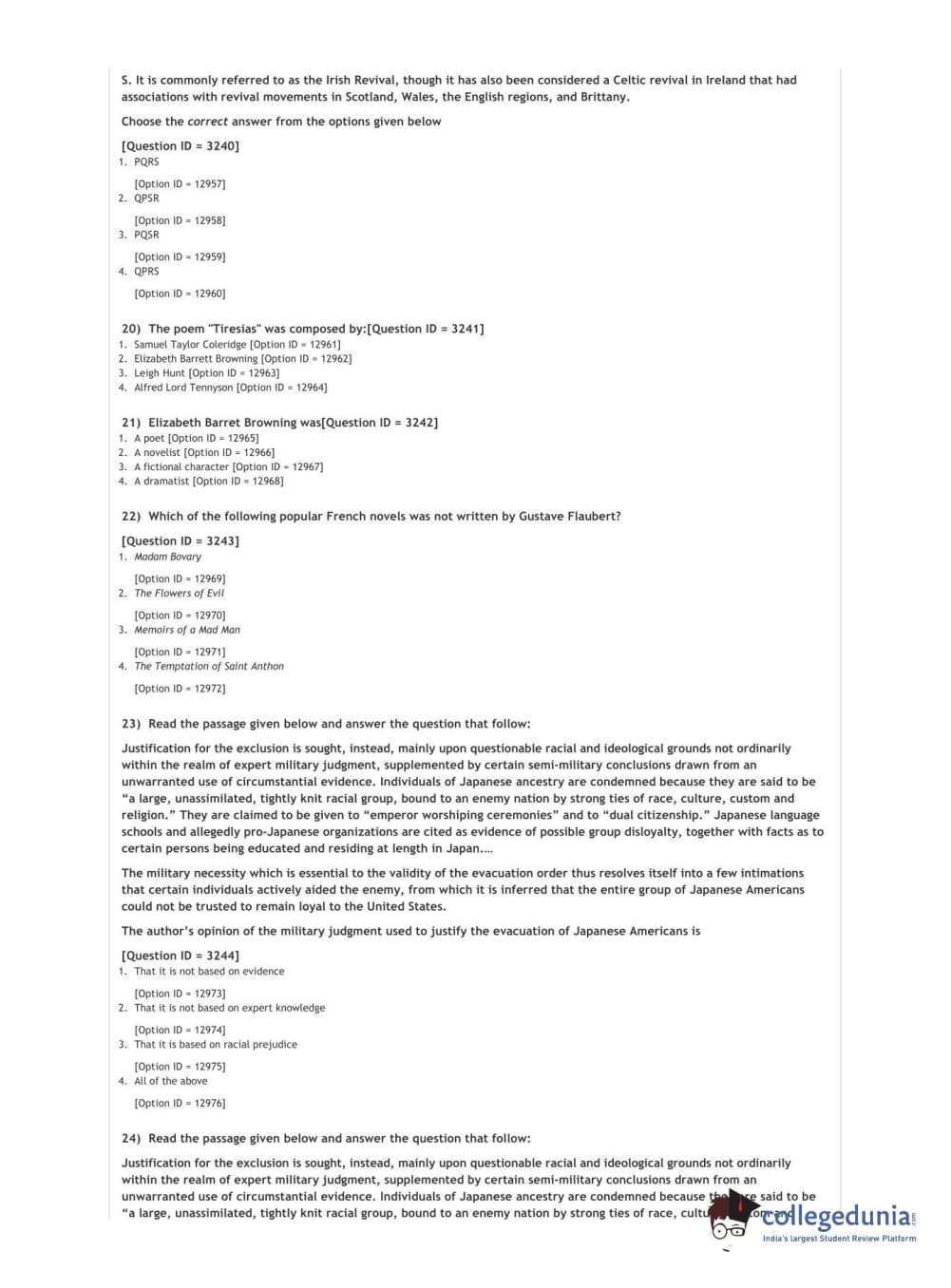 DUET 2021 DU MA English Question Paper with Answer Key PDFs Shift 1