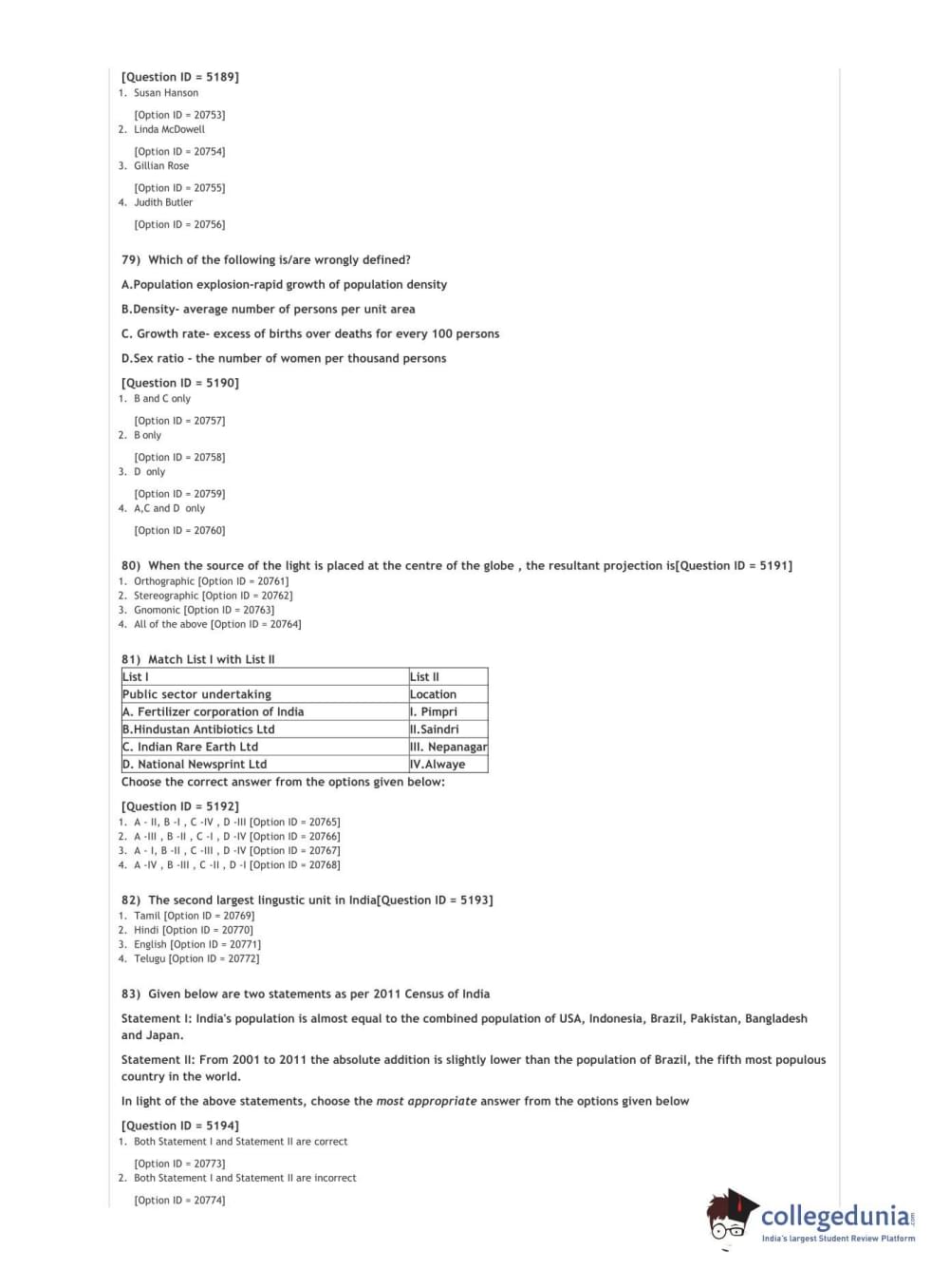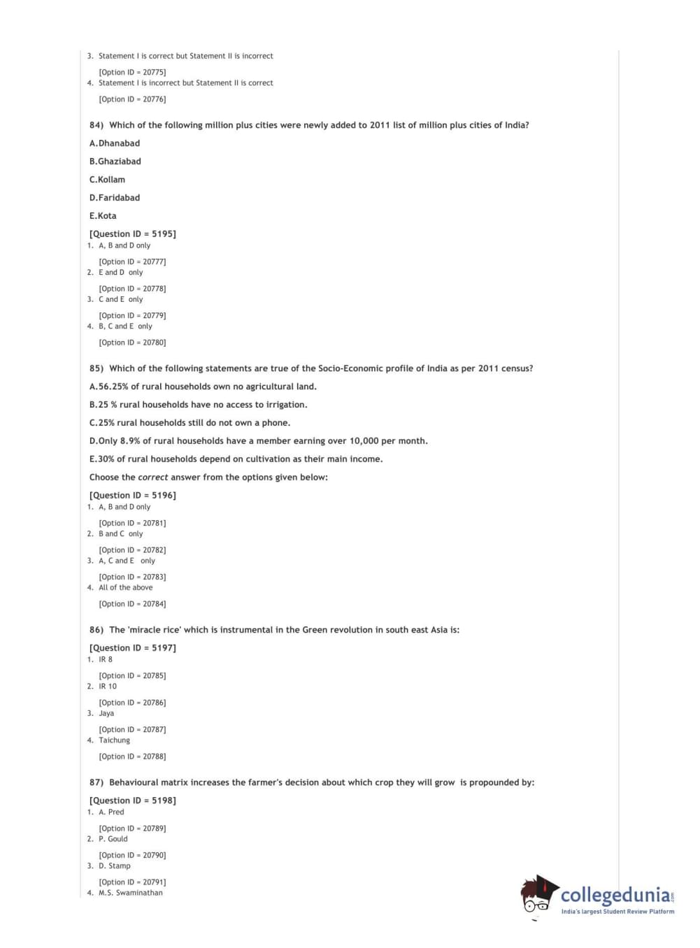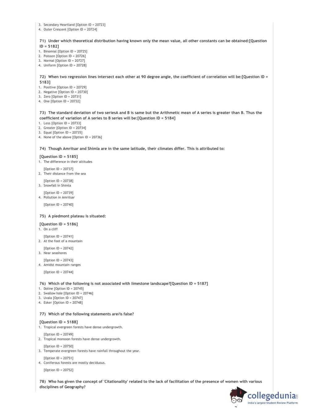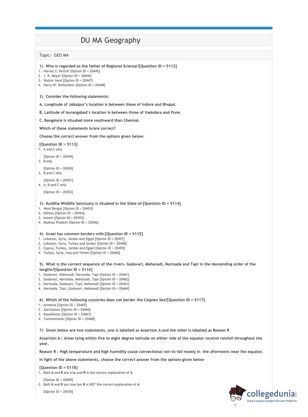 DUET 2021 DU MA Geography Question Paper with Answer Key PDFs Shift 2