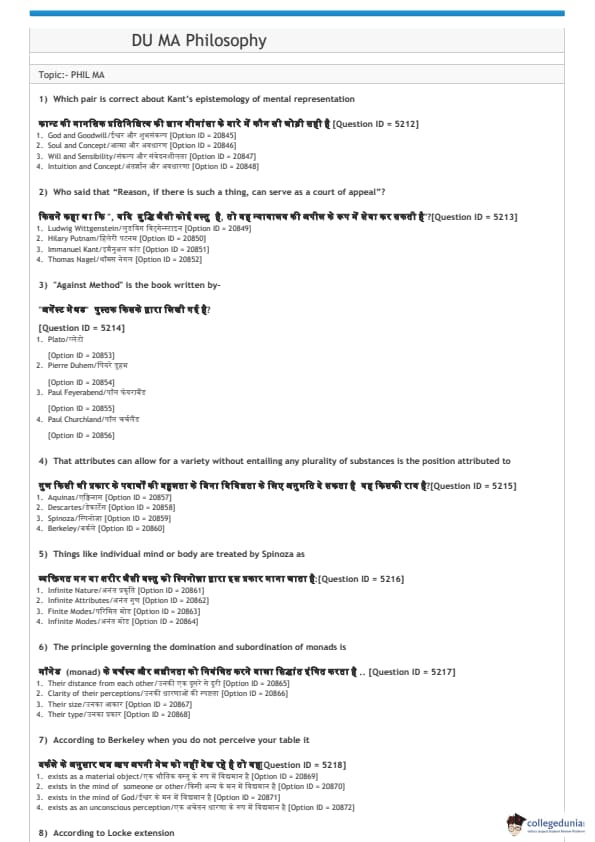| DUET 2021 DU MA Philosophy Question Paper PDF | DUET 2021 DU MA Philosophy Answer Key PDF |