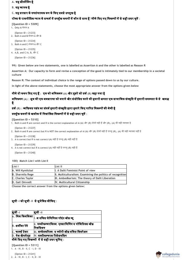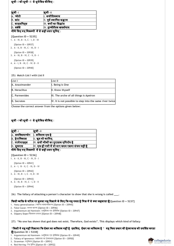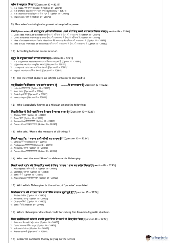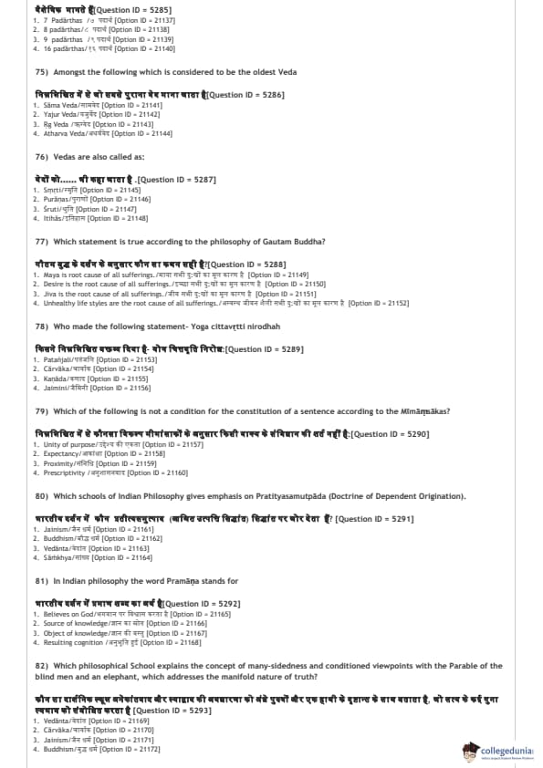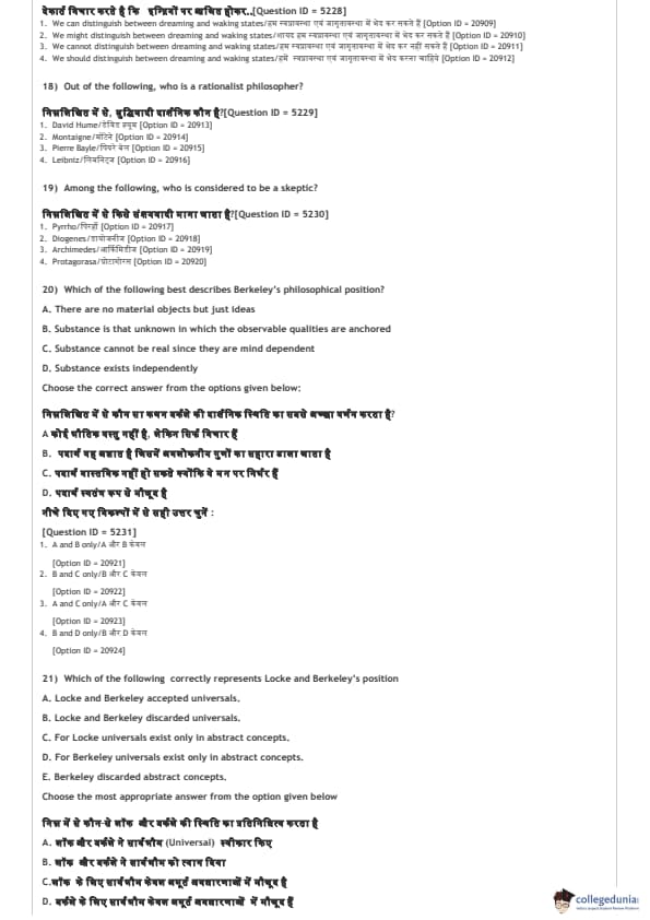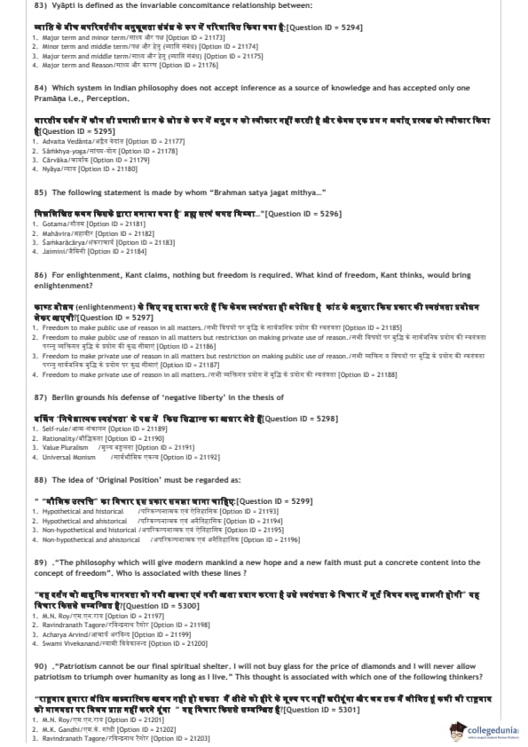 DUET 2021 DU MA Philosophy Question Paper with Answer Key PDFs Shift 1