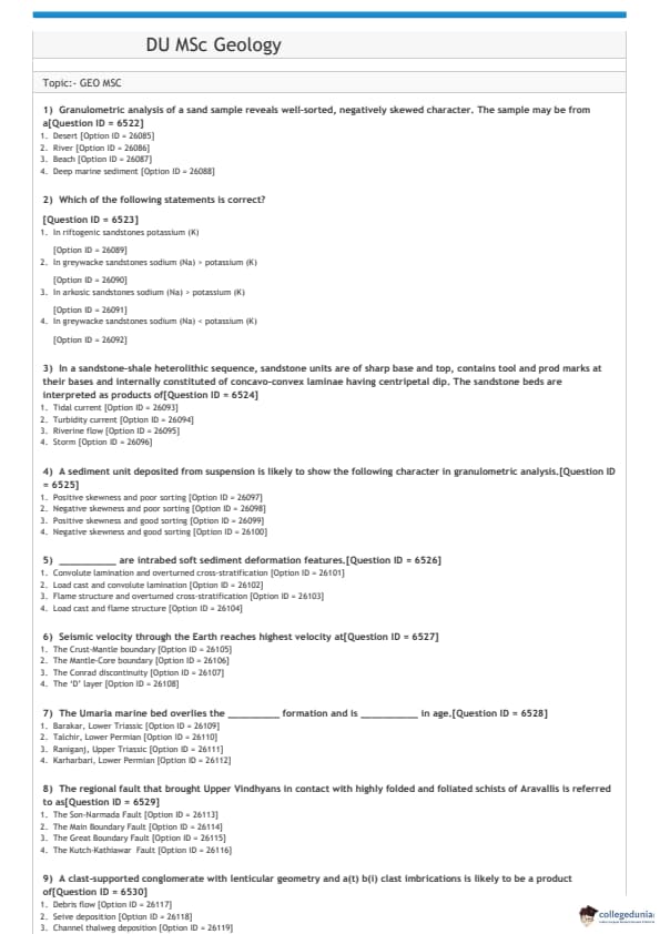 DUET 2021 DU MSc Geology Question paper with answer key pdf conducted on September 26, 2021 in Shift 1 is available for download. The exam was successfully organized by National Testing Agency (NTA). The question paper comprised a total of 100 questions.