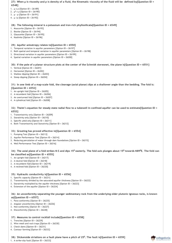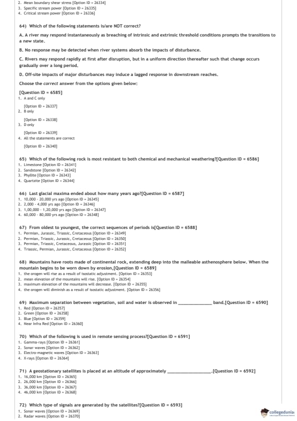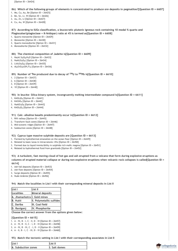DUET 2021 DU MSc Geology Question Paper with Answer Key PDFs Shift 1
