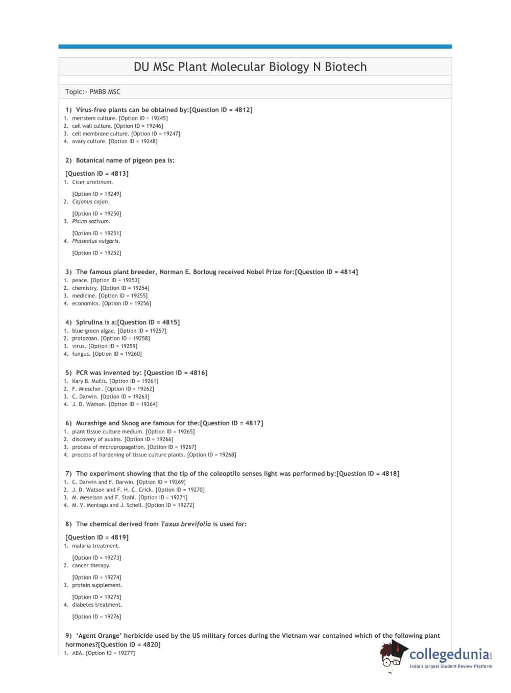 | DUET 2021 DU MSc Plant Molecular Biology N Biotech Question Paper PDF | DUET 2021 DU MSc Plant Molecular Biology N Biotech Answer Key PDF |