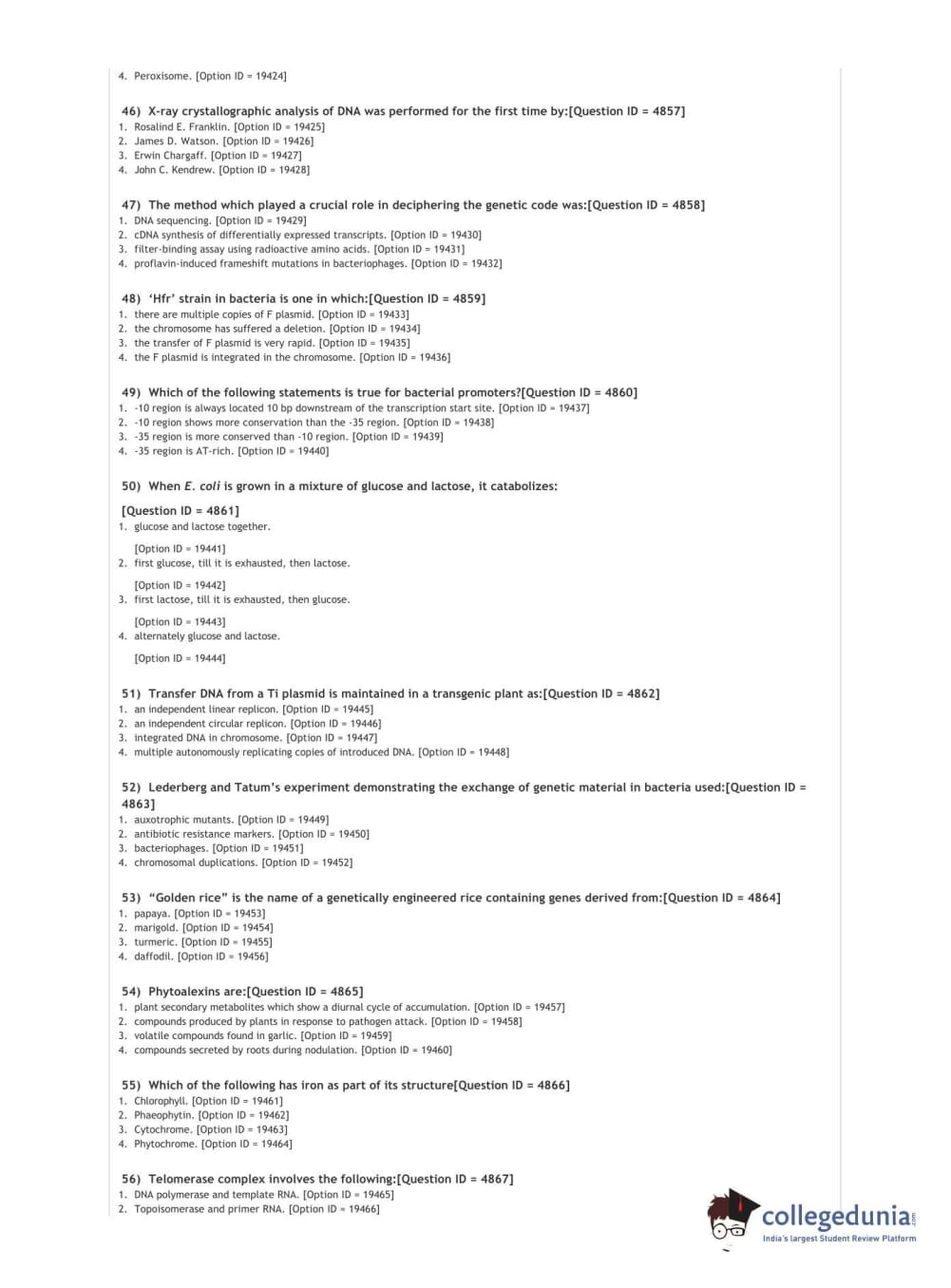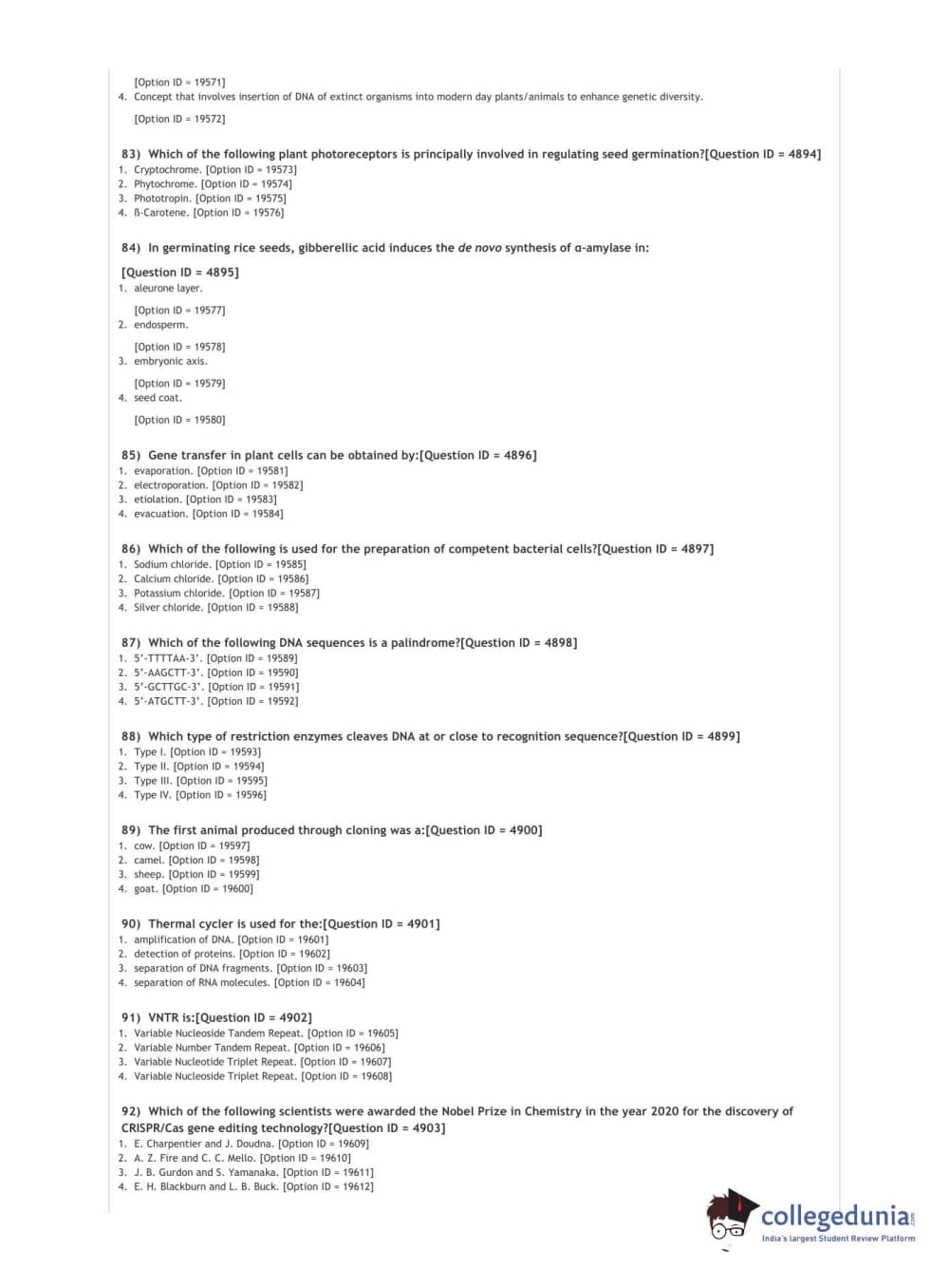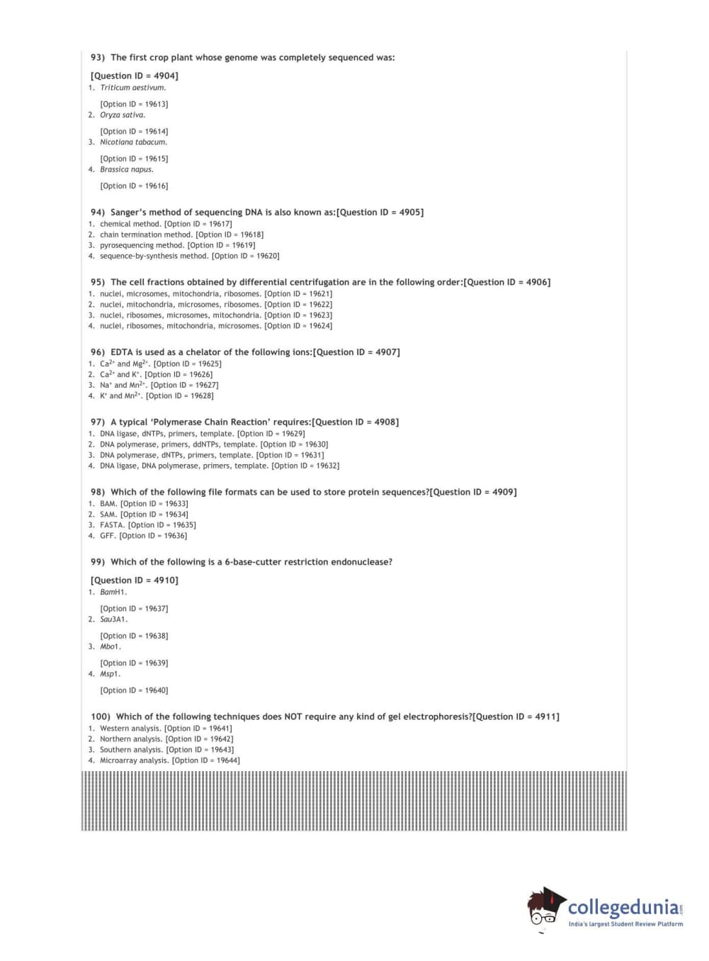 DUET 2021 DU MSc Plant Molecular Biology N Biotech Question paper with answer key pdf conducted on September 30, 2021 in Shift 1 is available for download. The exam was successfully organized by National Testing Agency (NTA). The question paper comprised a total of 100 questions.