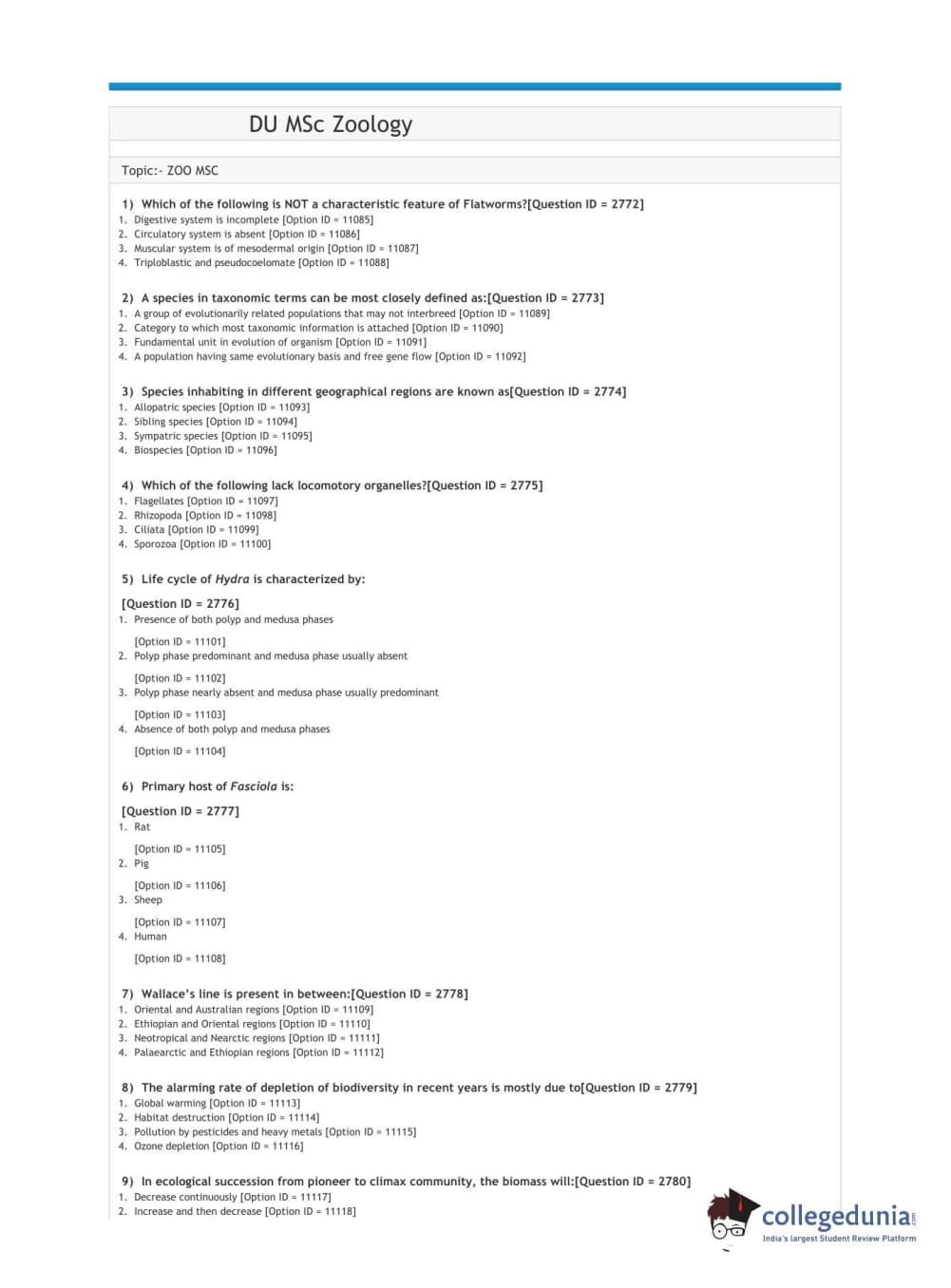 | DUET 2021 DU MSc Zoology Question Paper PDF | DUET 2021 DU MSc Zoology Answer Key PDF |