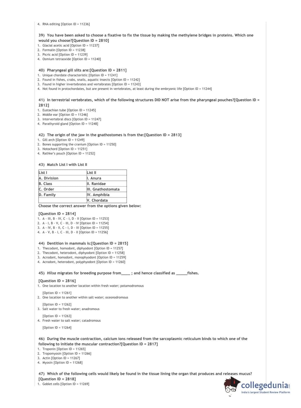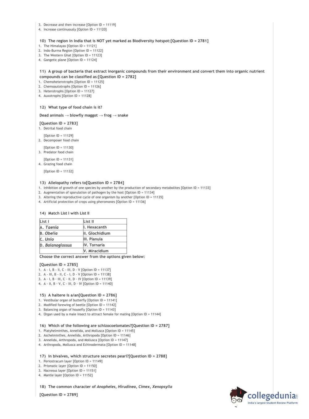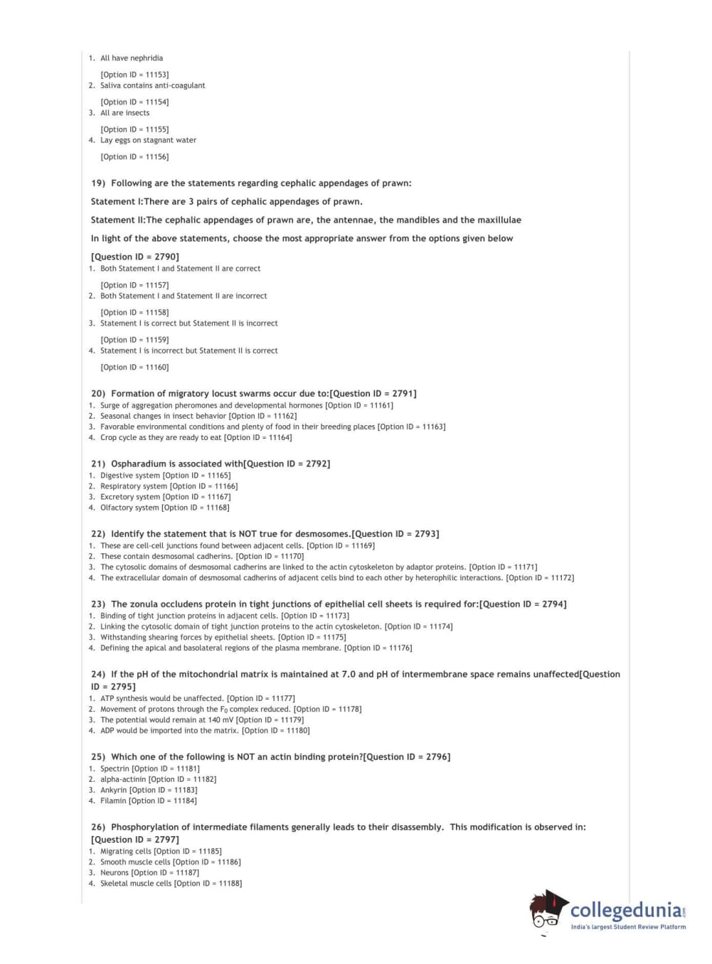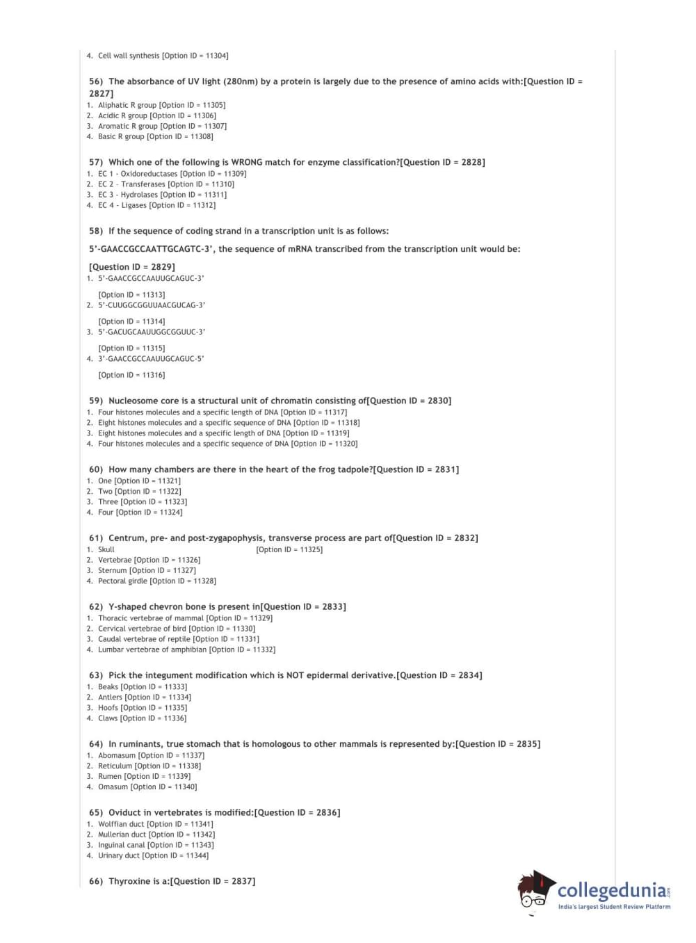 DUET 2021 DU MSc Zoology Question Paper with Answer Key PDFs Shift 2