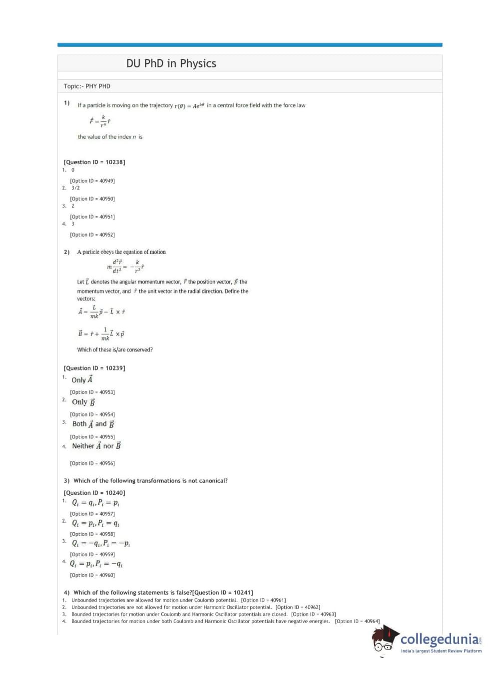 | DUET 2021 DU PhD in Physics Question Paper PDF | DUET 2021 DU PhD in Physics Answer Key PDF |