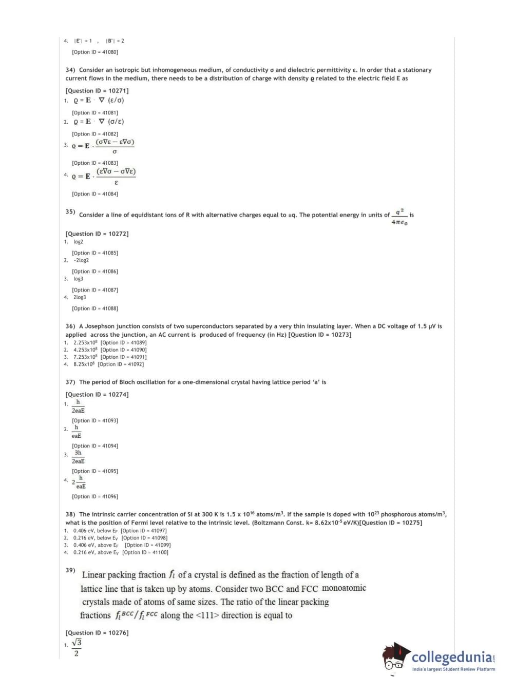 DUET 2021 DU PhD in Physics Question Paper with Answer Key PDFs Shift 1