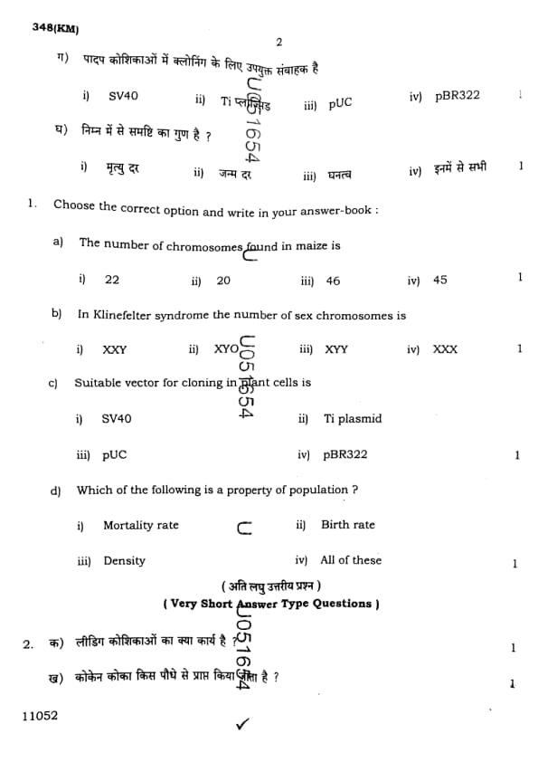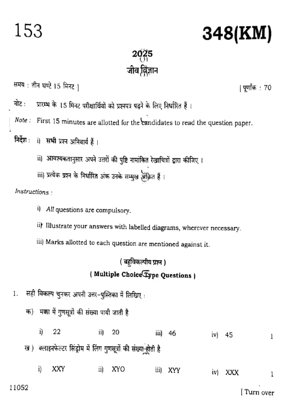 UP Board Class 12 Biology Question Paper 2025 (Code 348 KM) with Solutions